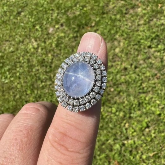 Gray Star Sapphire Diamond 14K White Gold Cocktail Ring Size 8 18 G Approximately 9 TCW 4.8 TCW as is there us a small blemish on the under side of the Sapphire
