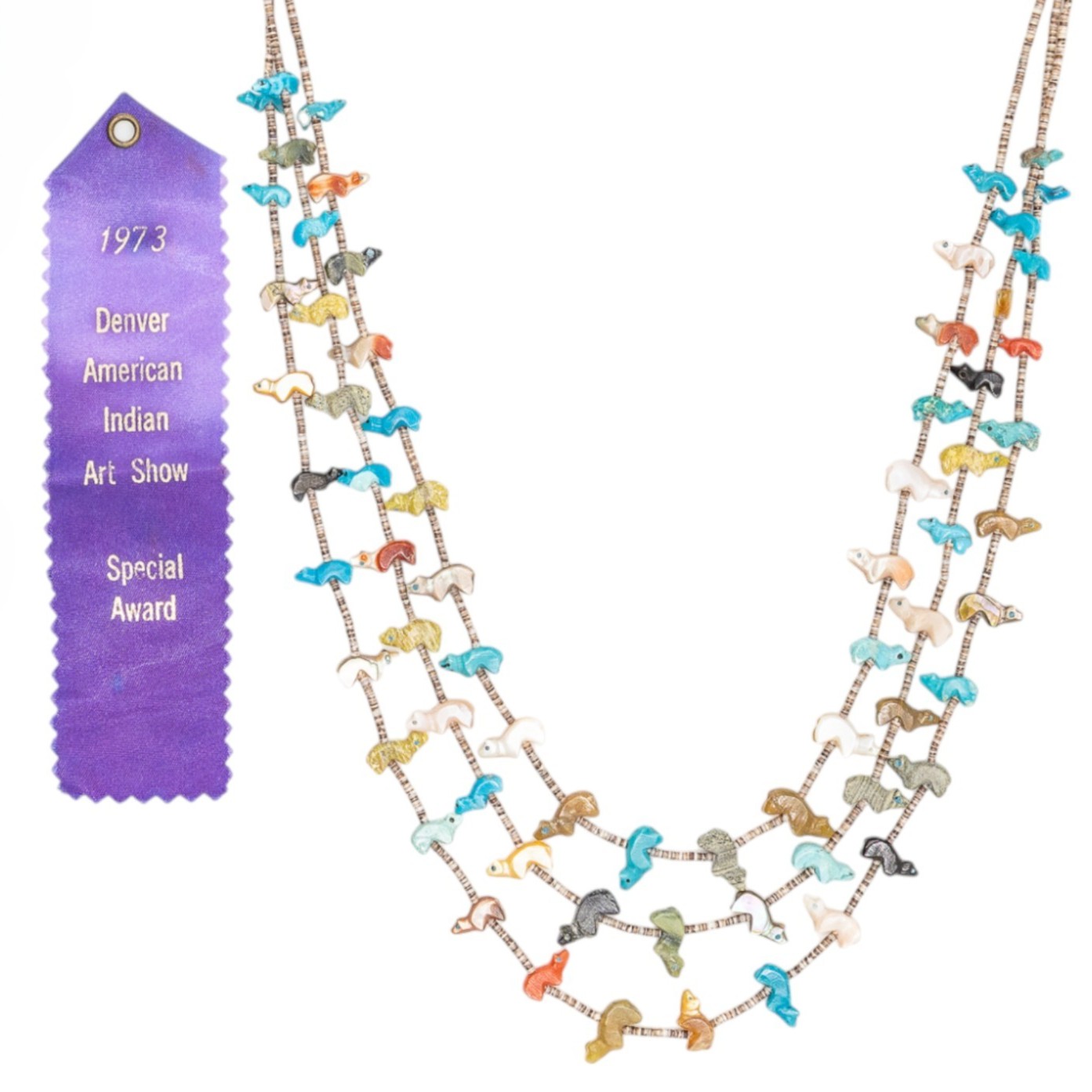 2 of 2, 1973 Award Winning Zuni Carved Fetish Heishi Necklaces 39g