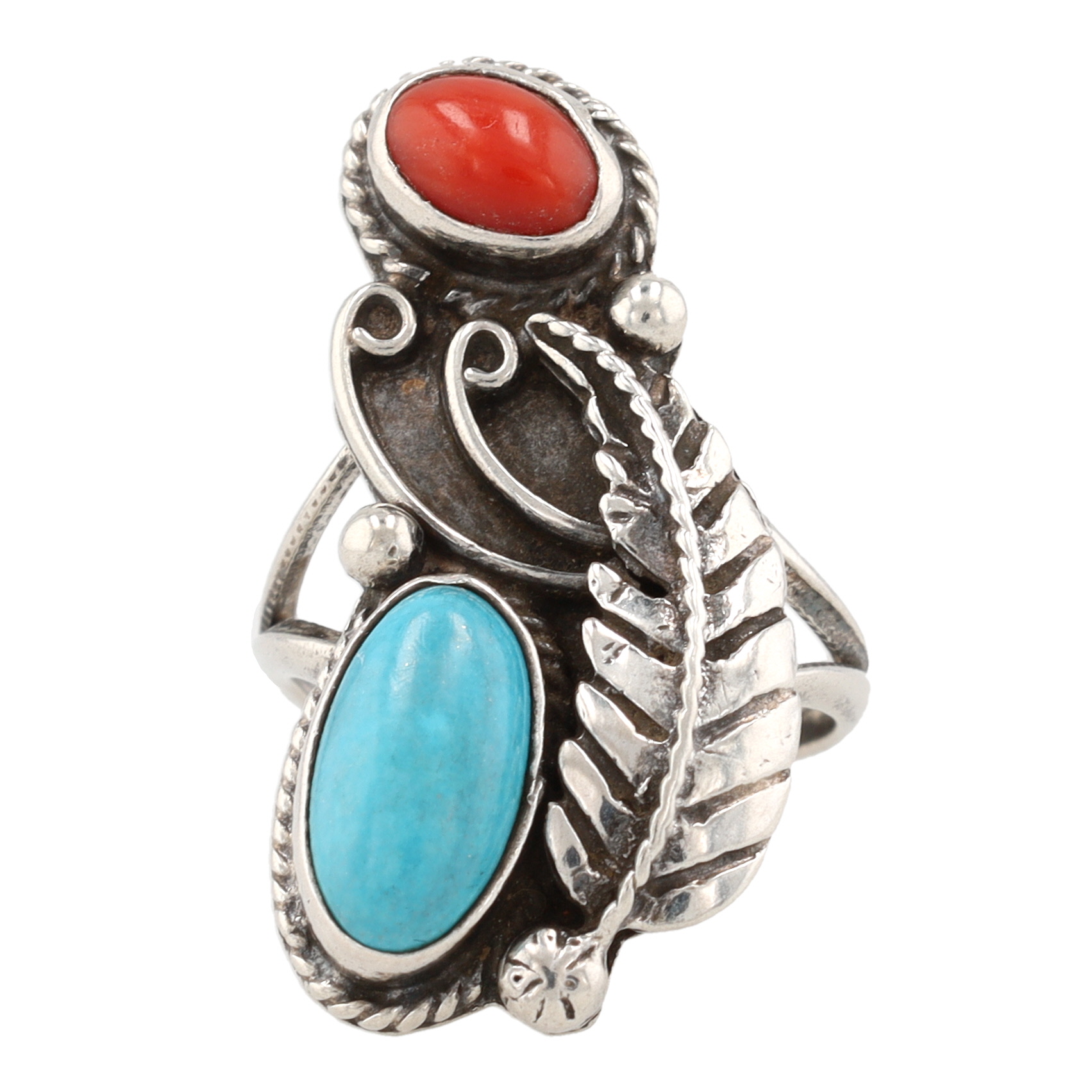 Navajo Sterling Coral Turquosie Ring Sz. 5, 5g