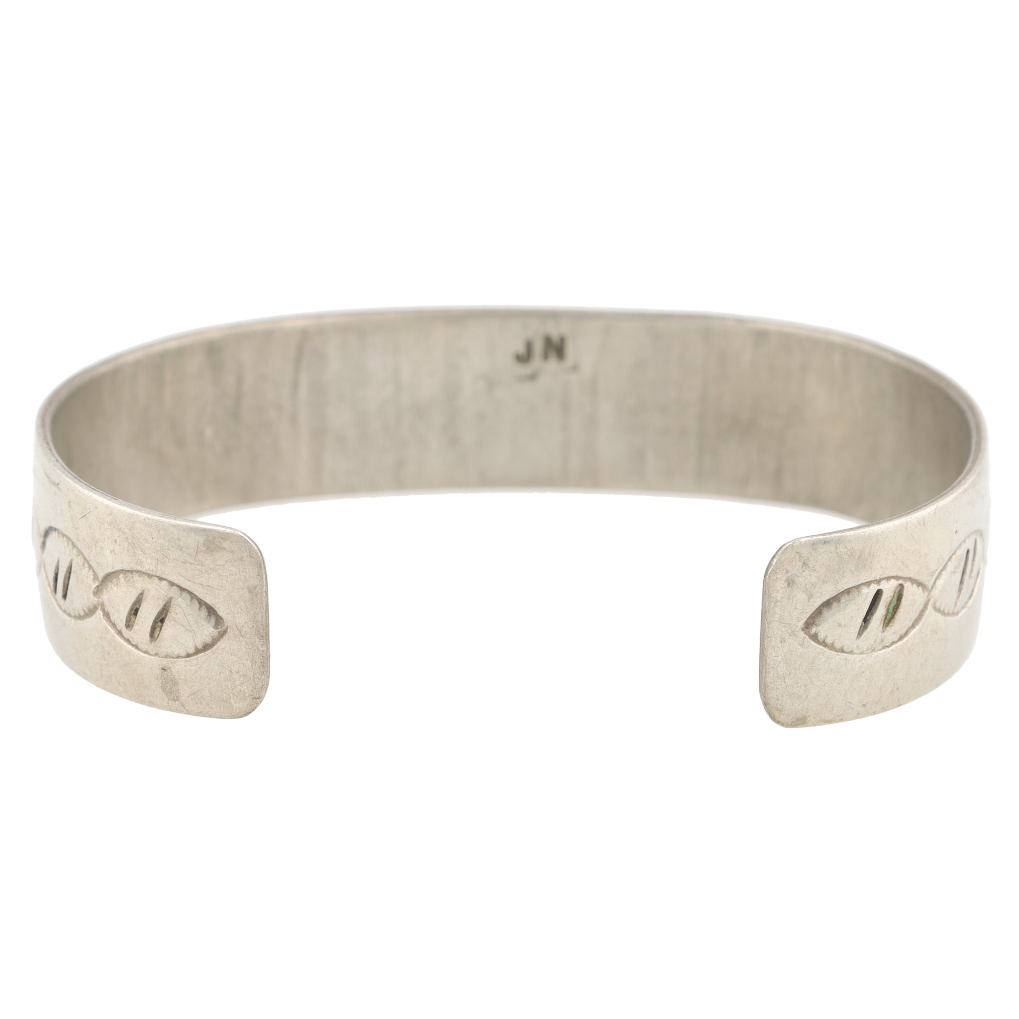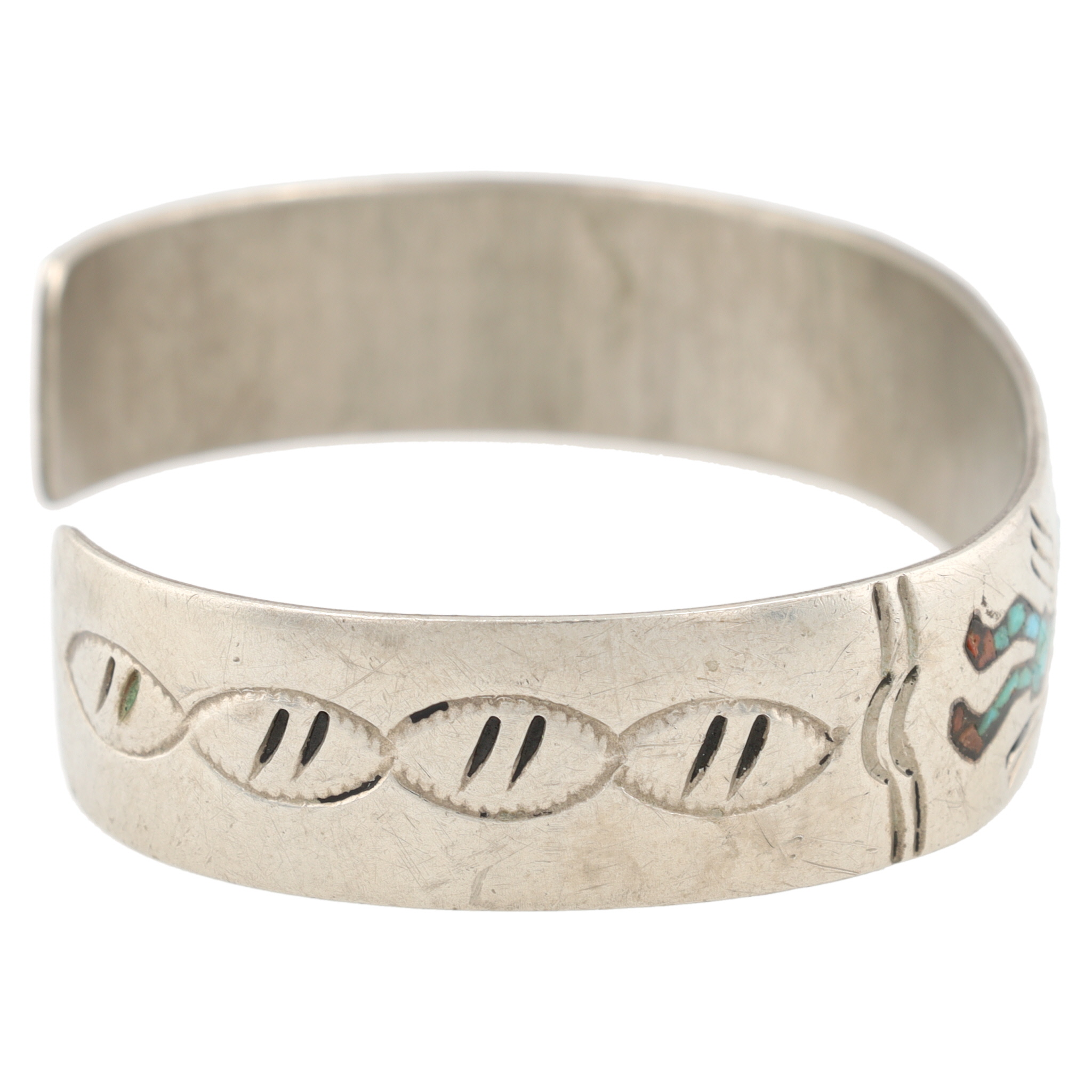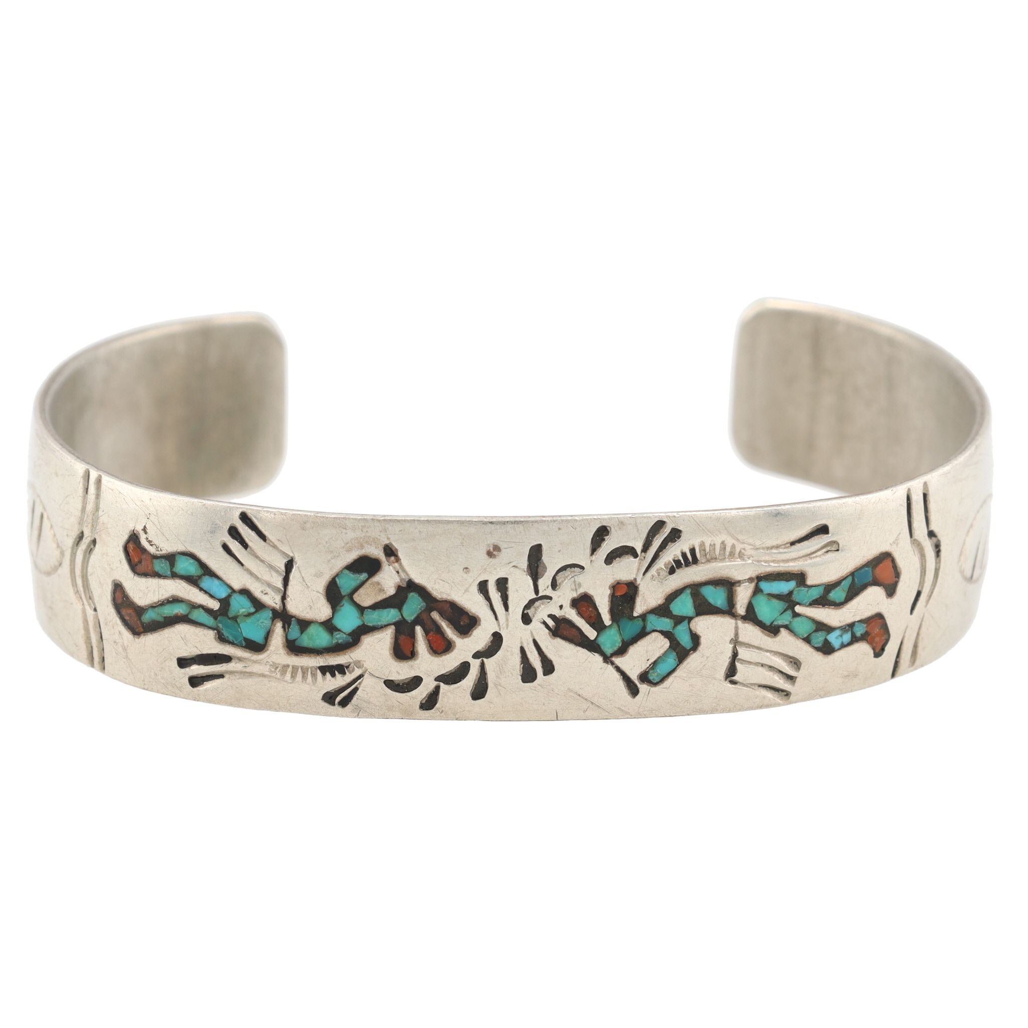 Signed JN Navajo Sterling Crushed Kokopelli Inlay Cuff Bracelet 17.5g