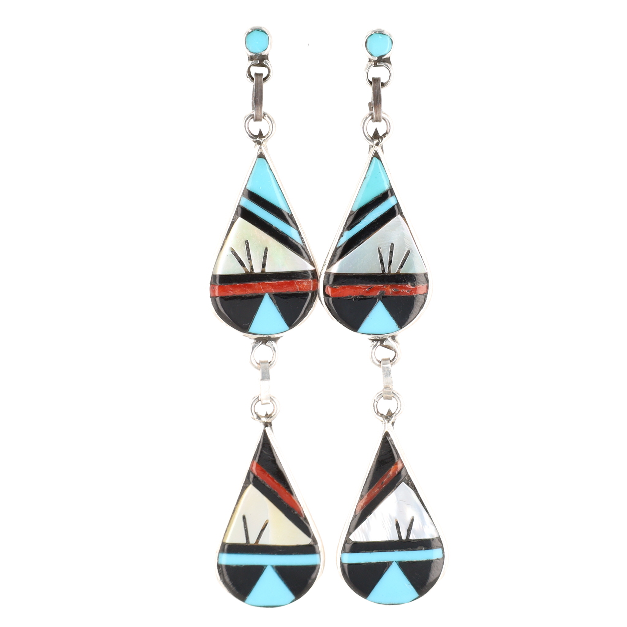 Reginda Kallest Zuni Sterling Inlay Earrings 4.5g