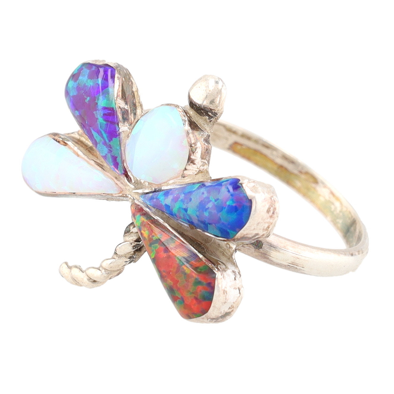 Joann Cooeyate Zuni Sterling Opal Dragonfly Ring Sz. 5.5, 2.5g
