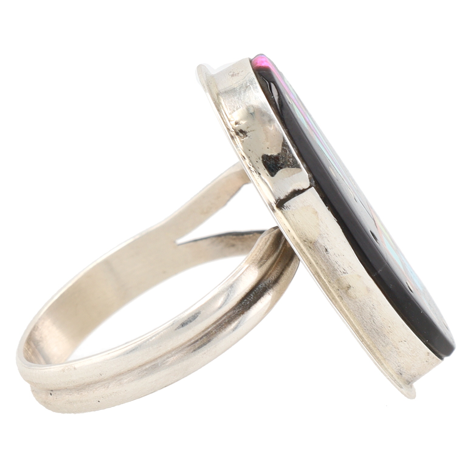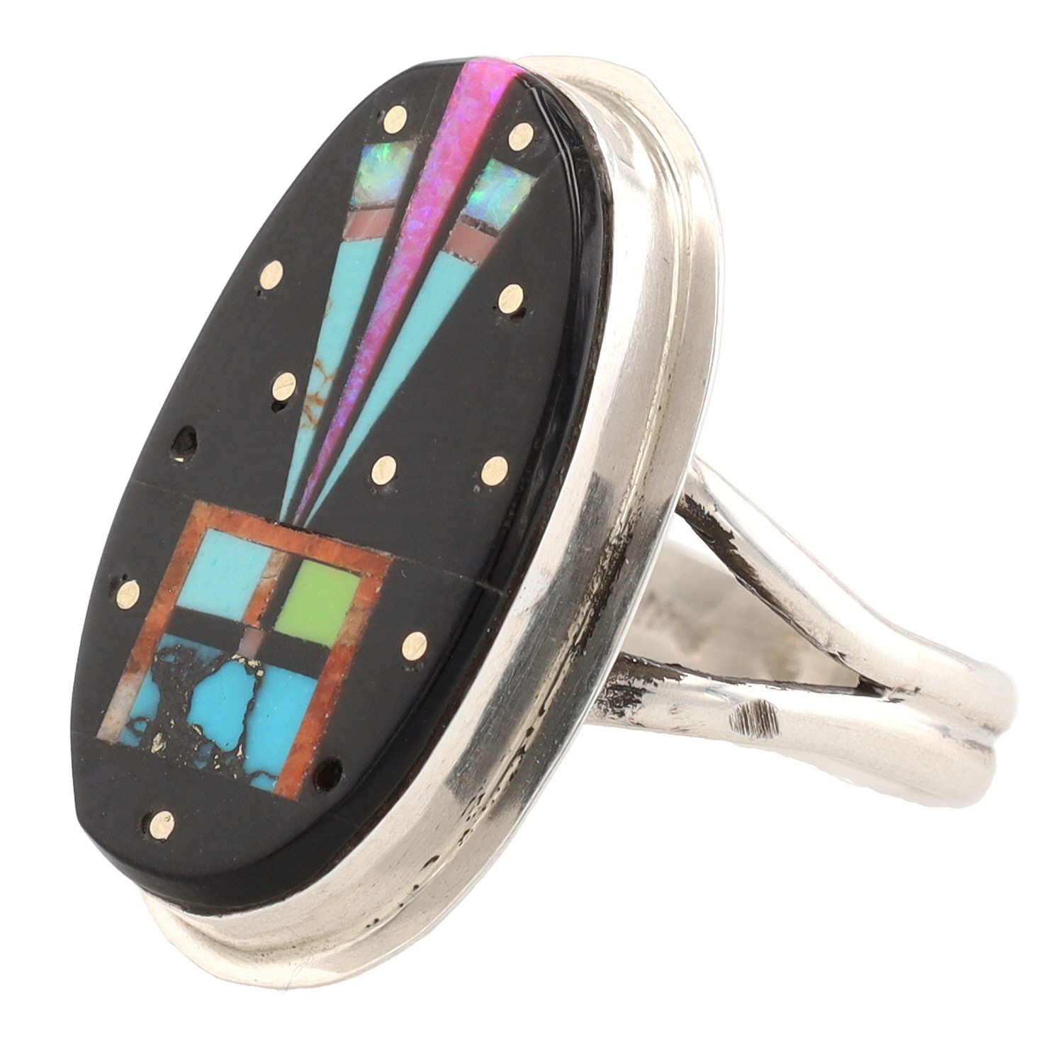 Gilbert Smith Navajo Sterling Kachina Inlay Adjustable Ring 5.5g