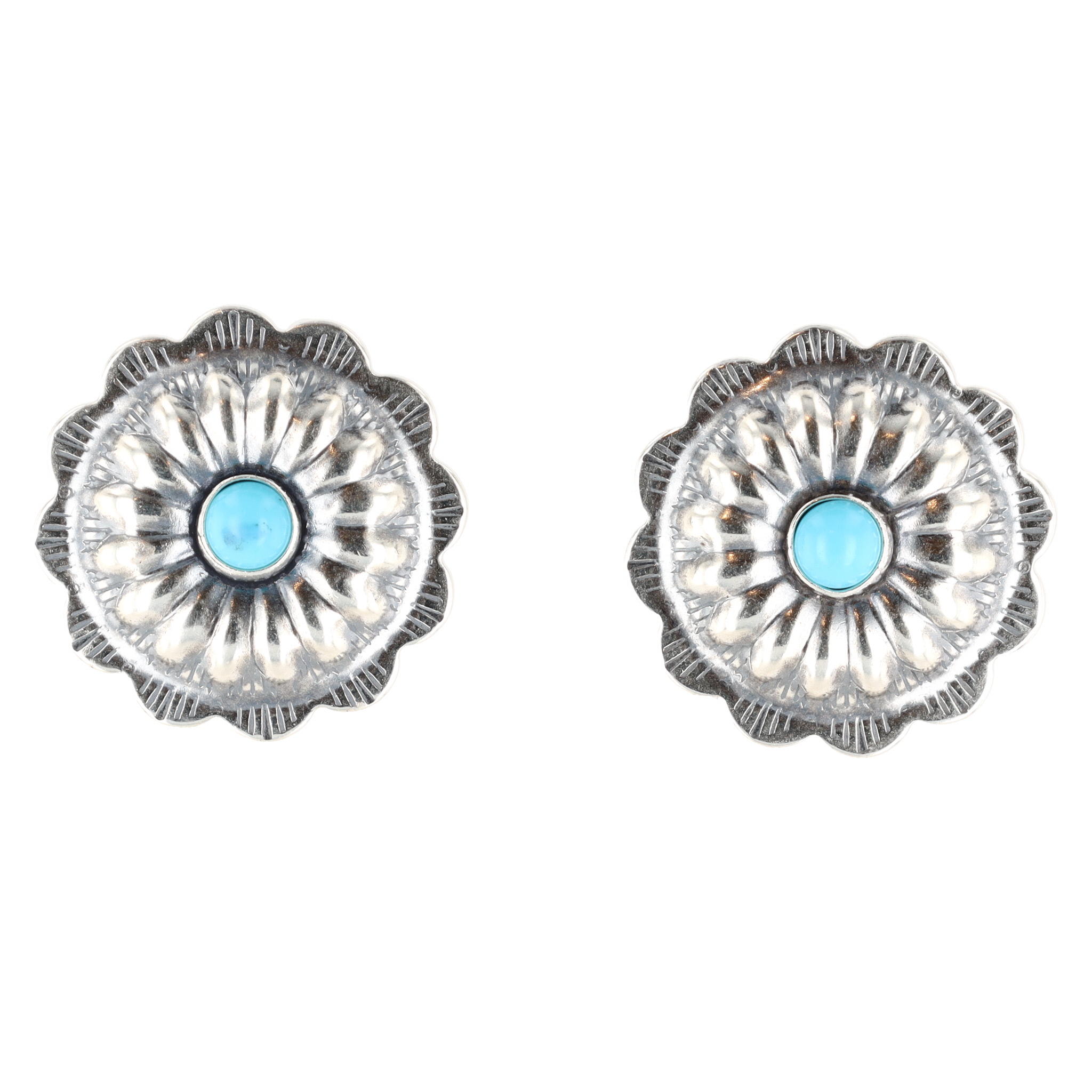 Navajo Sterling Kingman Turquoise Concho Earrings 3g