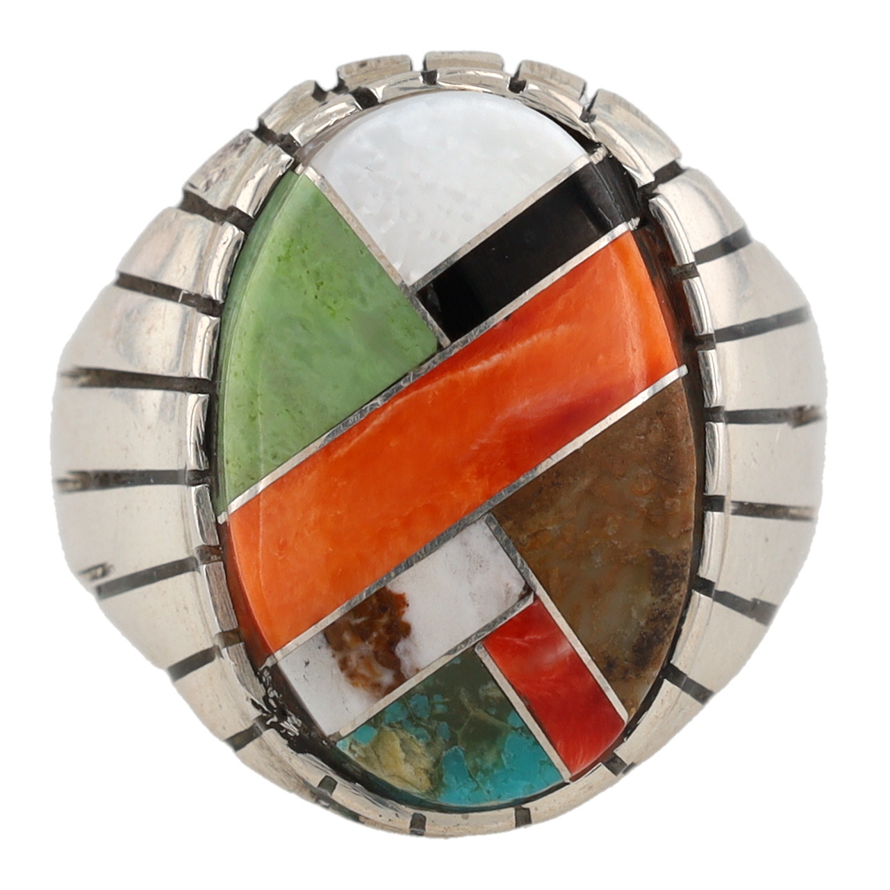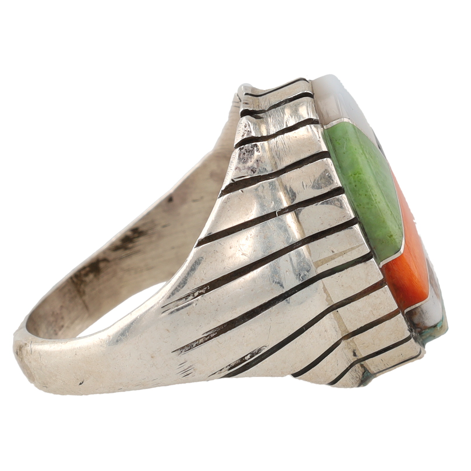 Ray Jack Navajo Sterling Inlay Ring Sz. 8.5, 11g