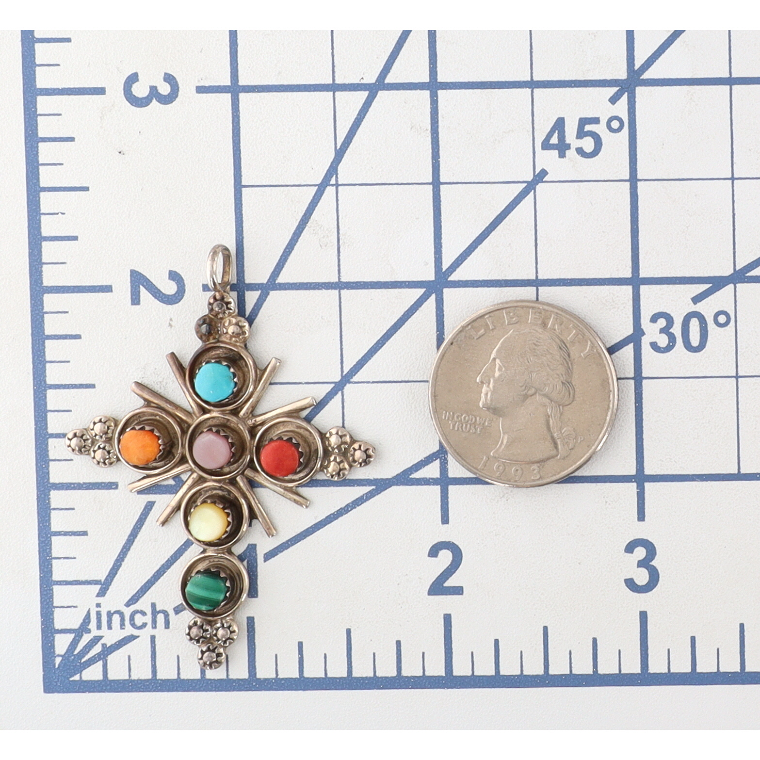 Signed TD Zuni Sterling Multi Stone Cross Pendant 6g