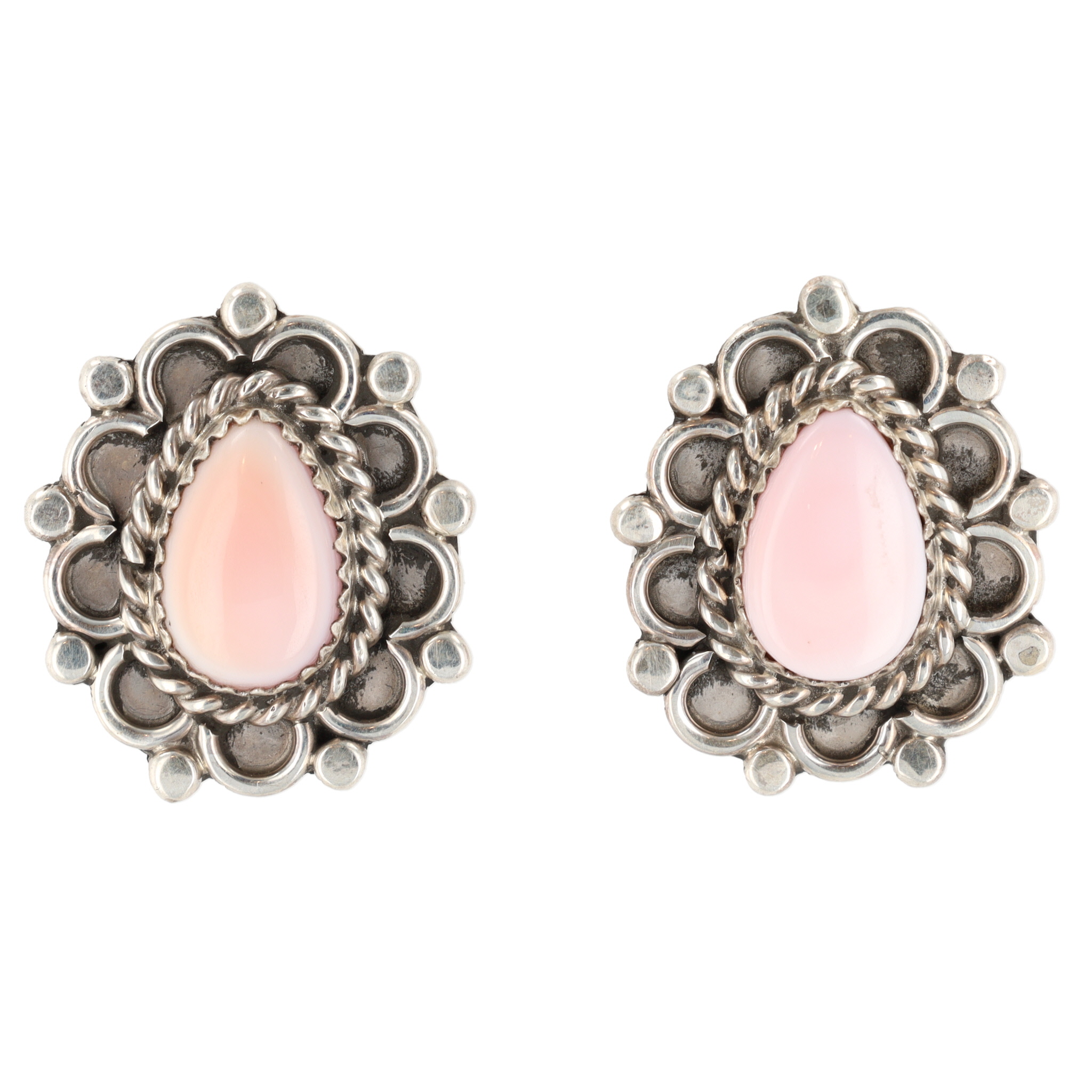 Maxine Ramirez Navajo Sterling Pink Conch Earrings 8g