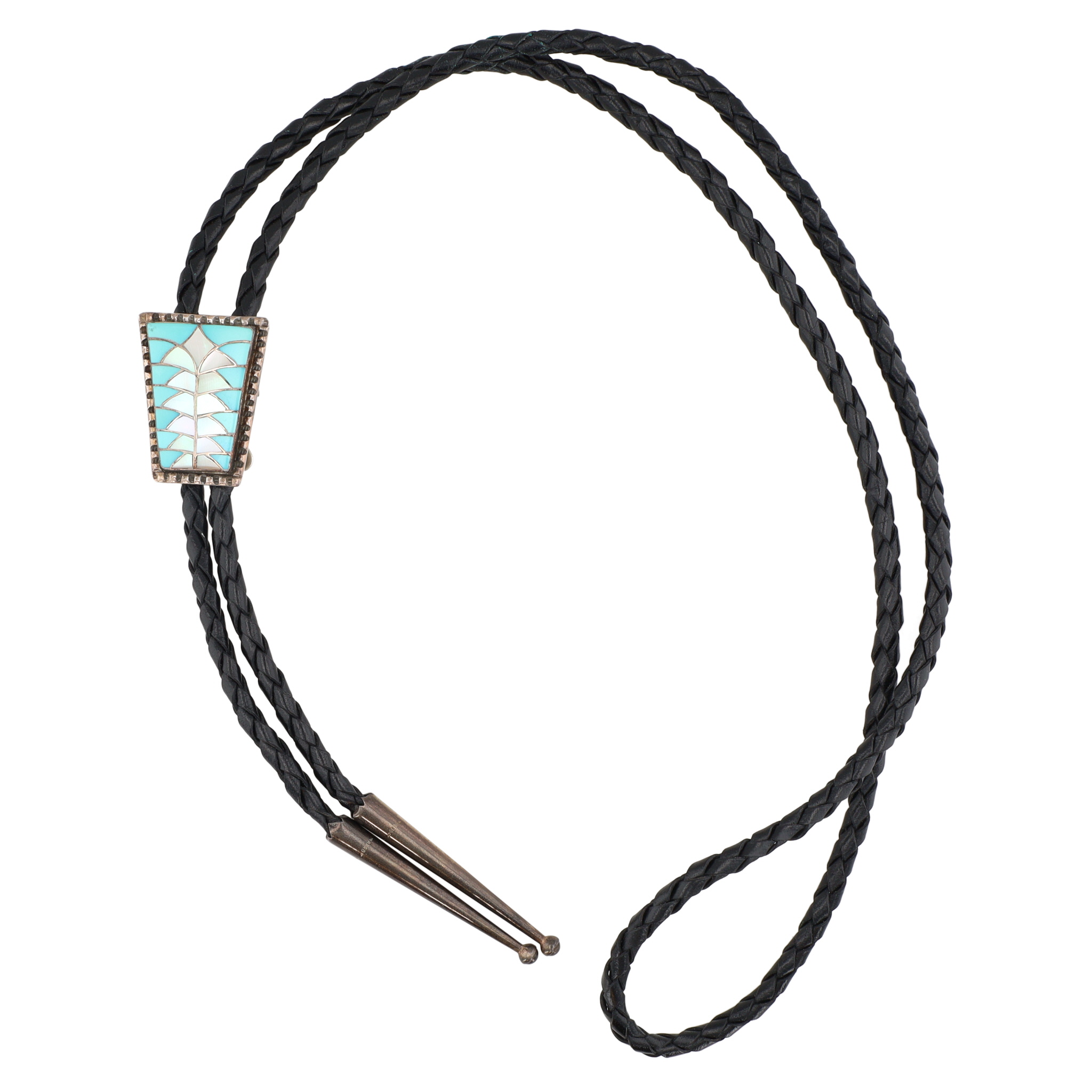 Handsigned Ed & Pablita Quam Zuni Sterling Inlay Bolo Tie 25g