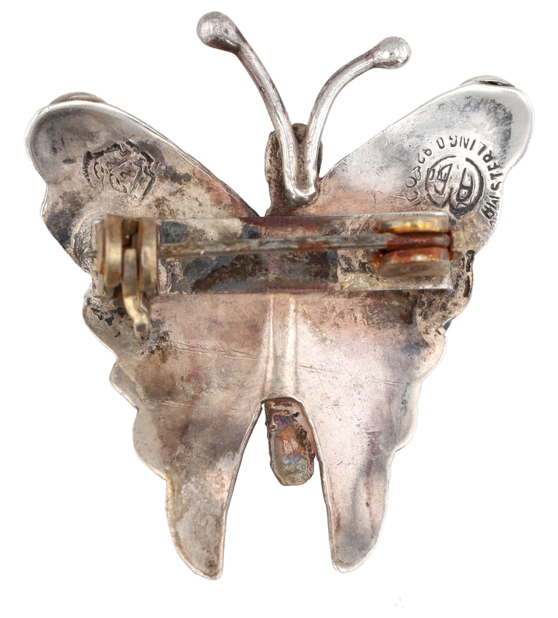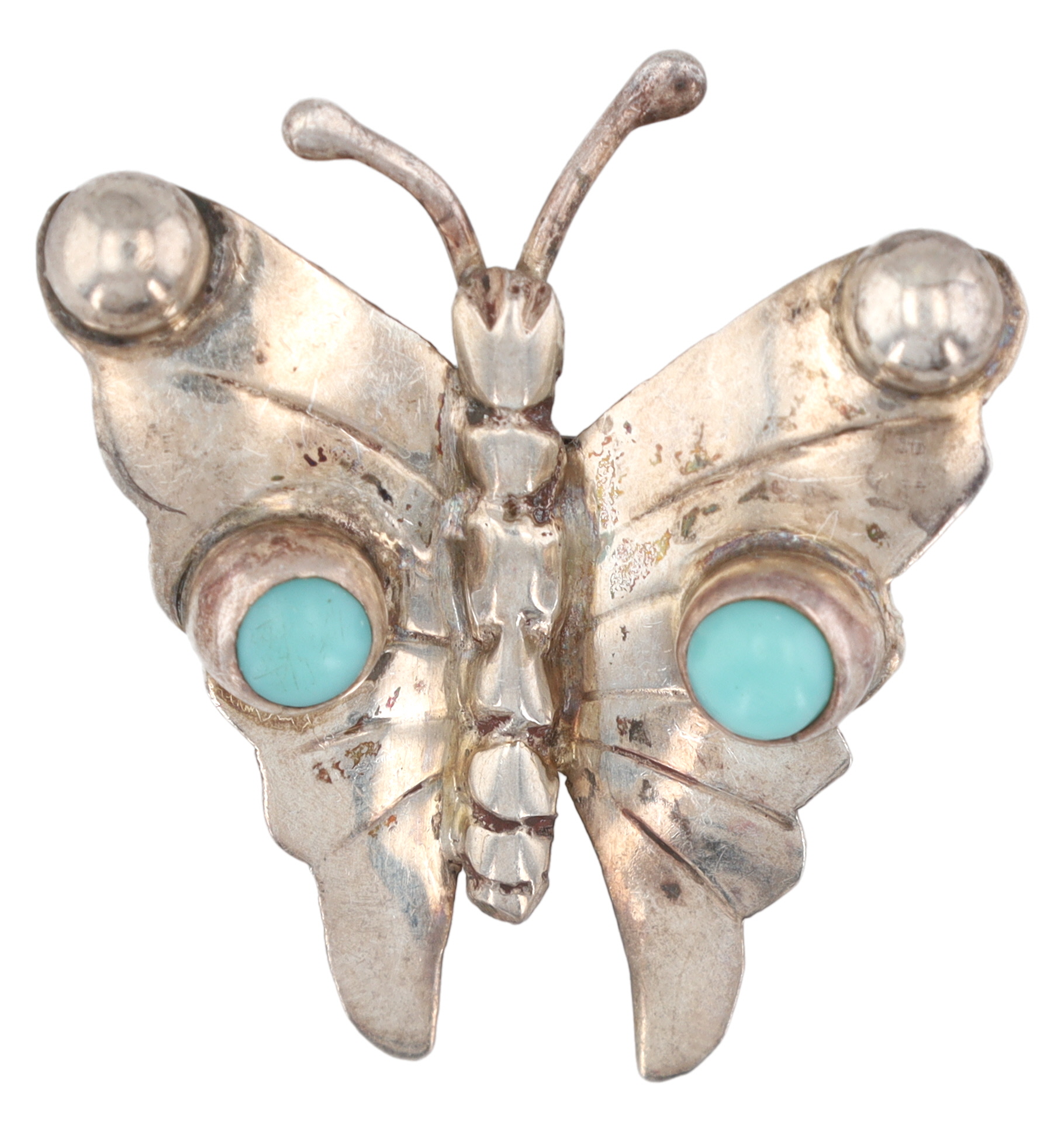 AG Signed Taxco Sterling Turquoise Butterfly Brooch 3g