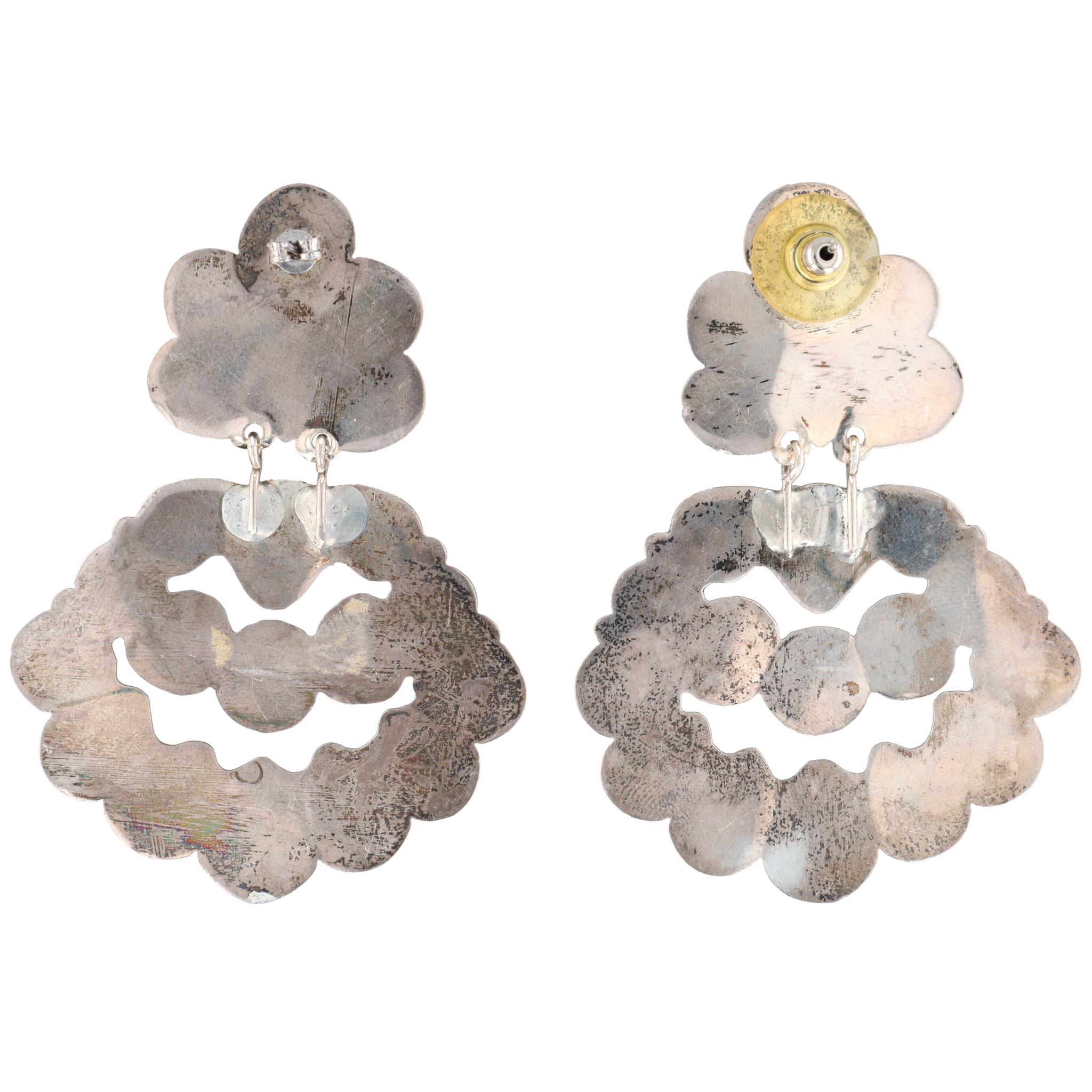 Vintage Navajo Sterling Multi Stone Cluster Earrings 34g