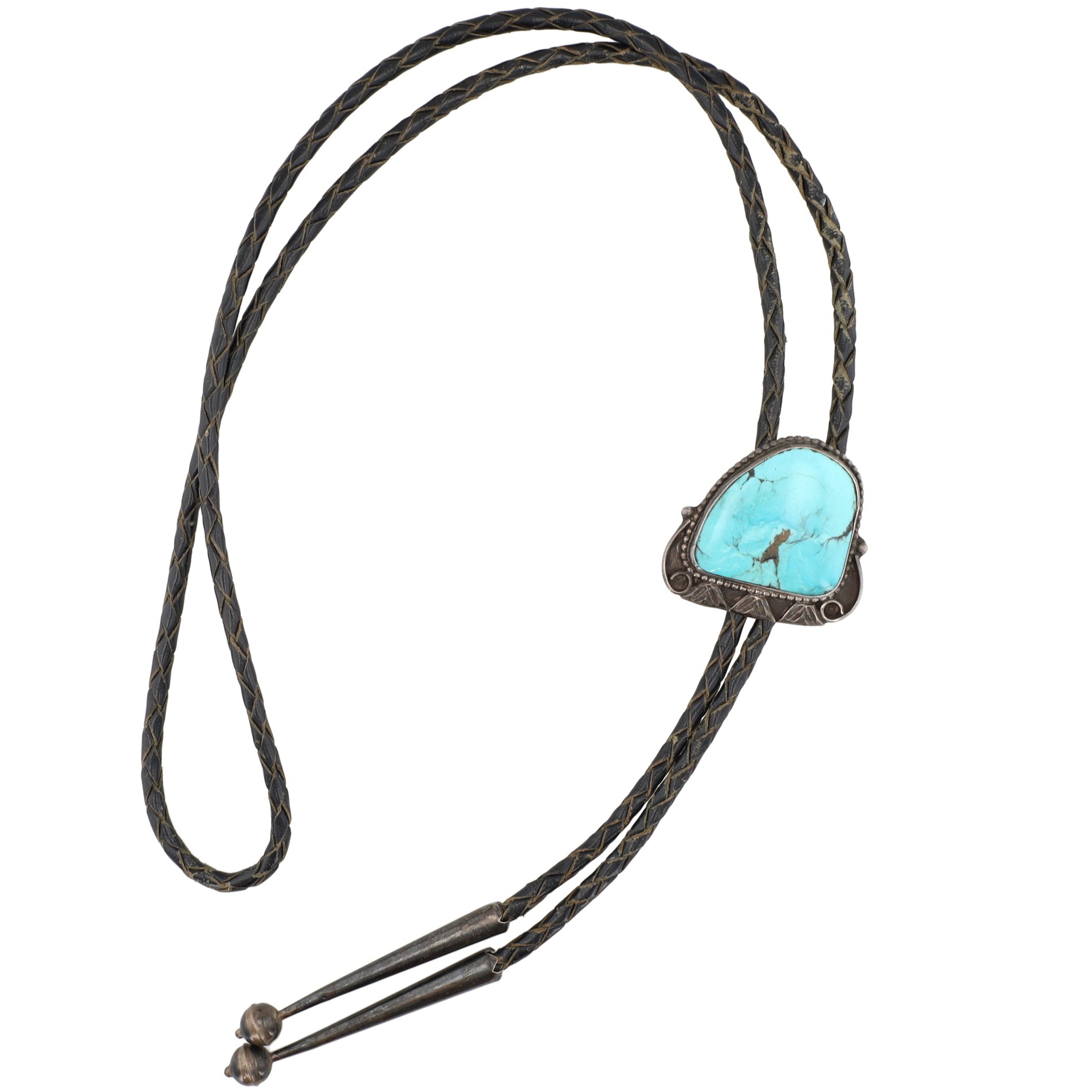 Vintage Navajo Sterling Turquoise Bolo Tie 30.5g