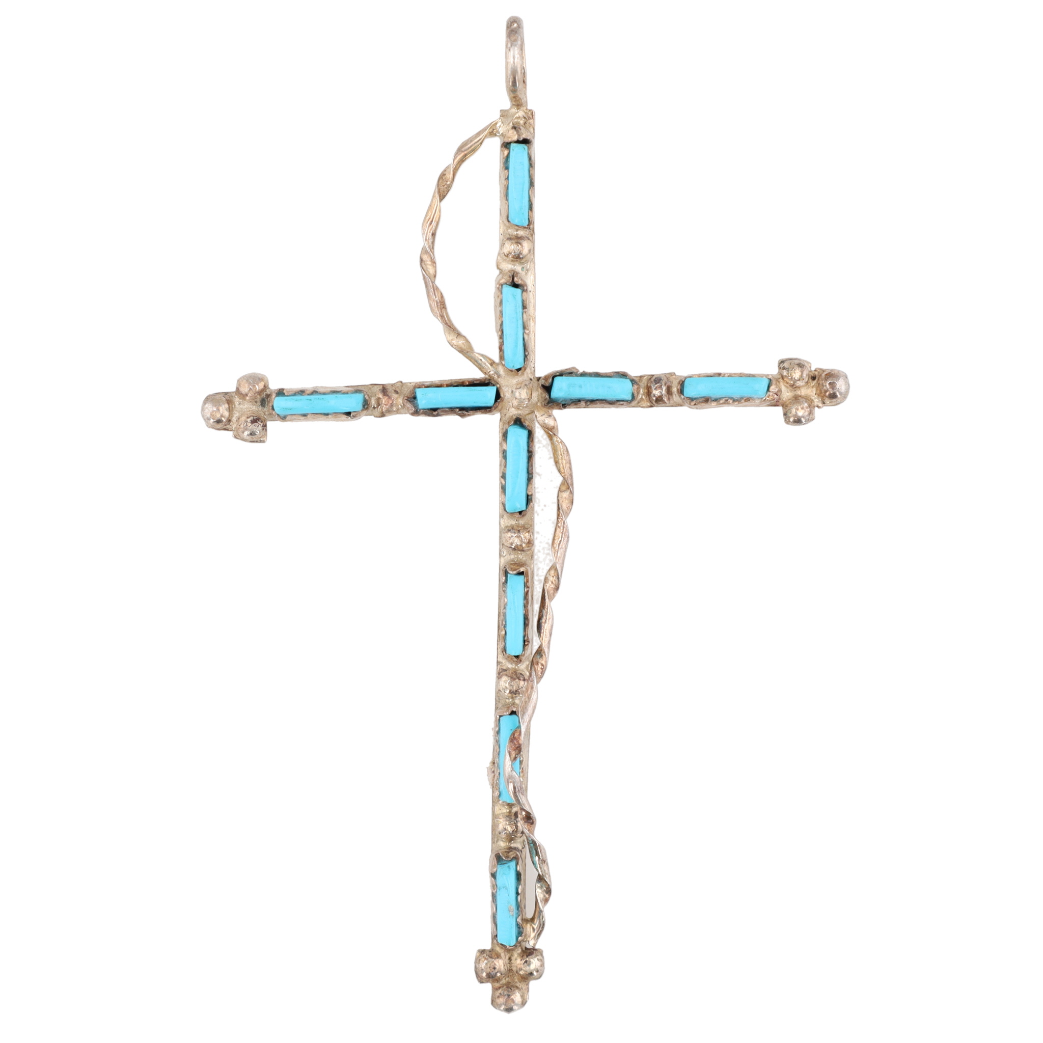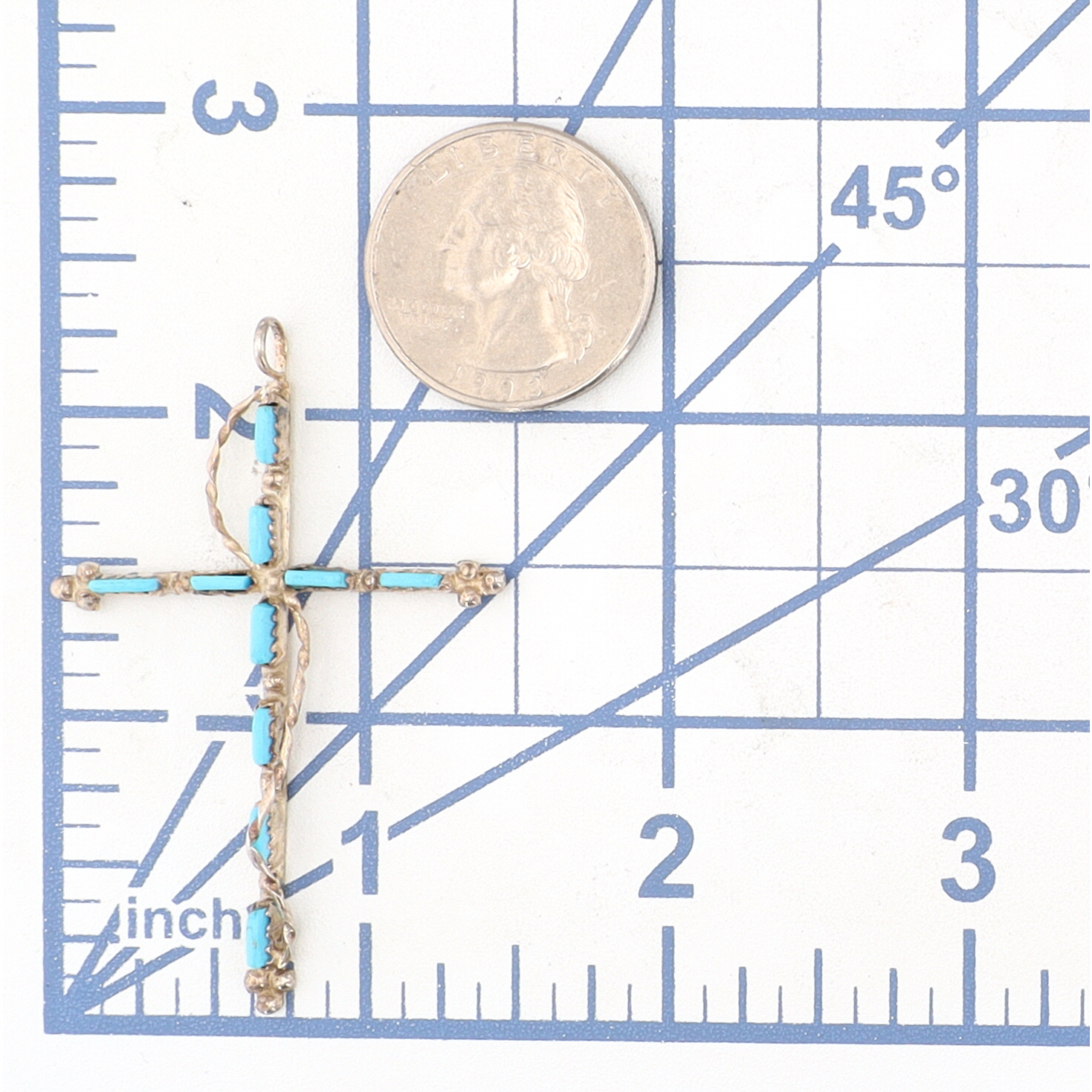 Vintage Zuni Sterling Needlepoint Turquoise Cross Pendant 2.5g