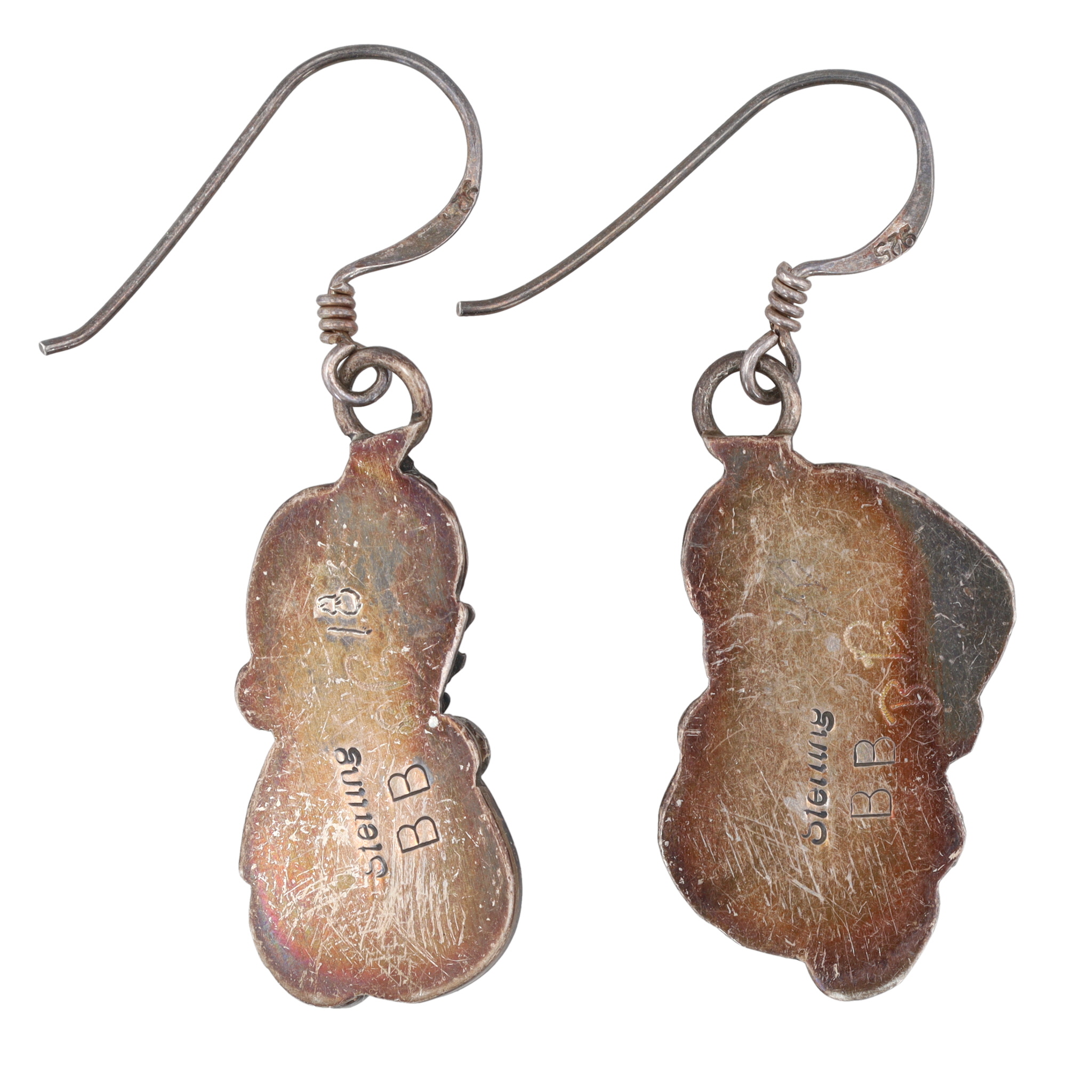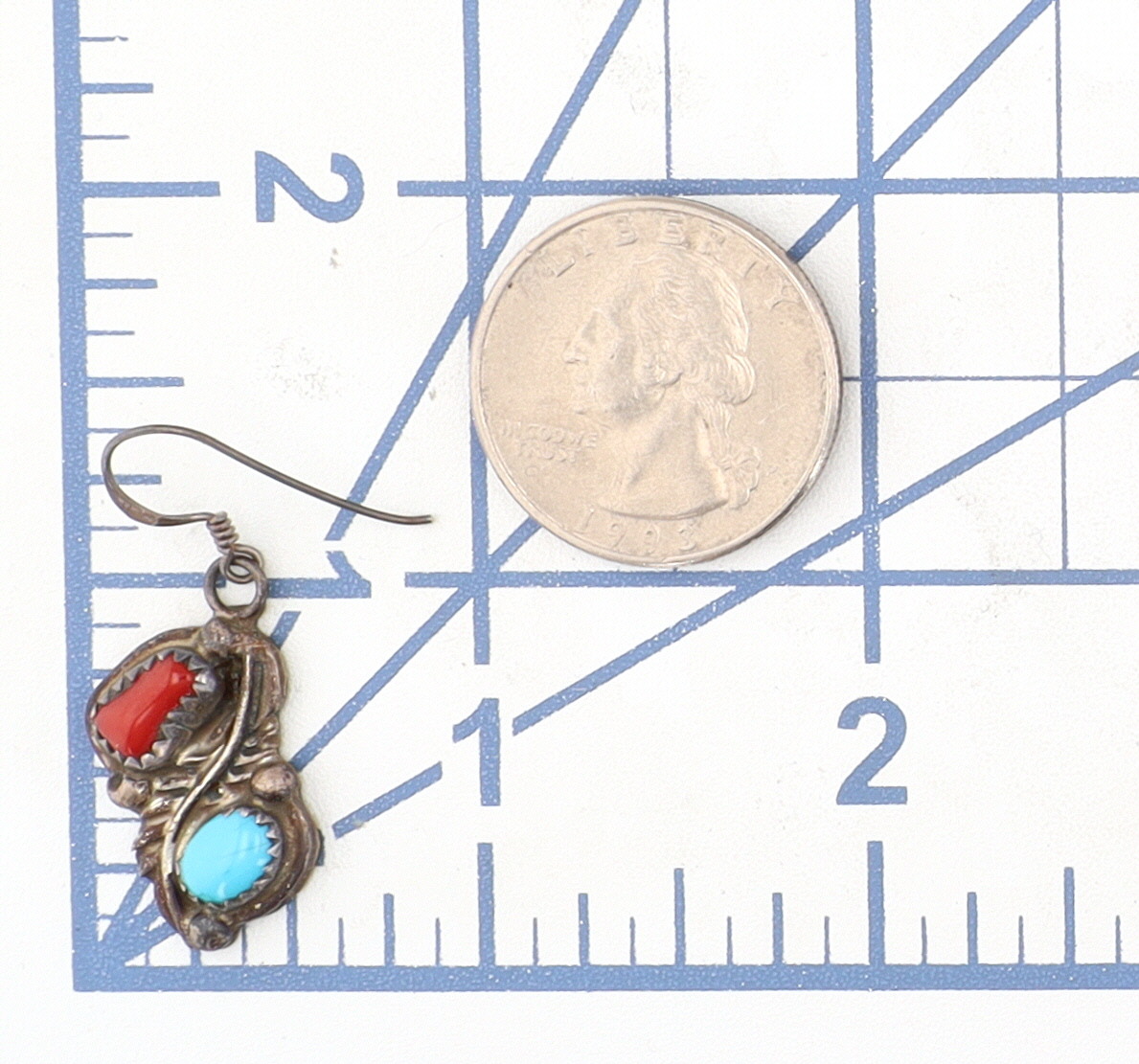 Bernice Bonney Navajo Sterling Turquoise Coral Earrings 5.5g