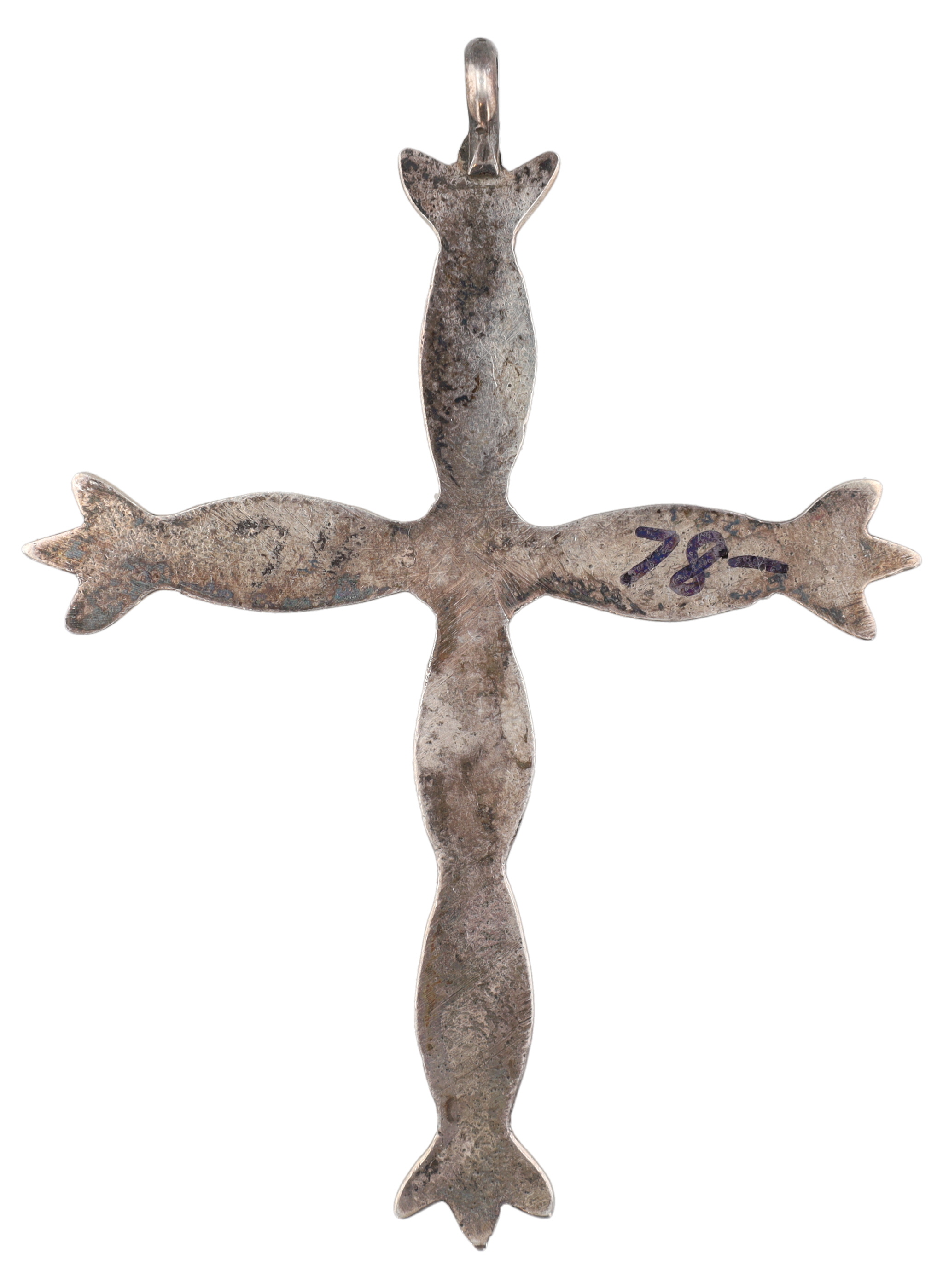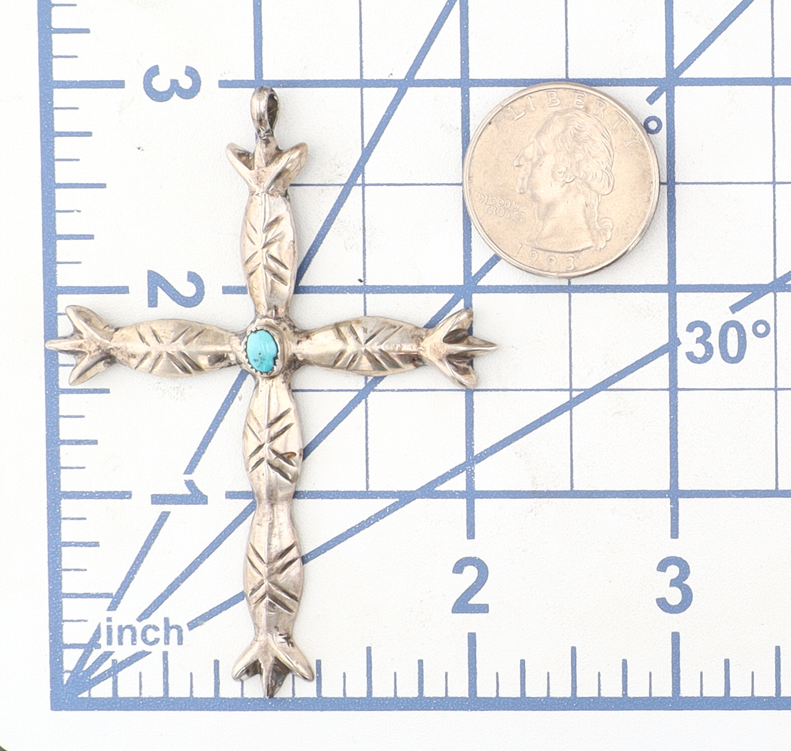 Vintage Navajo Sandcast Sterling Turquoise Cross Pendant 13g