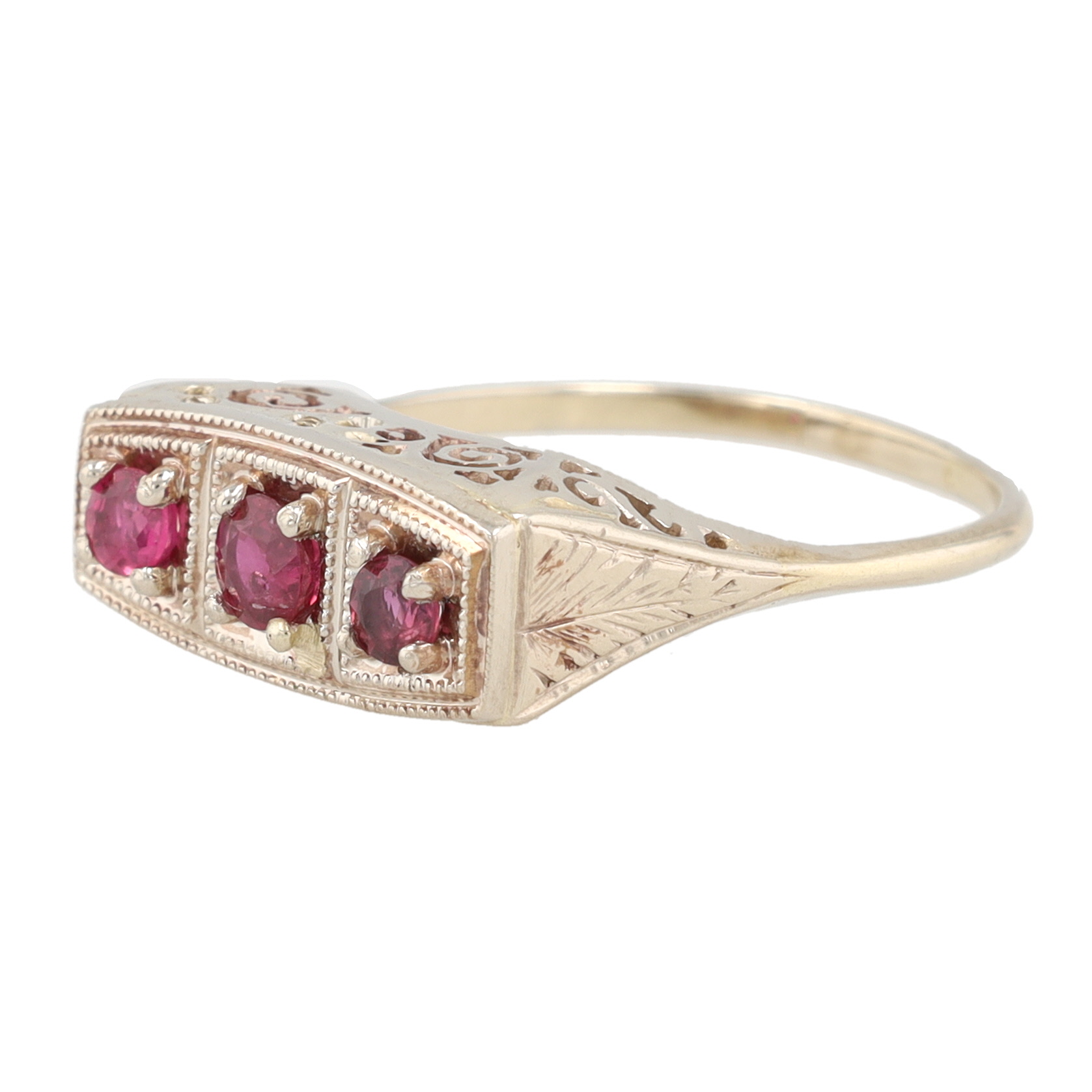 Vintage Ruby 14K White Gold Ring Size 8.25