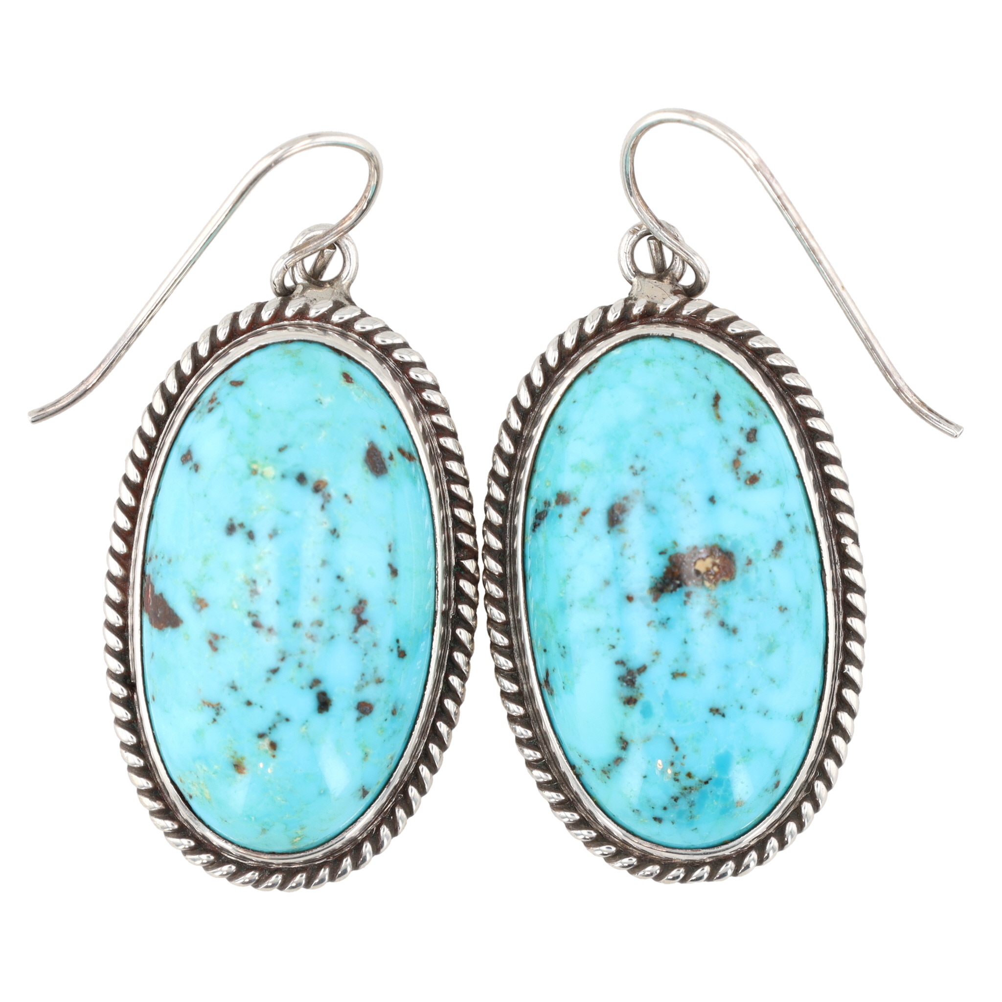 Signed TR Navajo Sterling Turquoise Earrings 15g