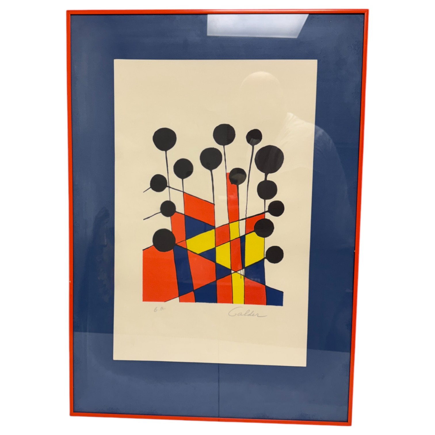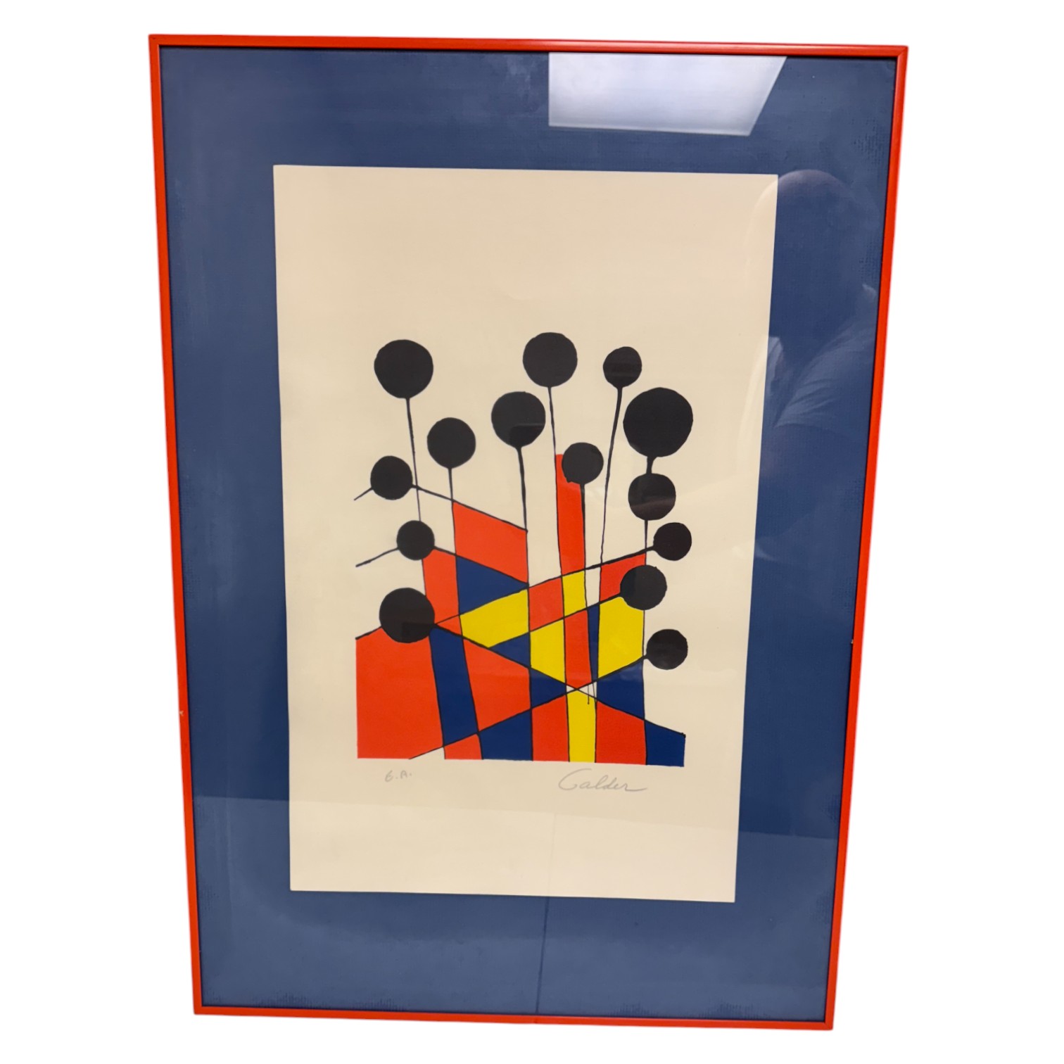 Alexander Calder Signed Artist Proof Lithograph “Balloons” circa 1971. This Artist proof is framed with the perfect frame for the piece. The measurements are approximately 27″x19″x1″ inches