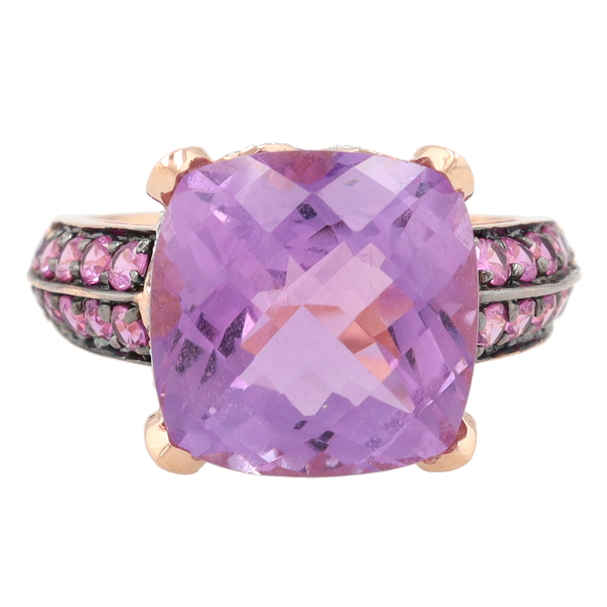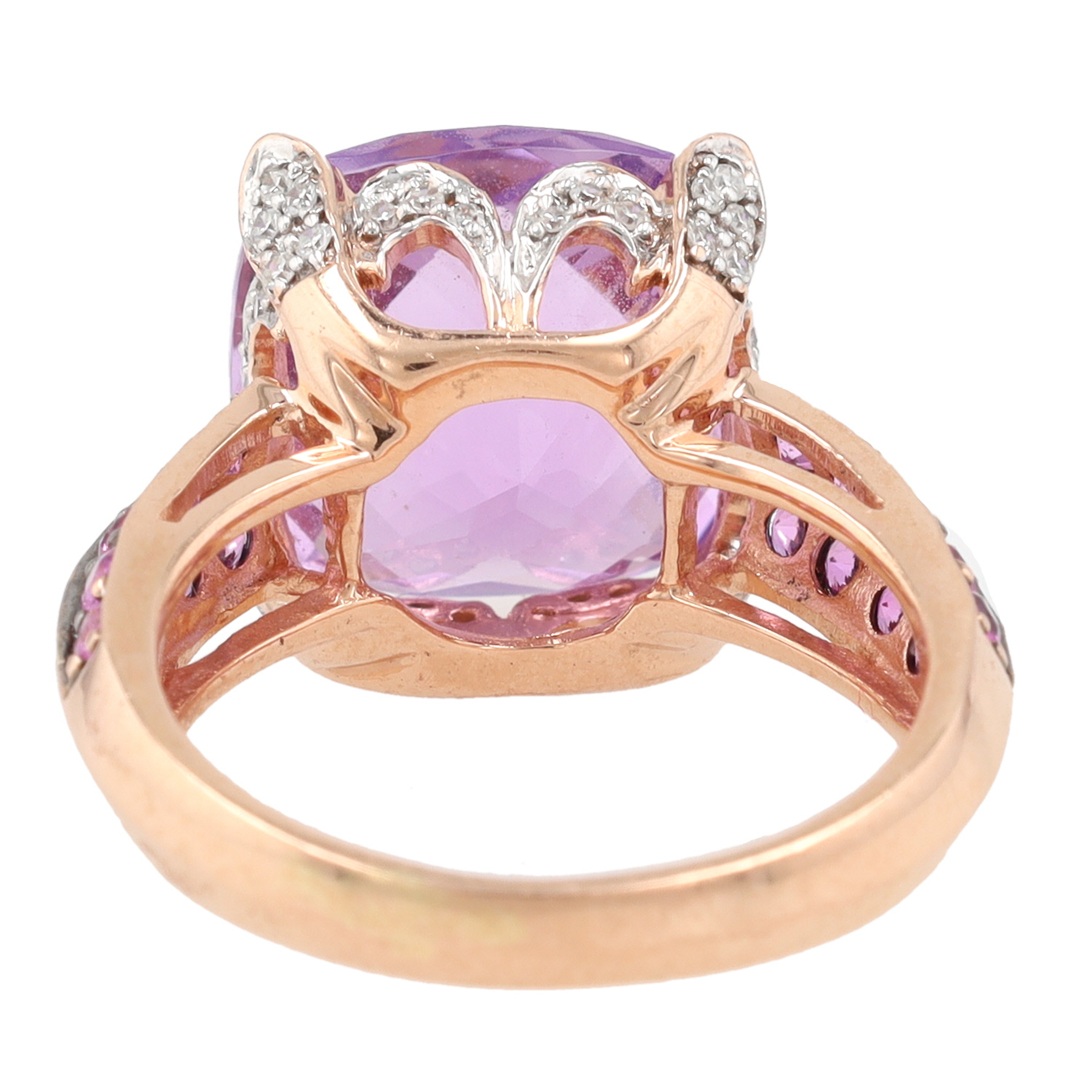 BJC Cushion Cut Amethyst Diamond 14K Gold Cocktail Ring Size 7.75 7.7 G Approximately 9 TCW