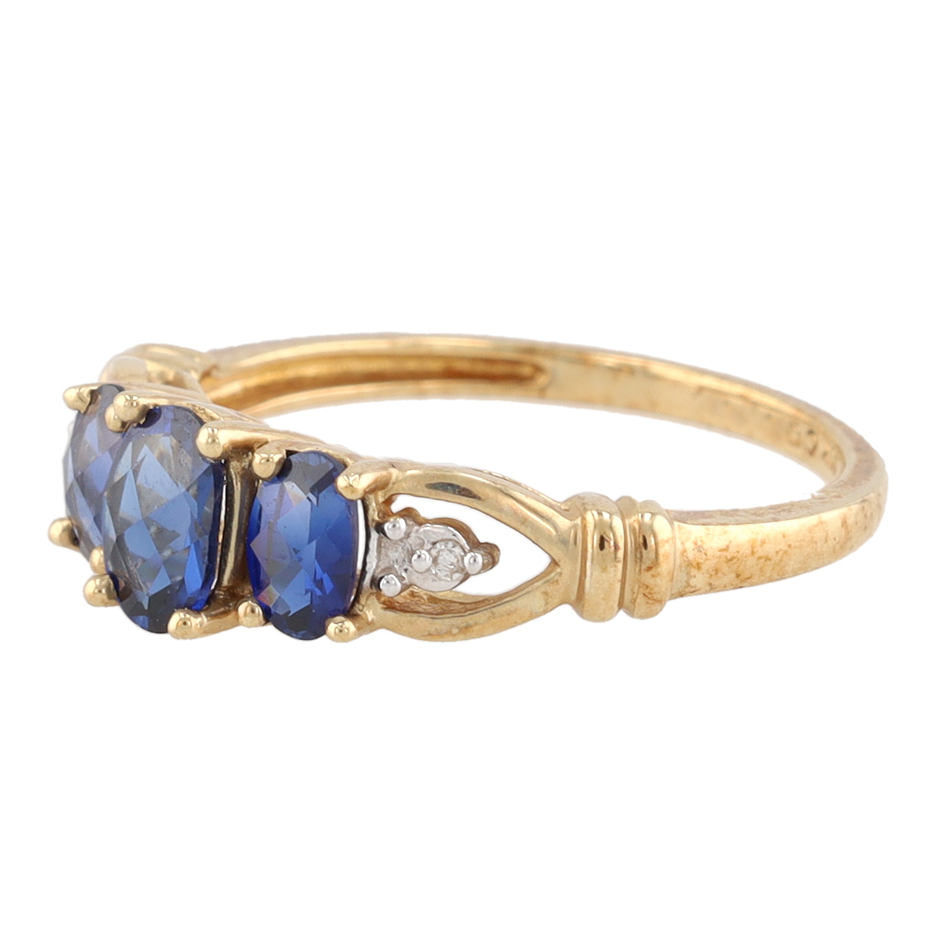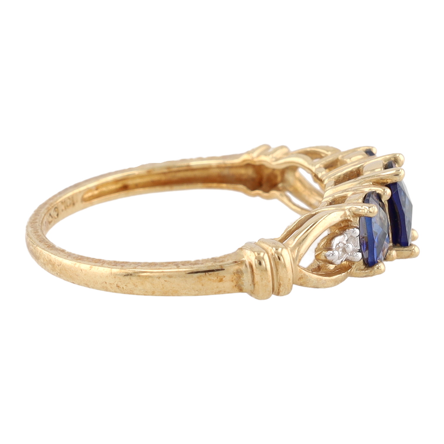 C Sapphire Diamond 10K Gold Cocktail Ring Size 7 2.4 G Approximately 0.85 TCW