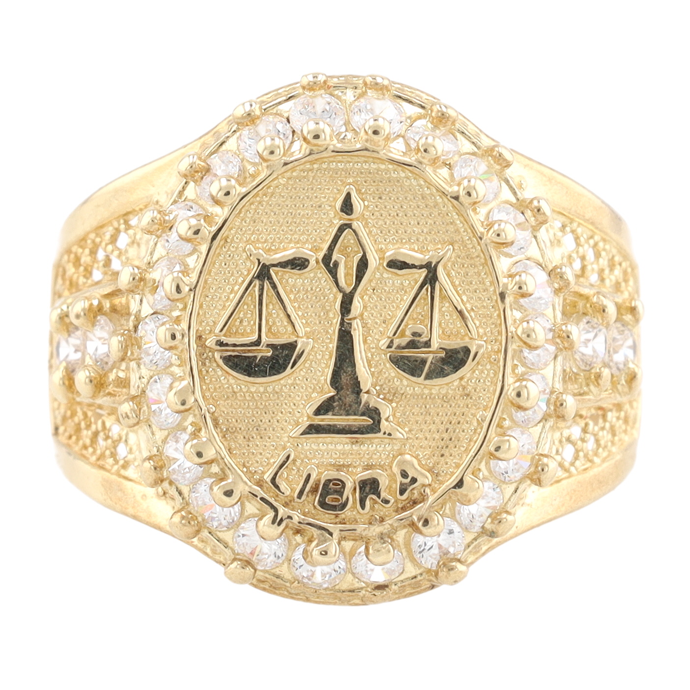 Clear Stone 10K Gold Libra Zodiac Scales of Justice Ring Size 10.5 5.58 G