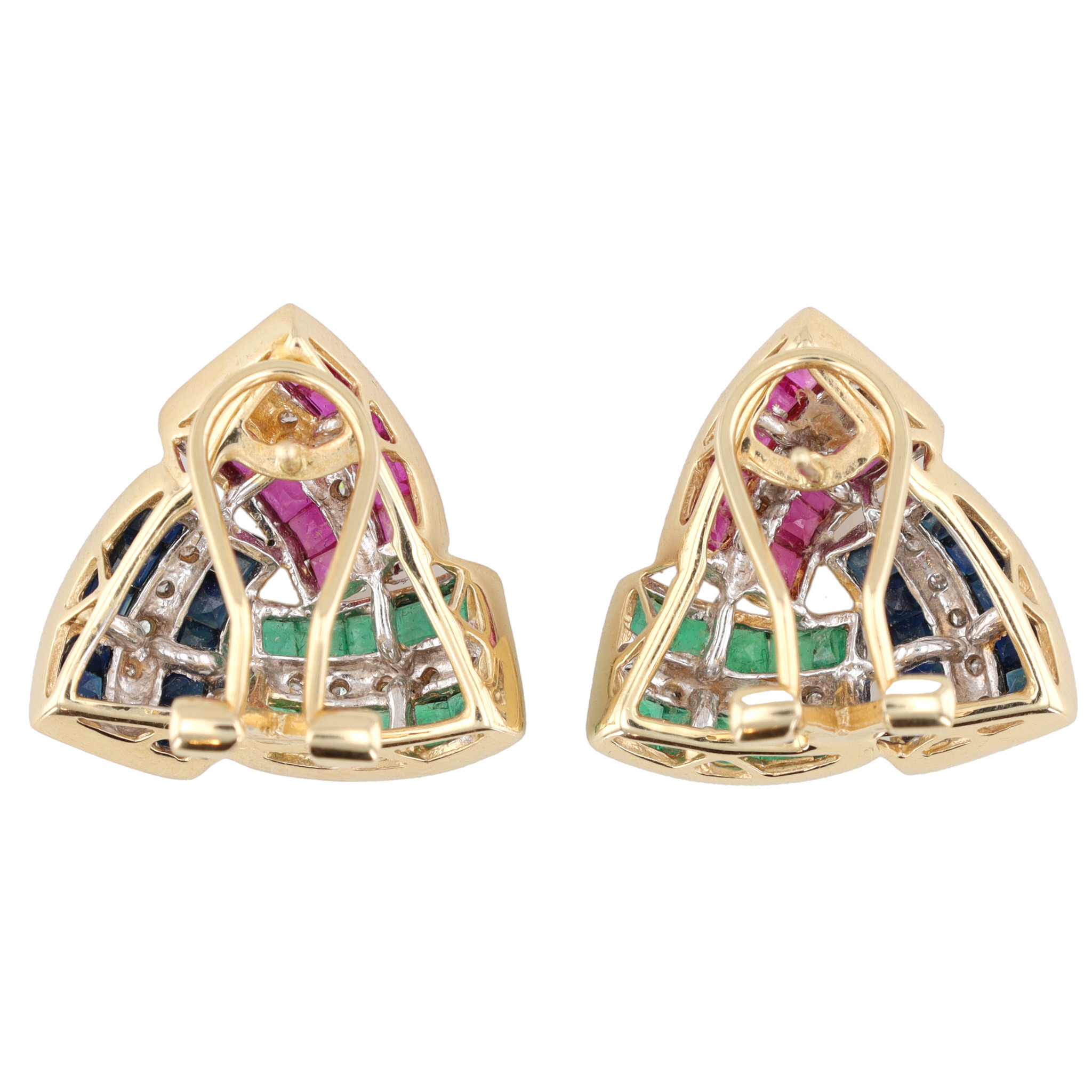 Satas? Ruby Sapphire Emerald Diamond 14K Gold Earrings 7.6 G Approximately 0.84 TCW 0.14 TCW 0.14 TCW 0.14 TCW