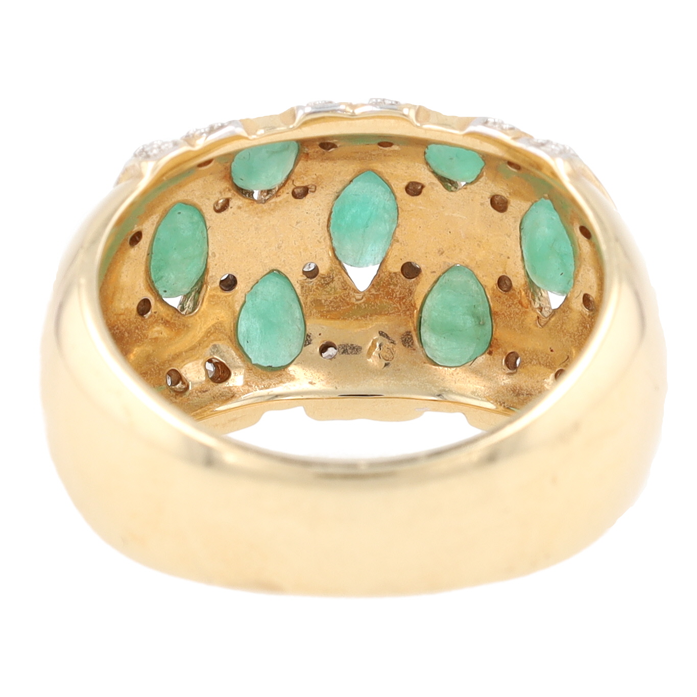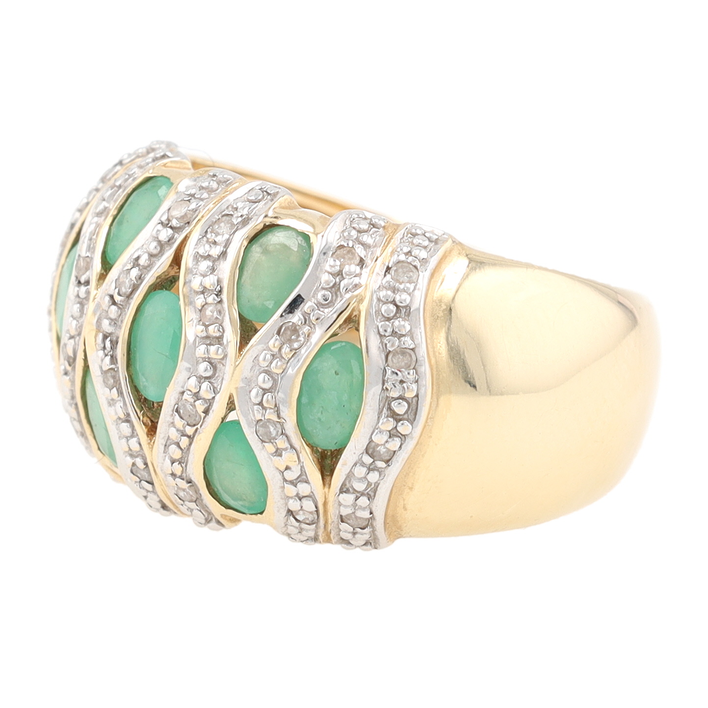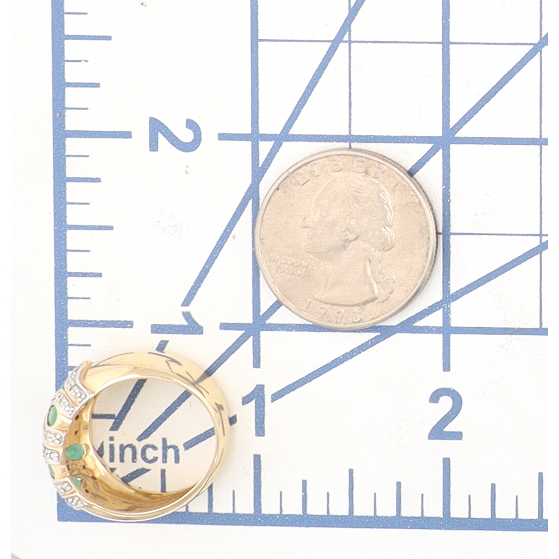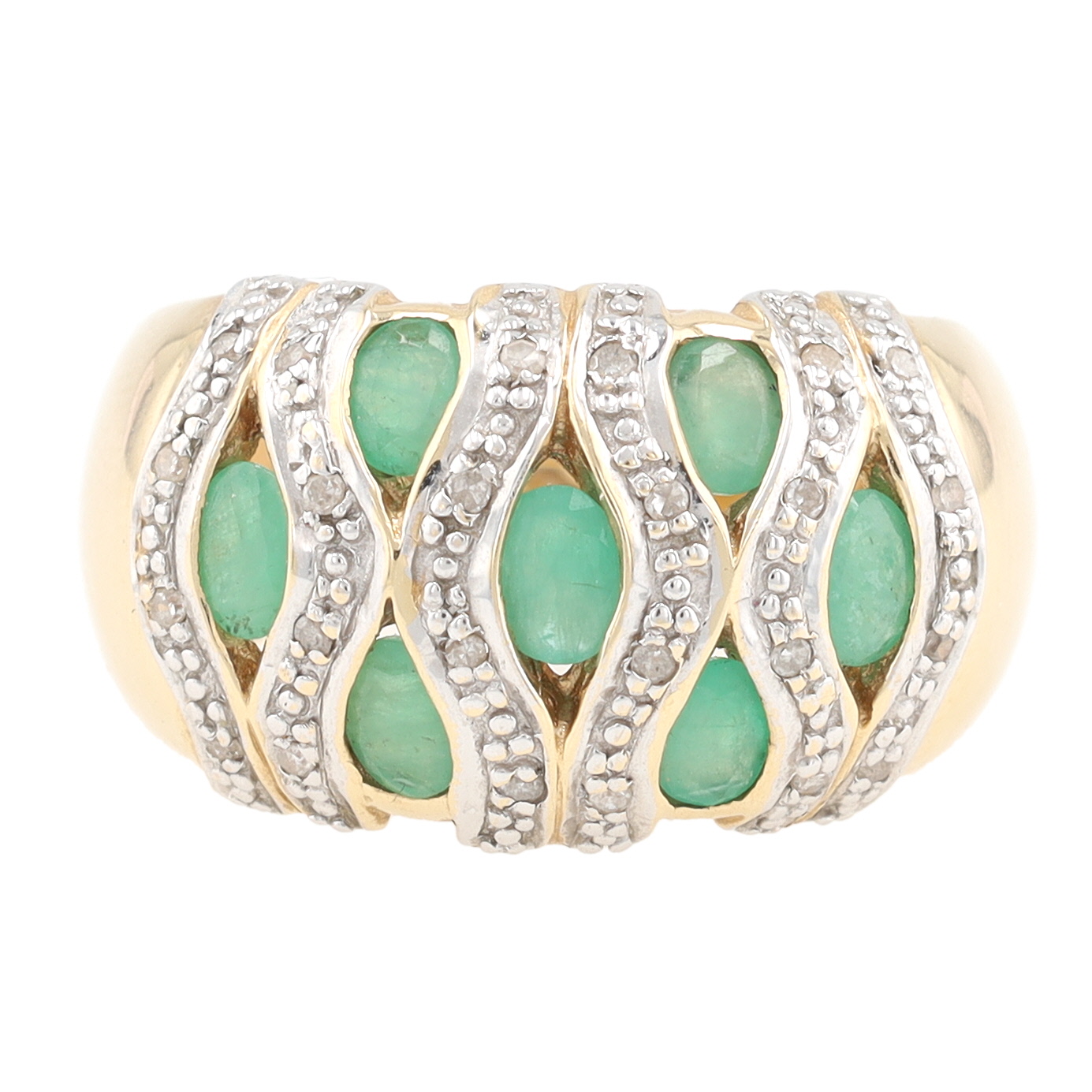Signed Diamond Green Gemstone 14K Gold Cocktail Ring Size 6.5 6.8 G 1.4 TCW