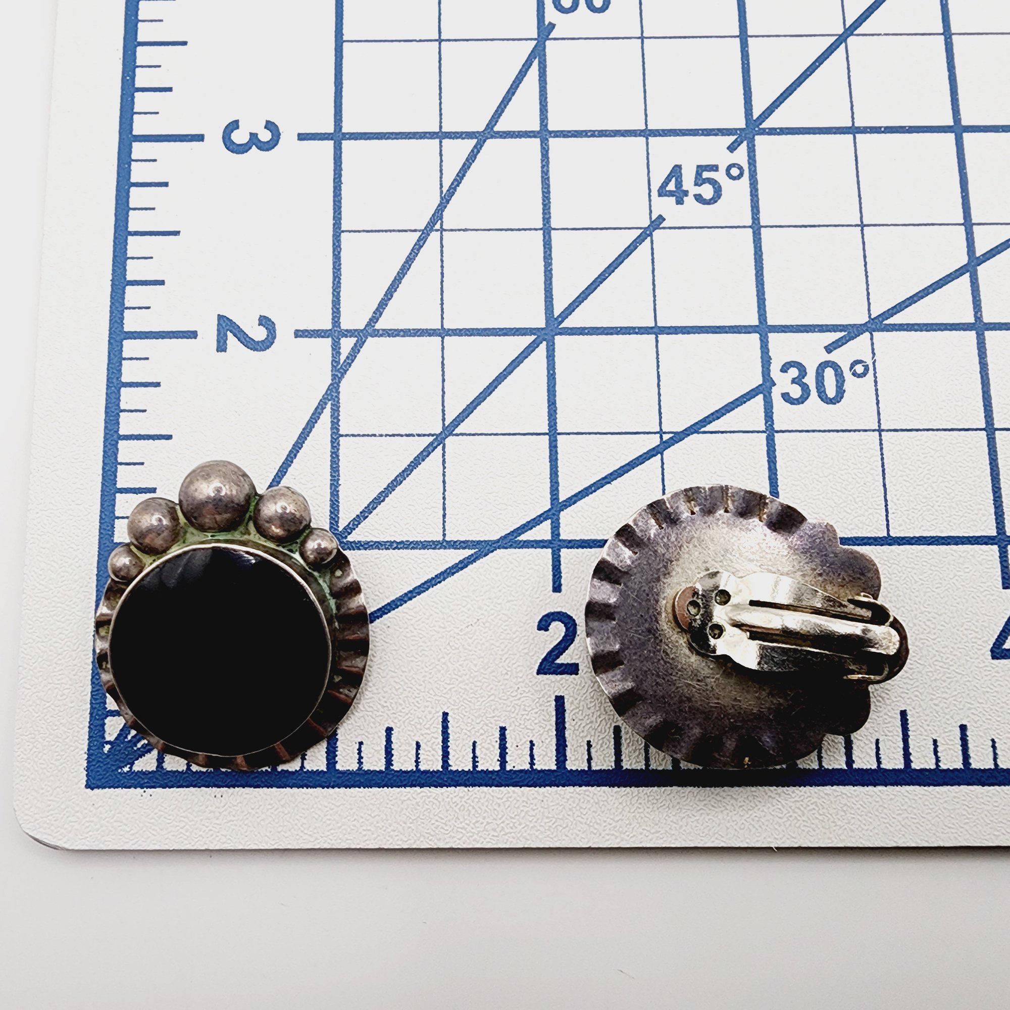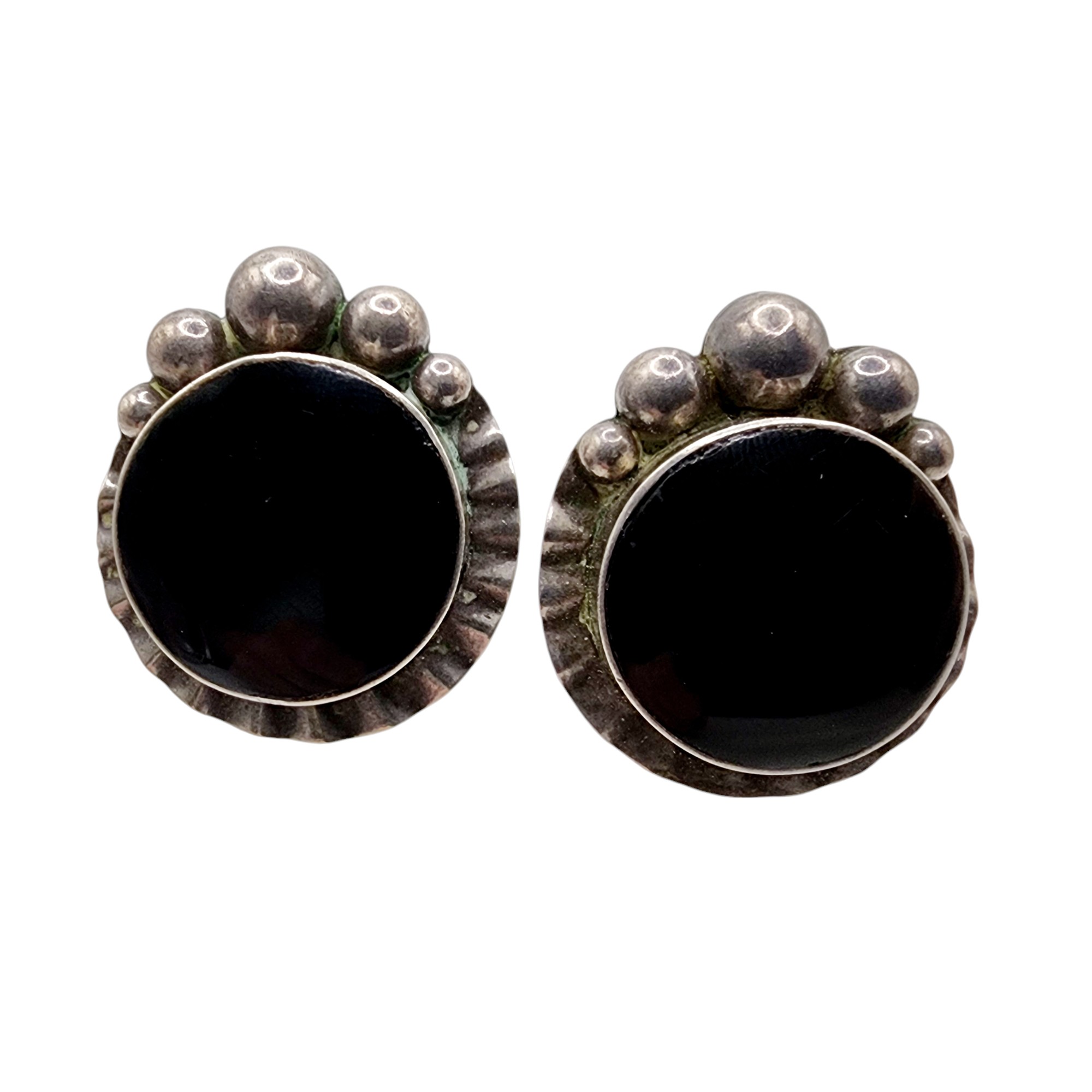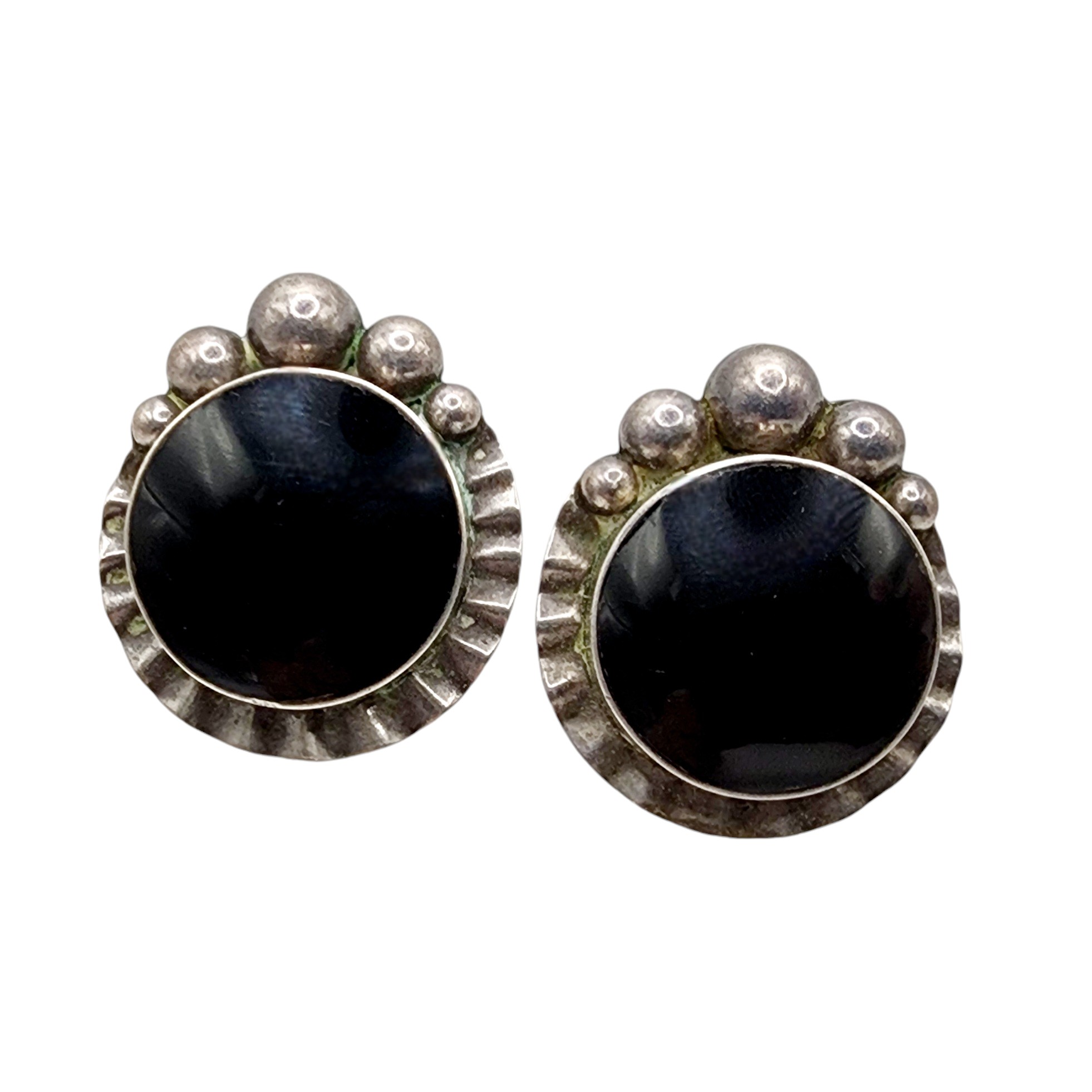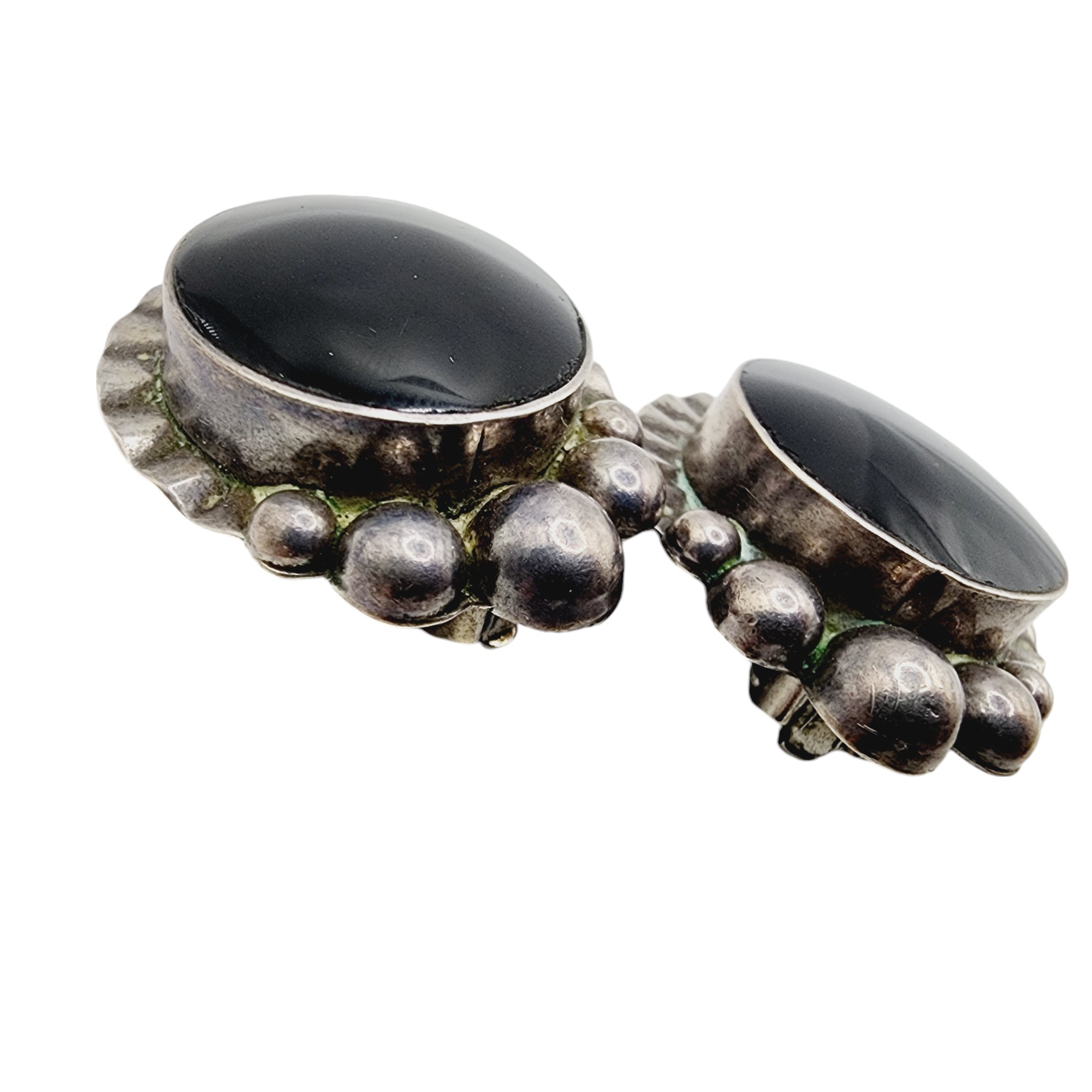 Taxco TP-69 Vintage Sterling Large Onyx Earrings 25.7g