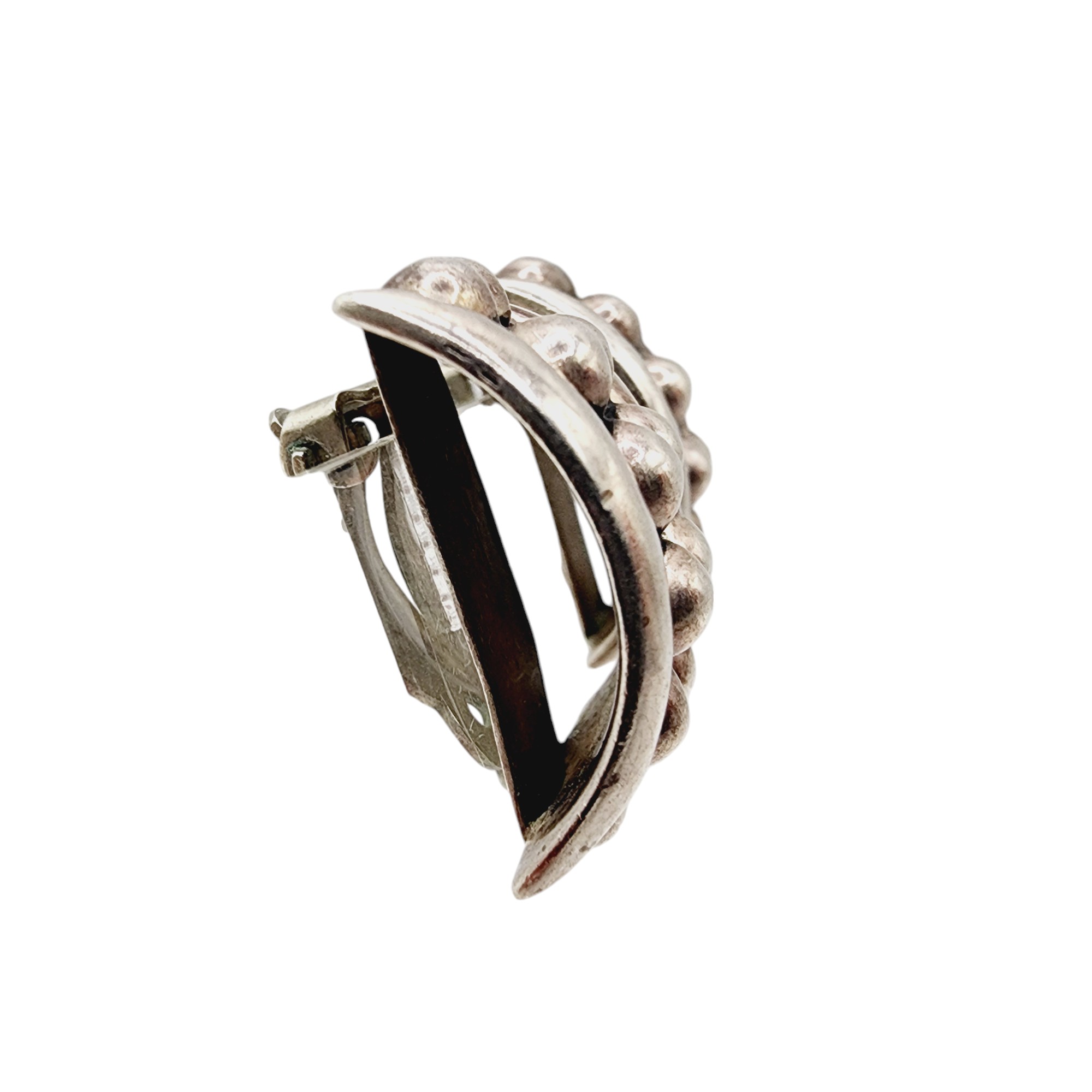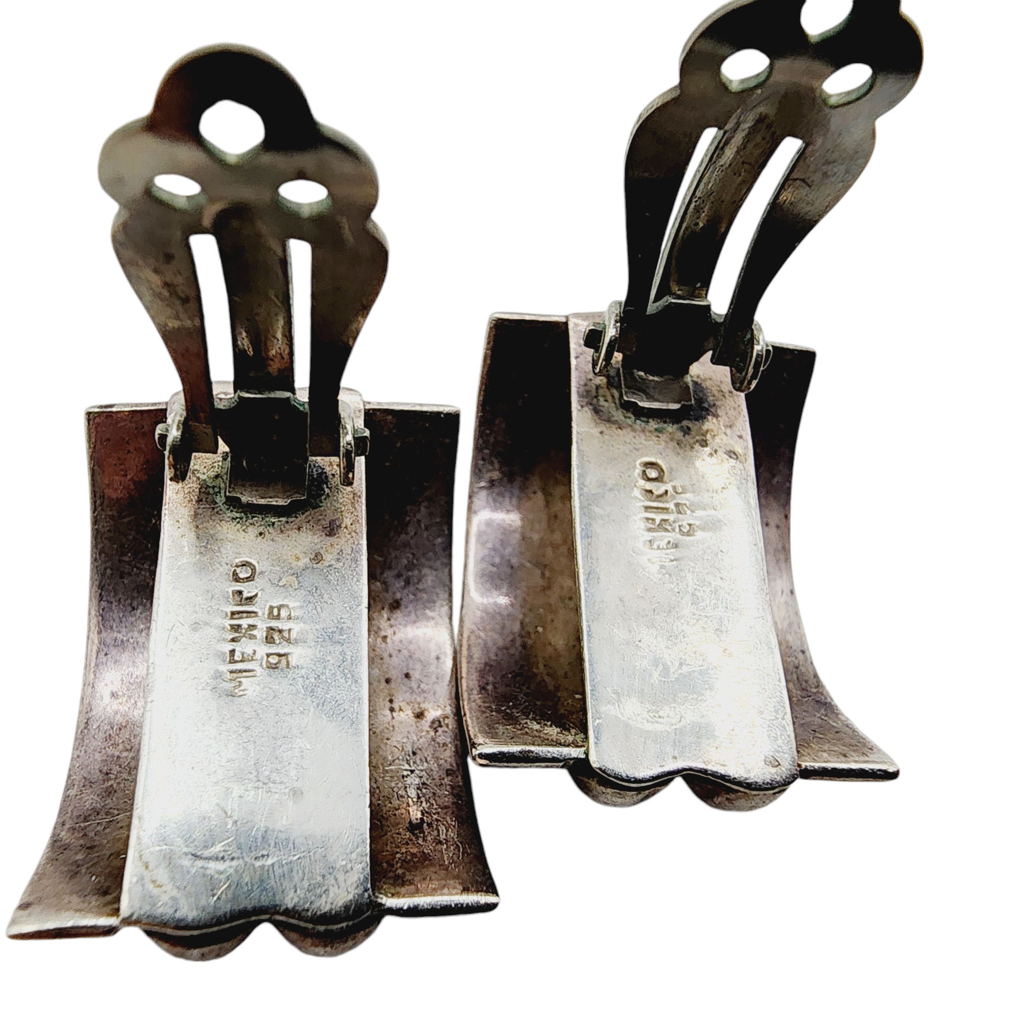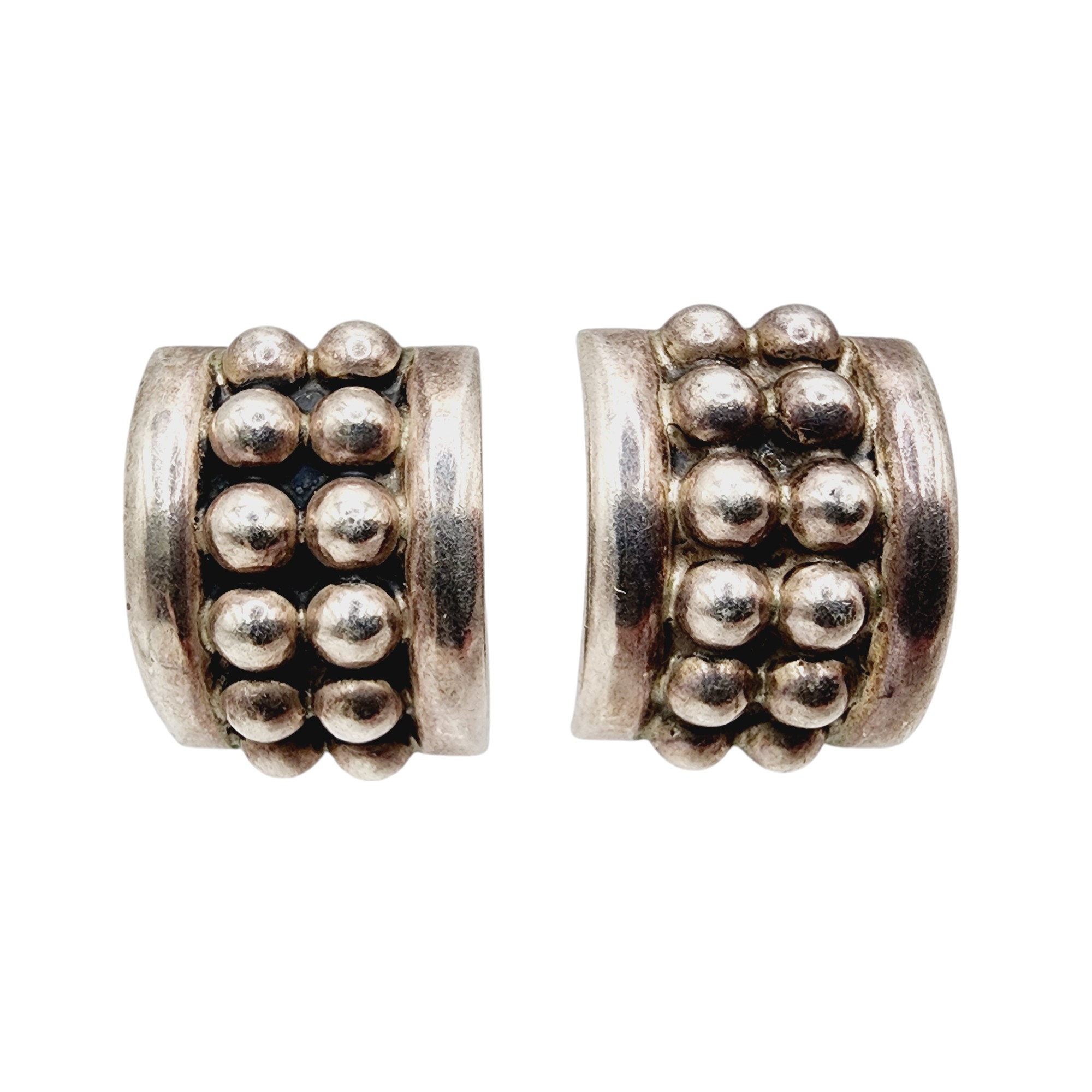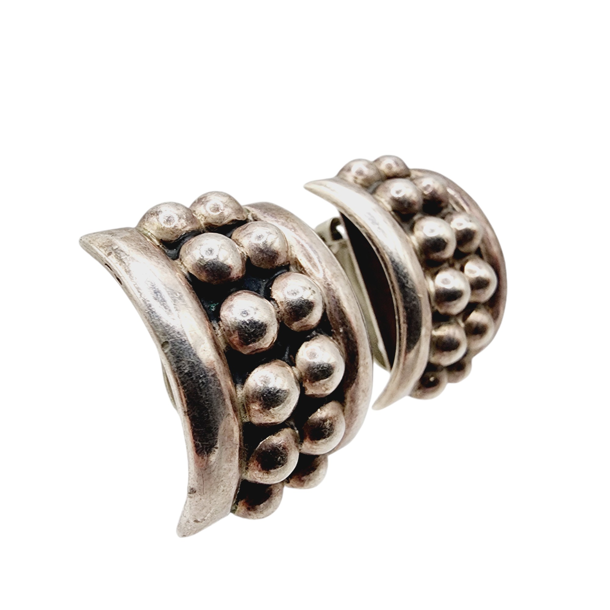 Large Vintage Mexico Sterling Curved Bead Earrings