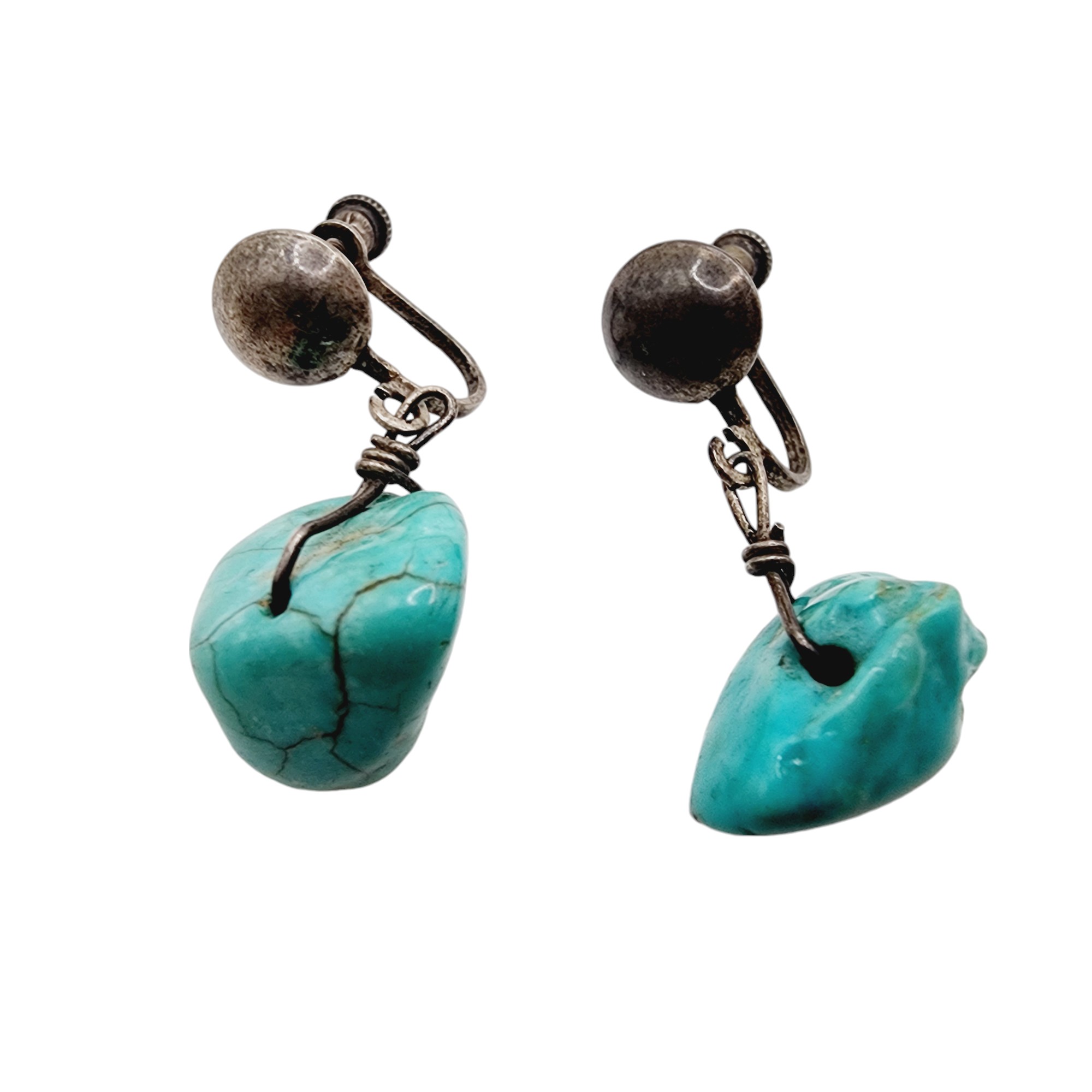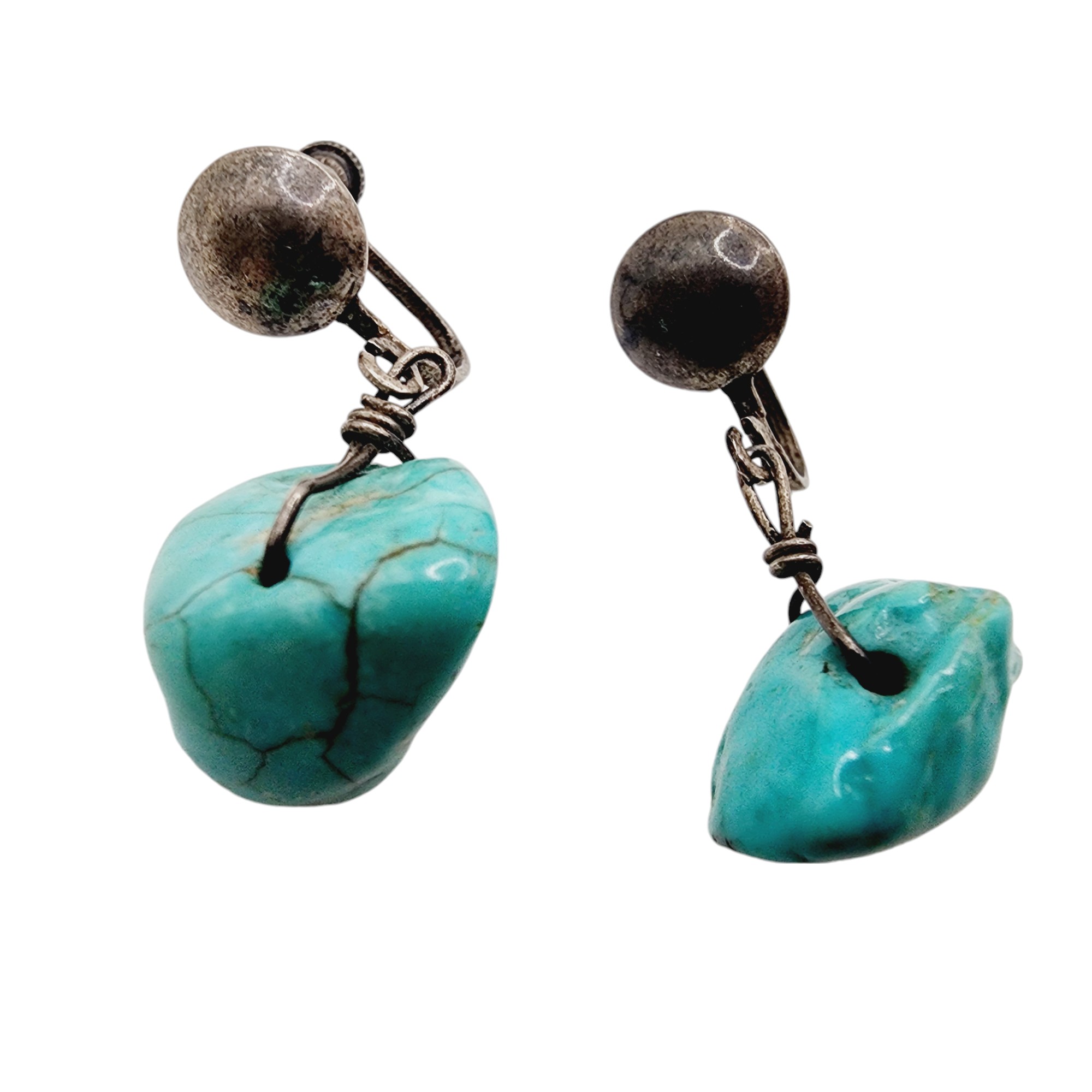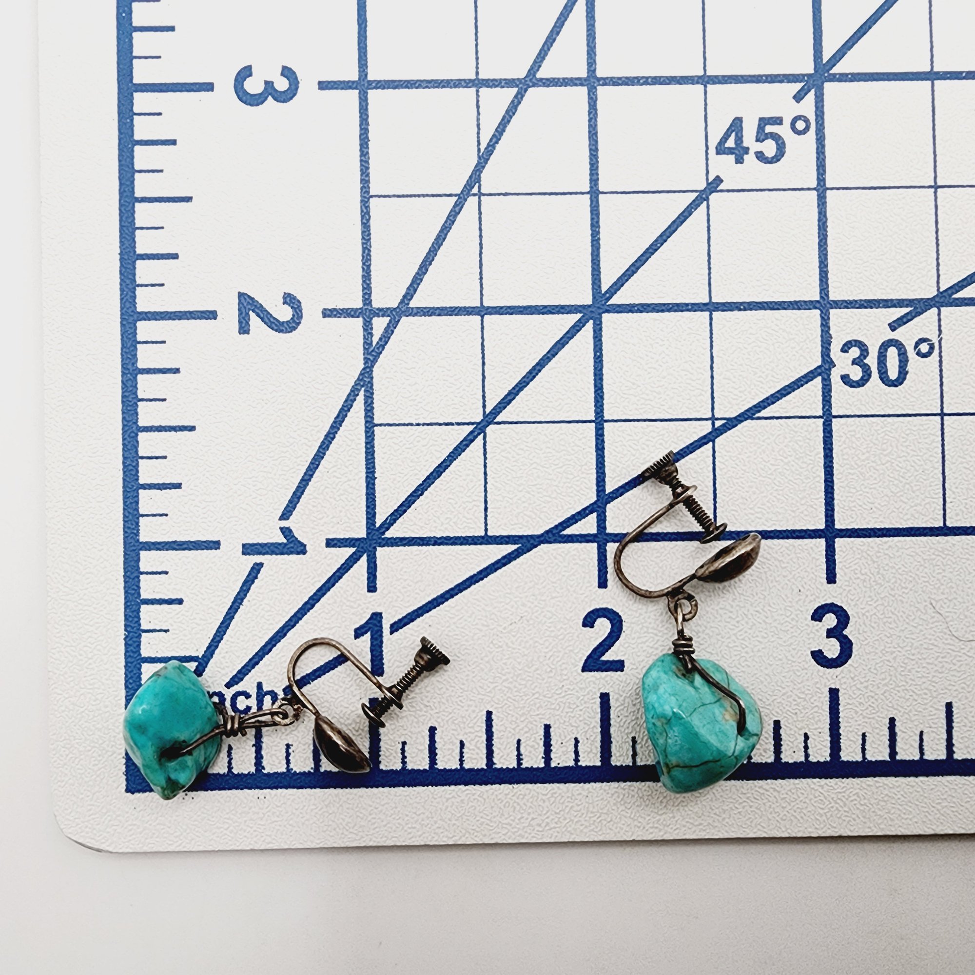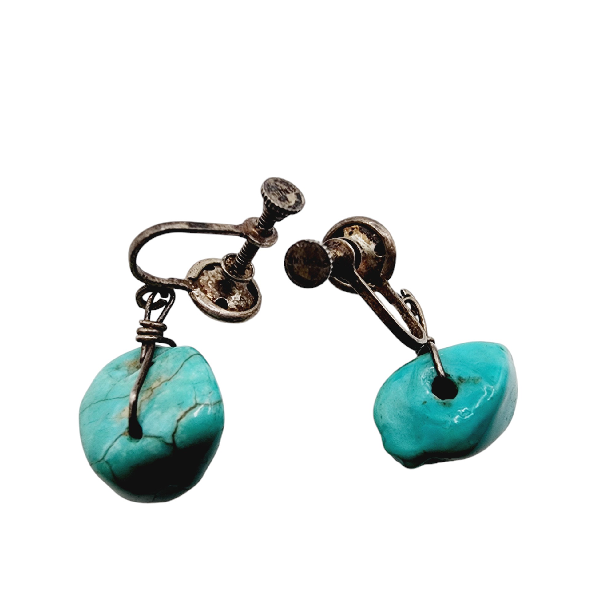Vintage Sterling Turquoise Chunk Earrings 6g