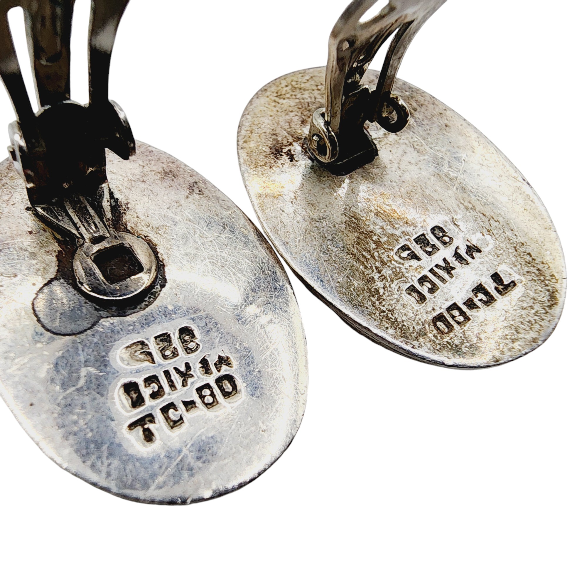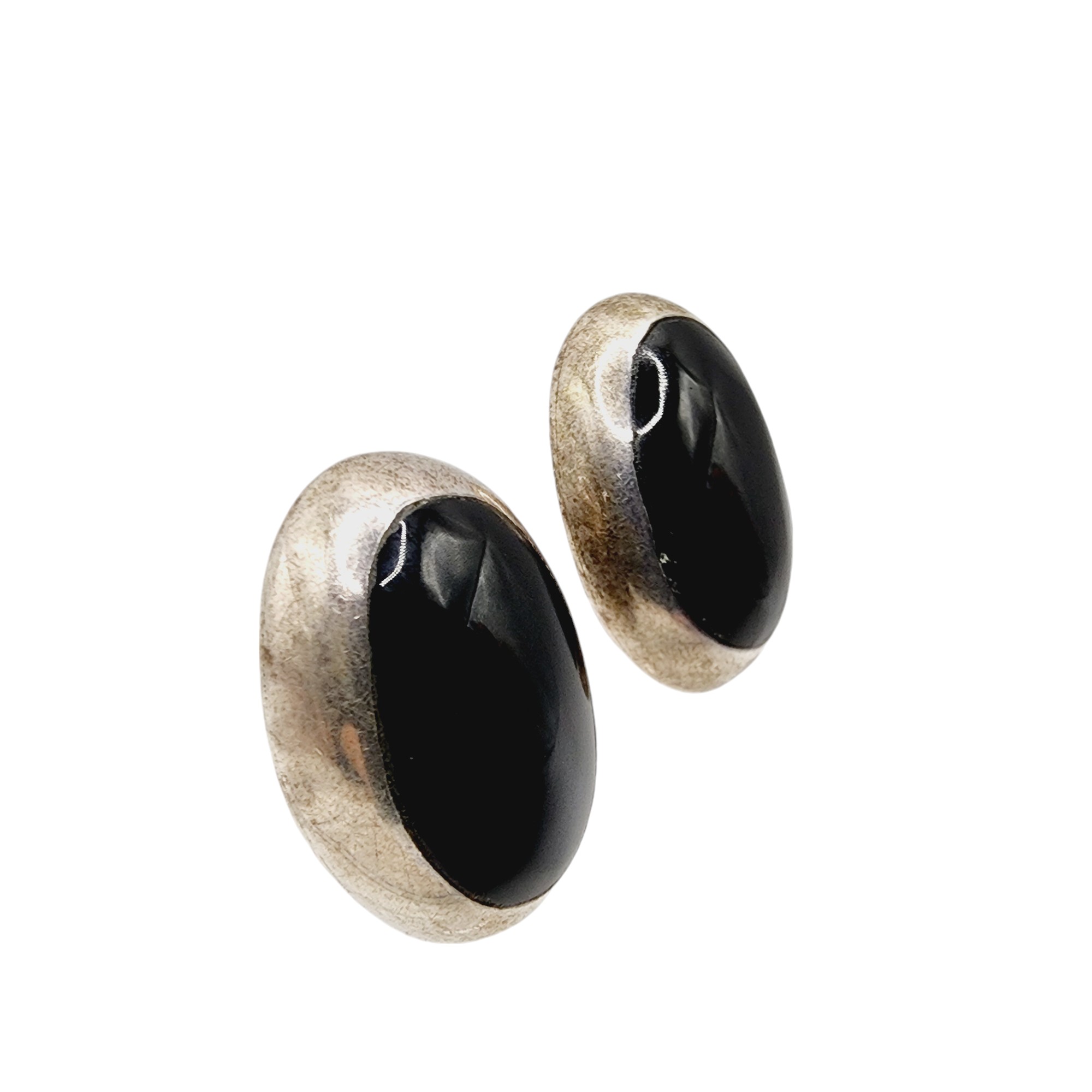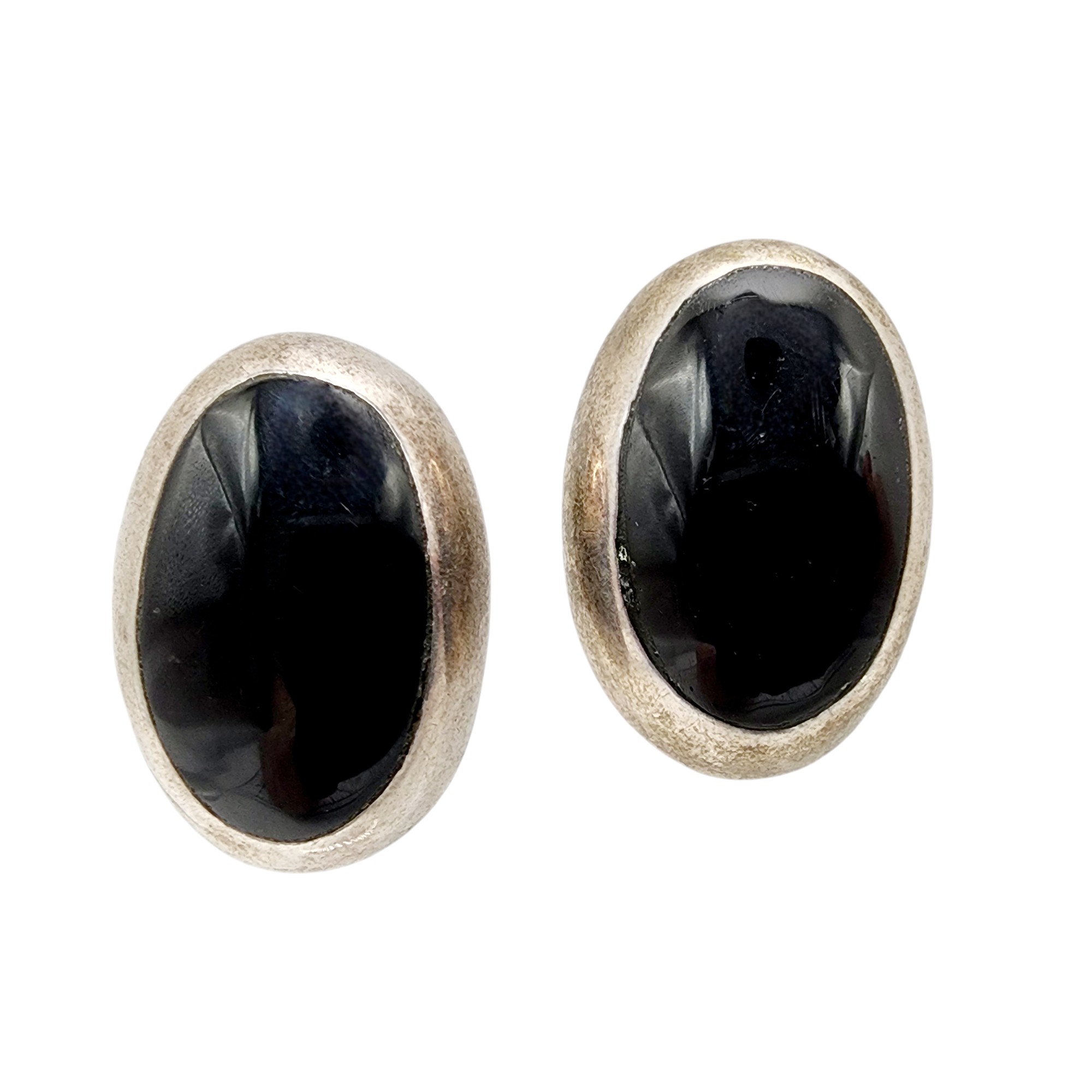 Signed Mexico Vintage Sterling Onyx Oval Earrings 16.9g, as is
