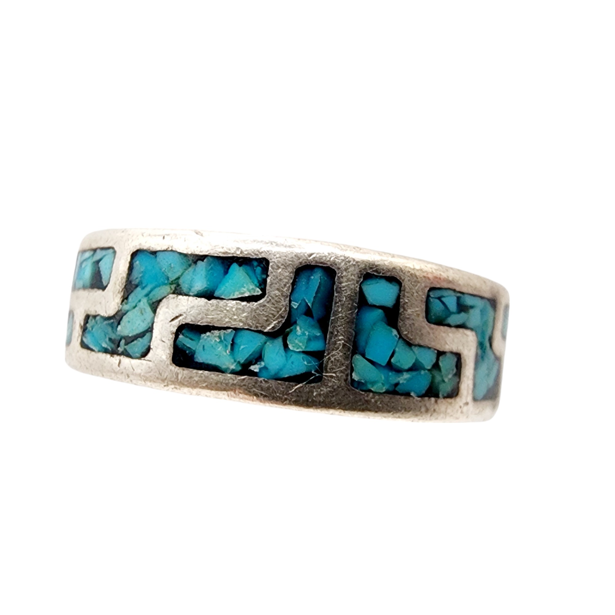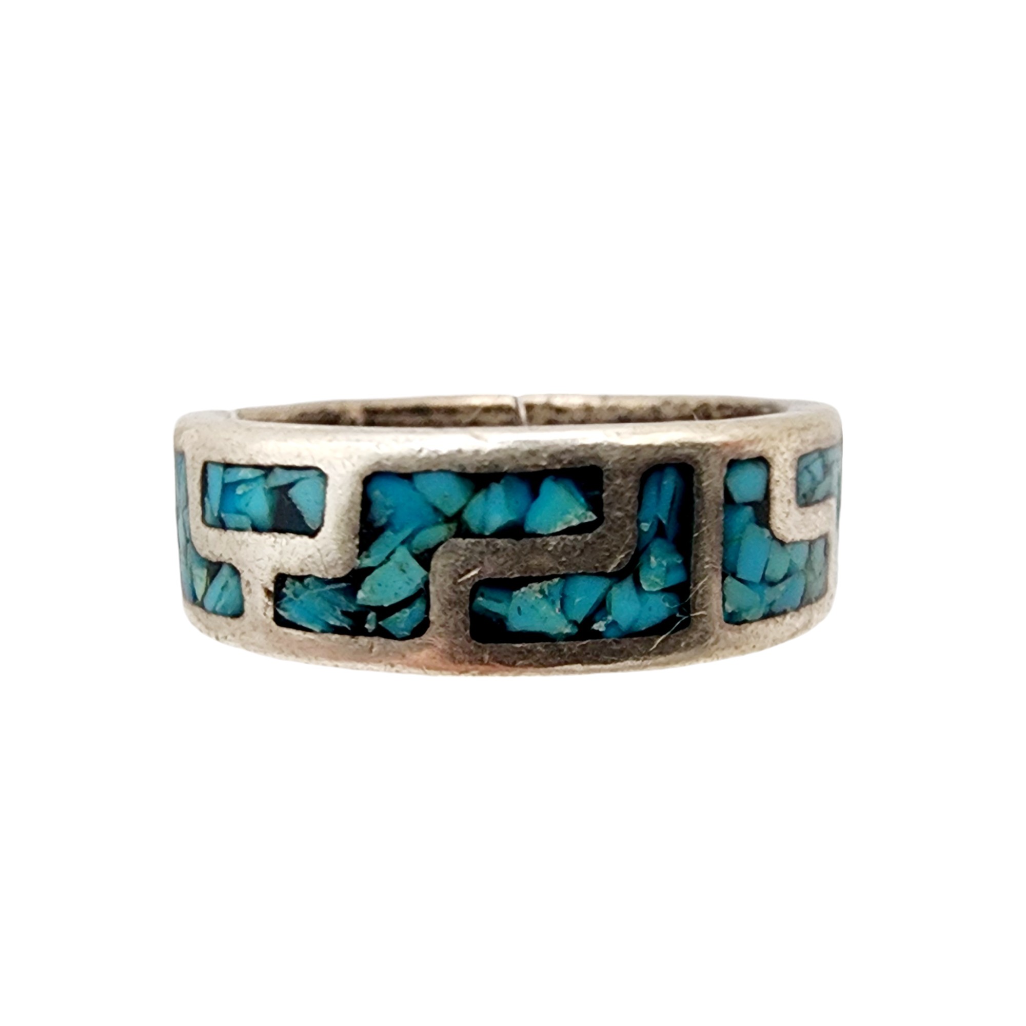 Vintage Sterling Southwest Crushed Turquoise Ring Sz 7.5 6g