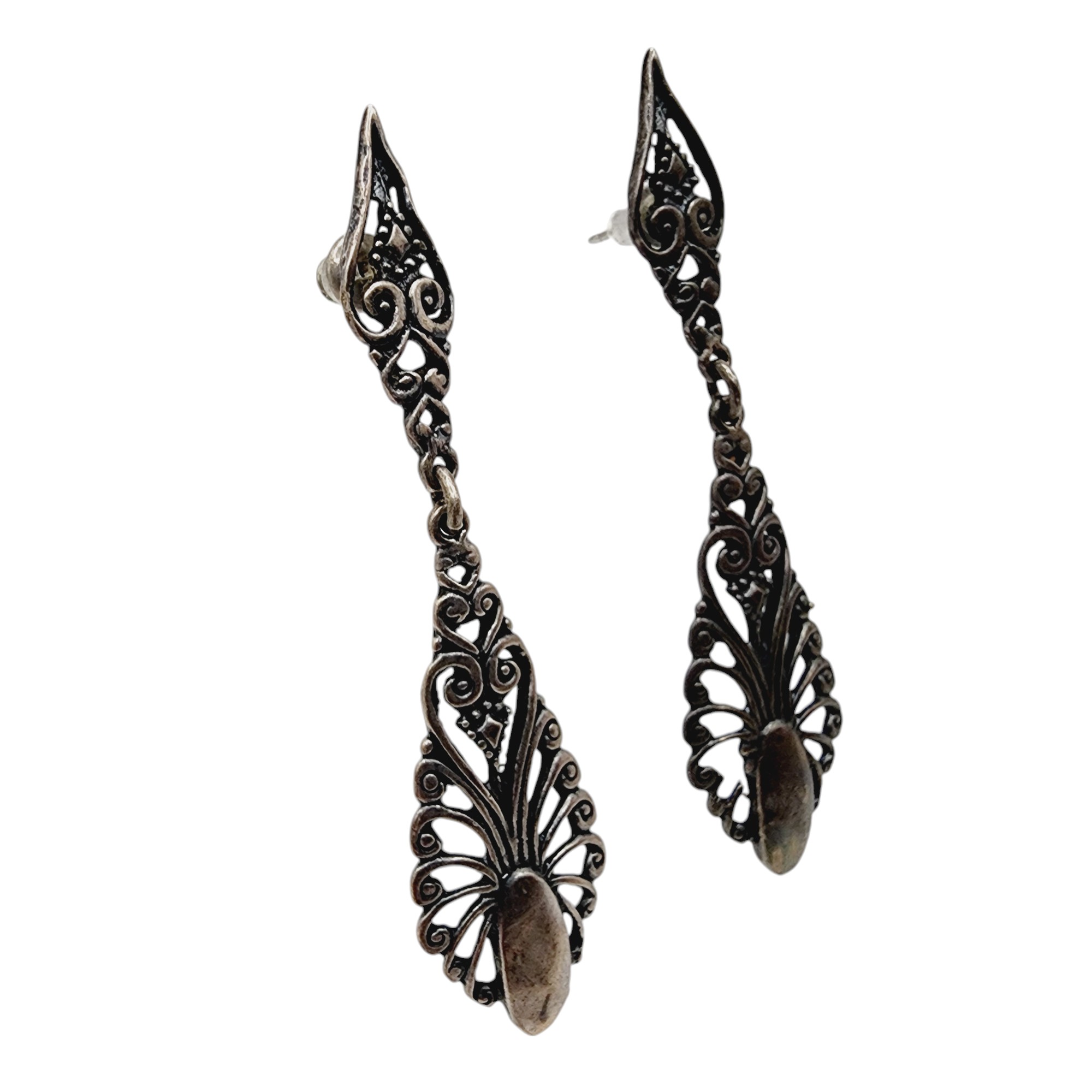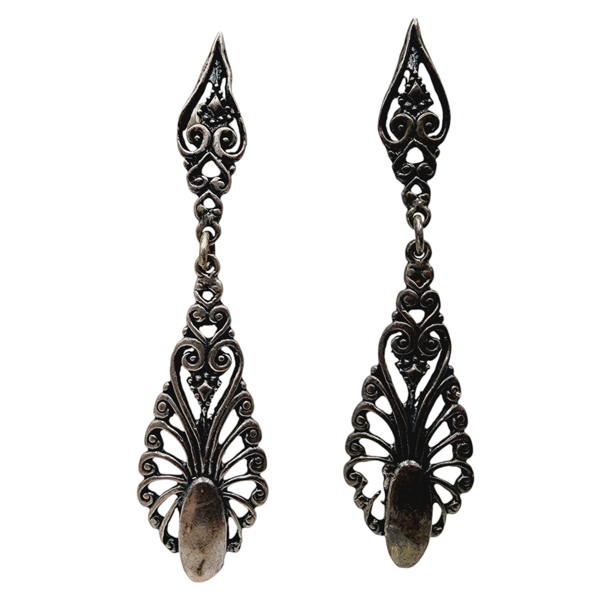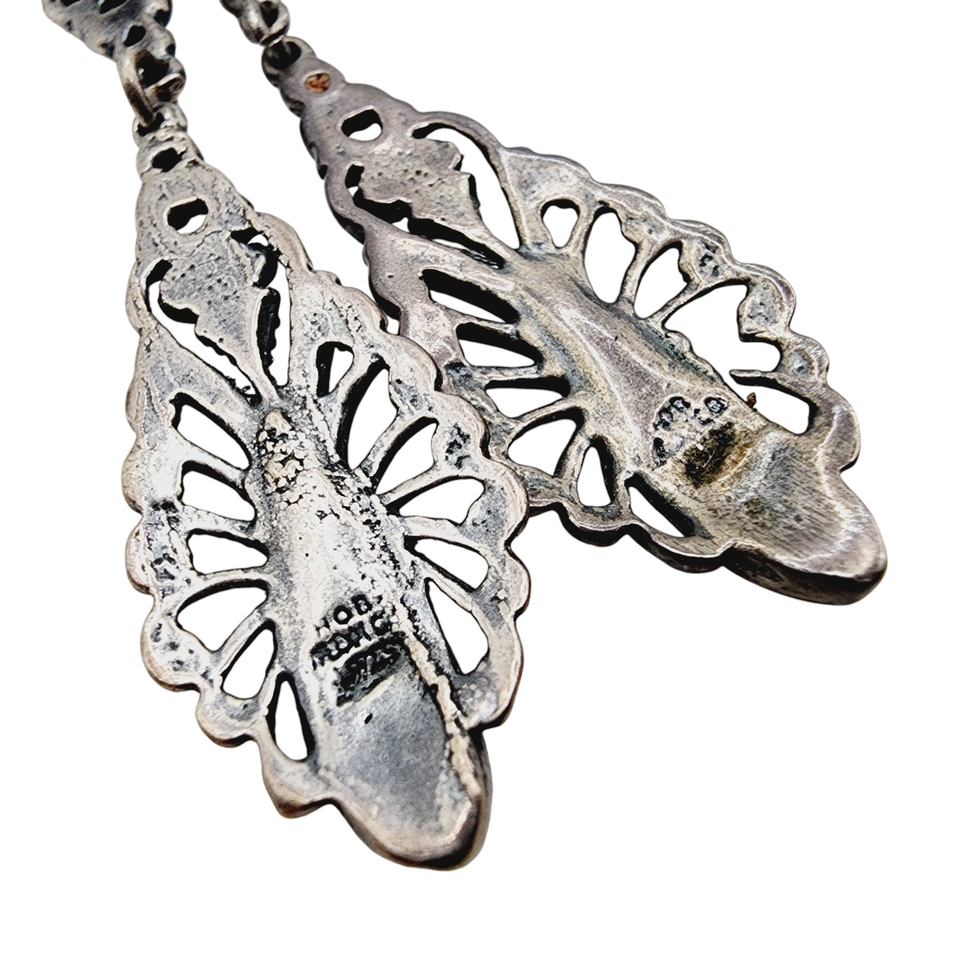 Signed ‘HOB’ Mexico Vintage Sterling Ornate Earrings 9.8g