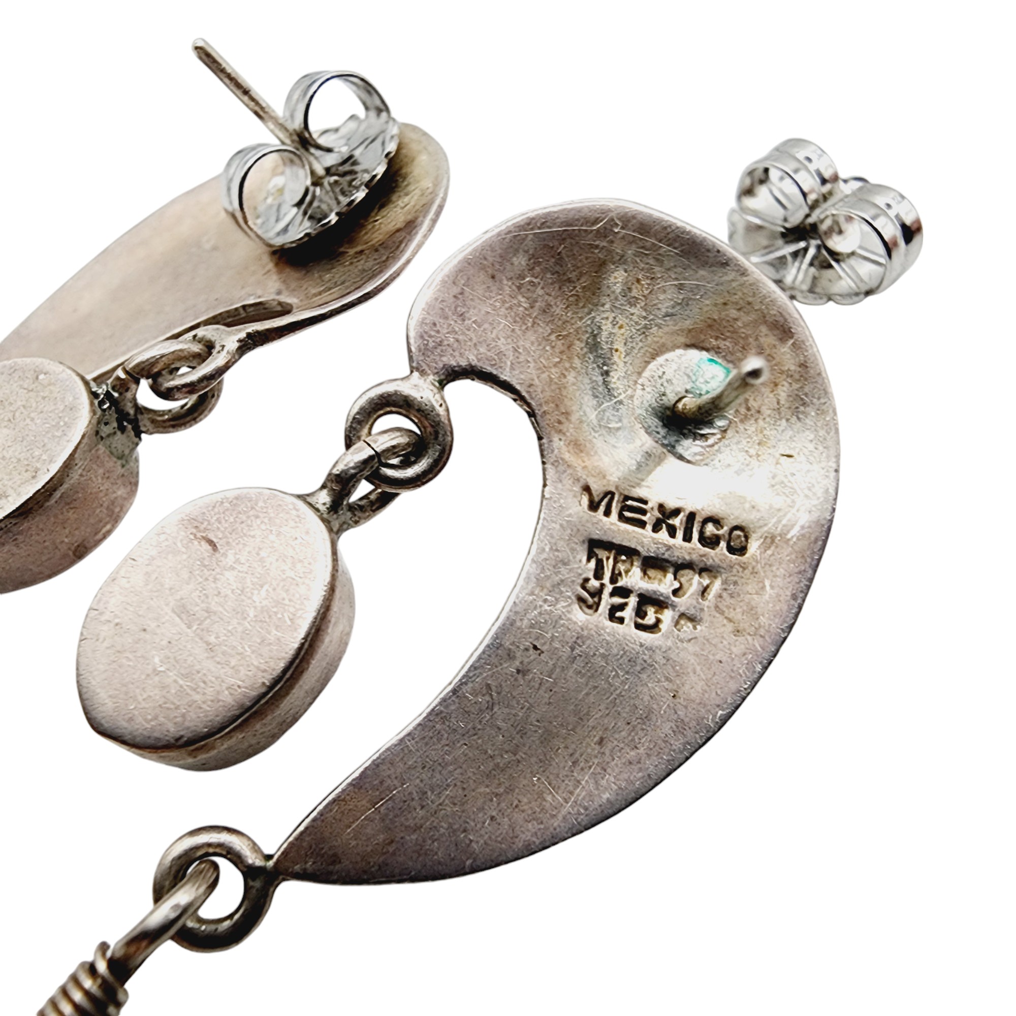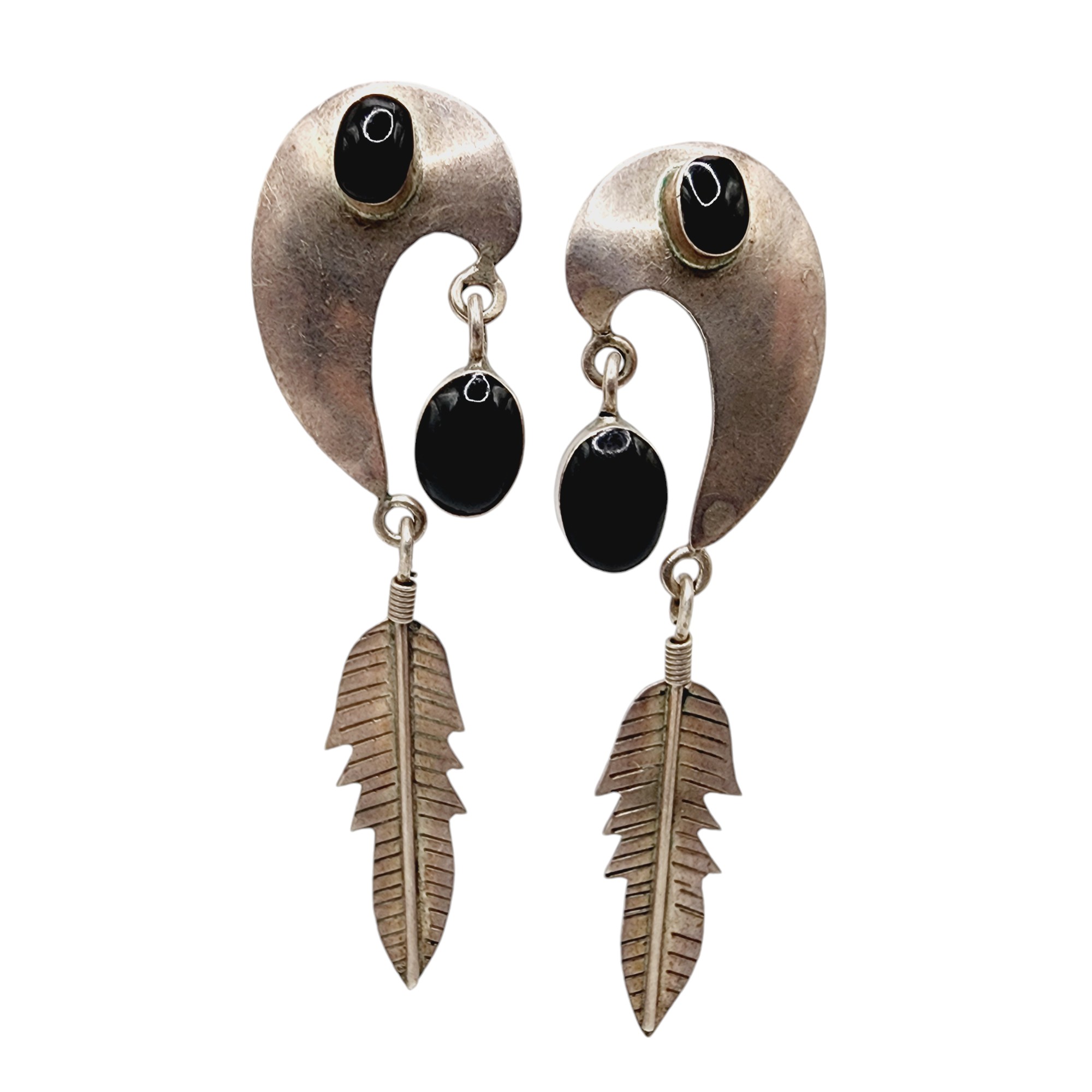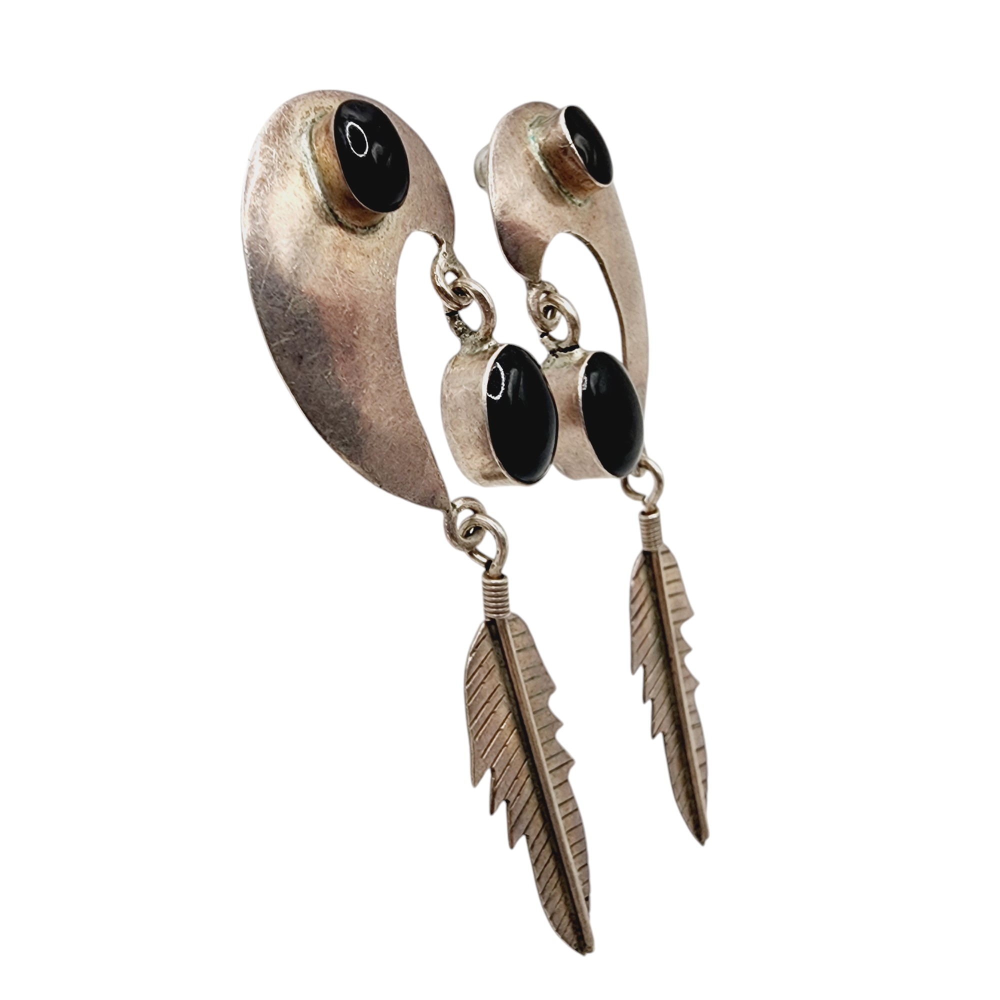 Taxco TD-97 Vintage Sterling Onyx Swoop Feather Earrings 14.5g