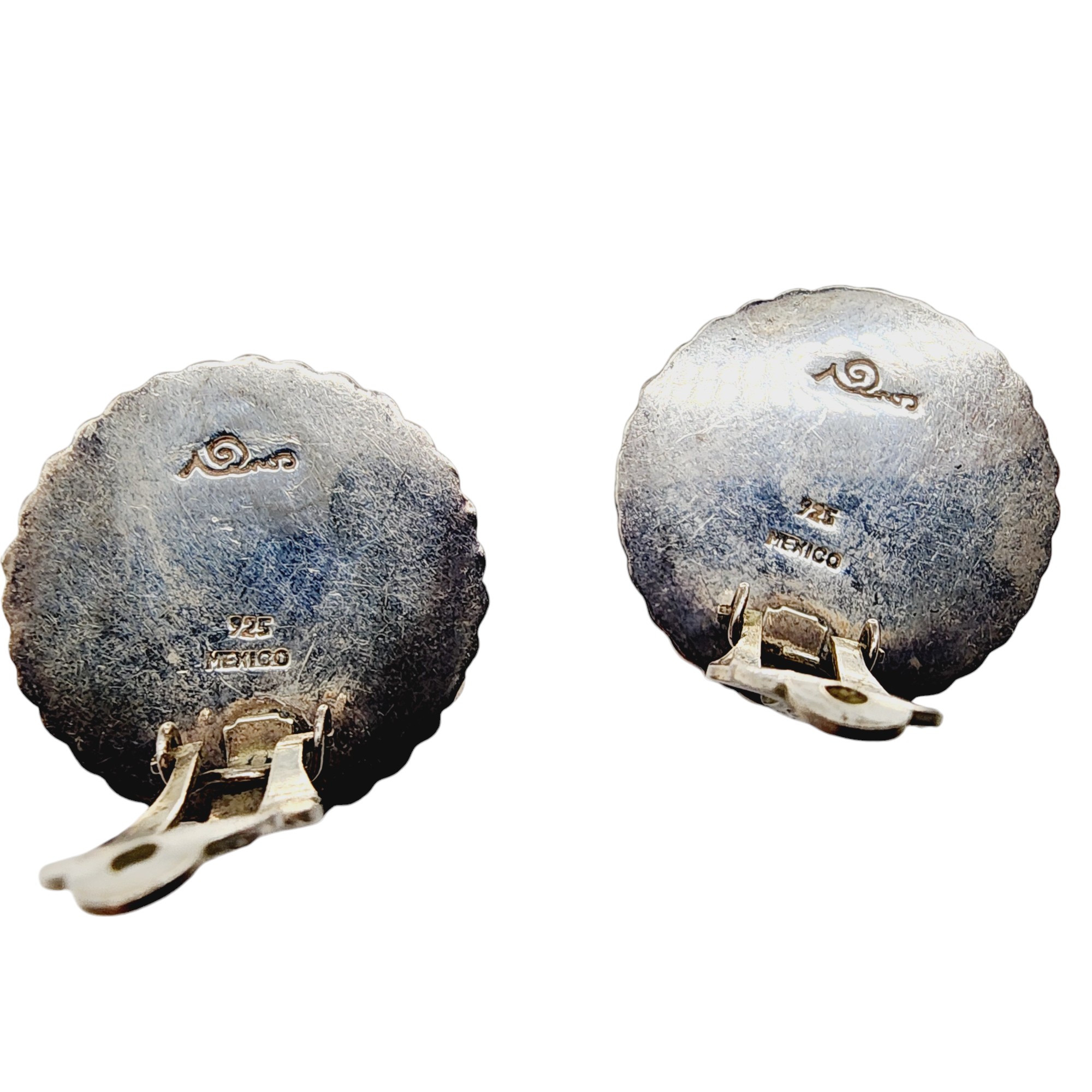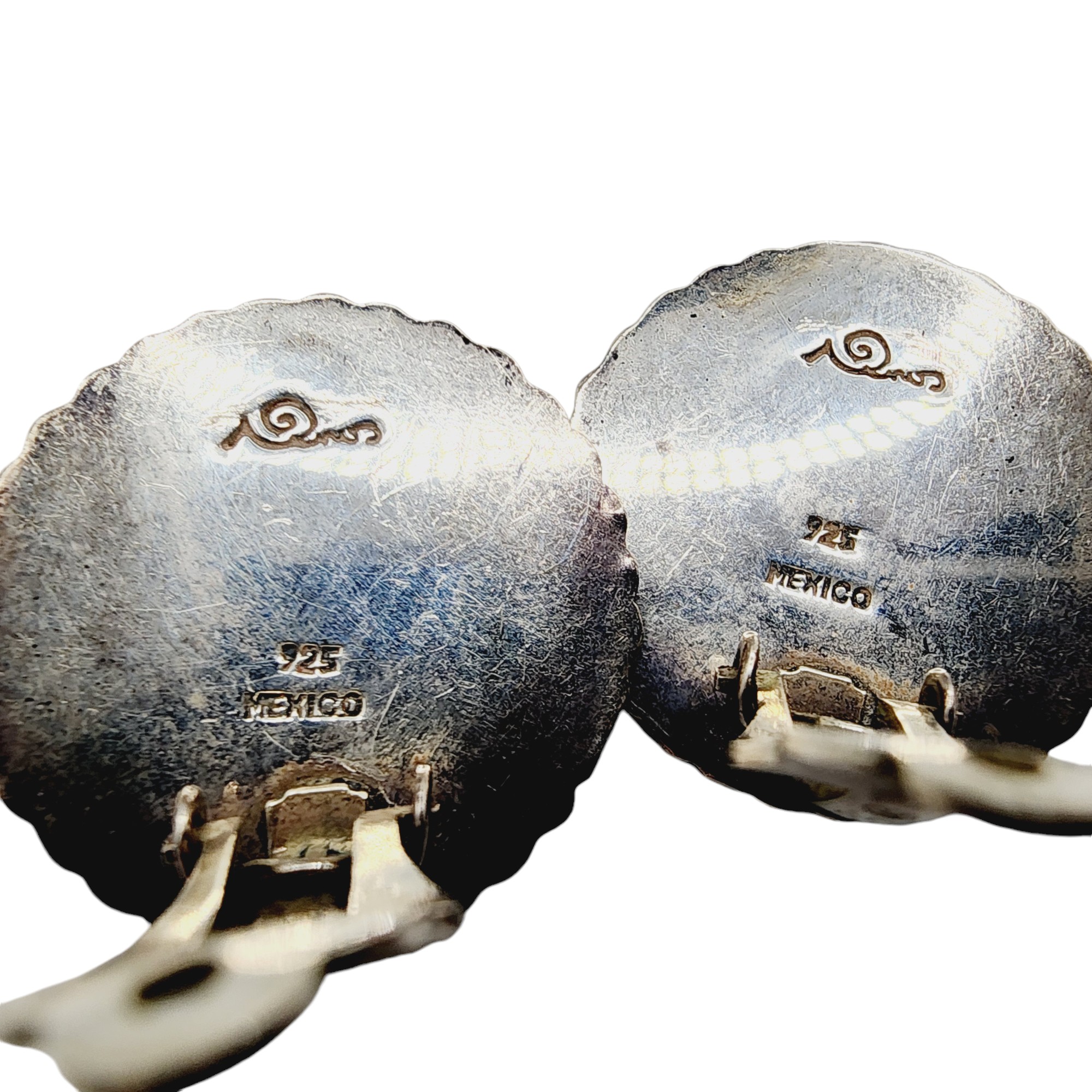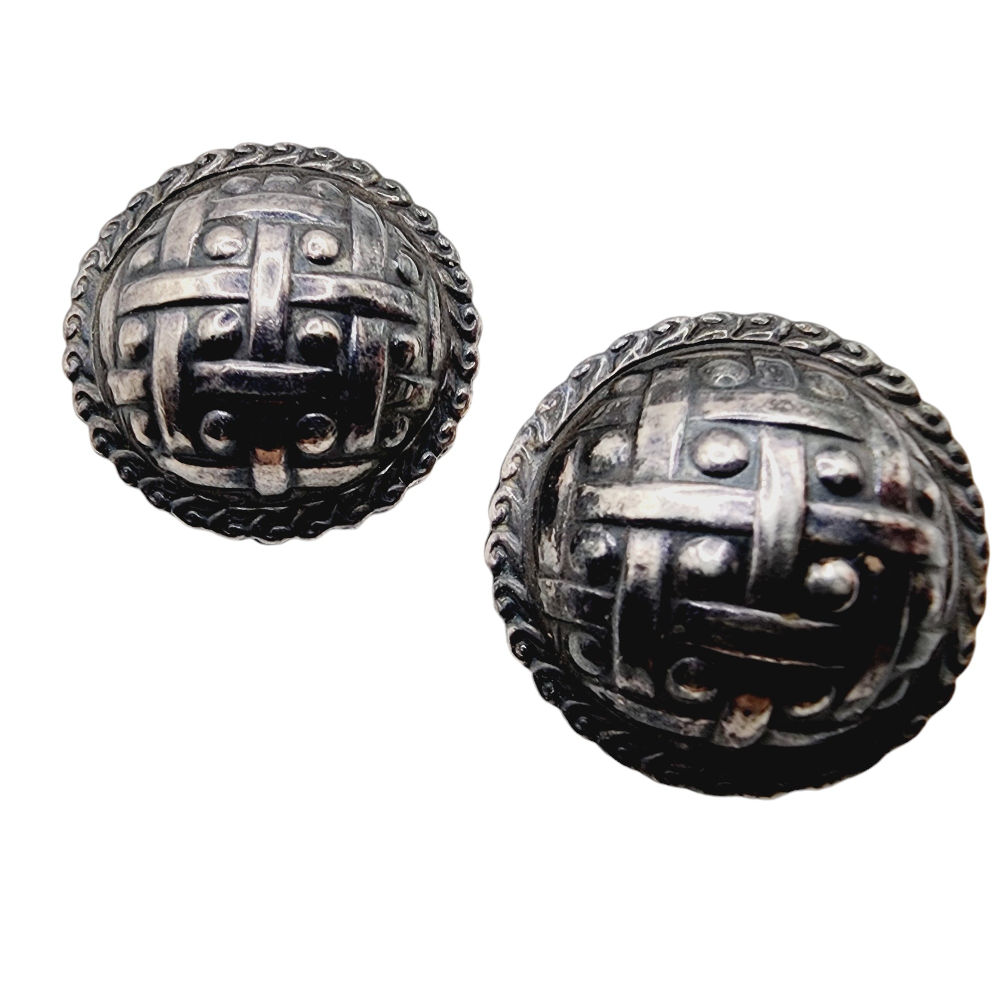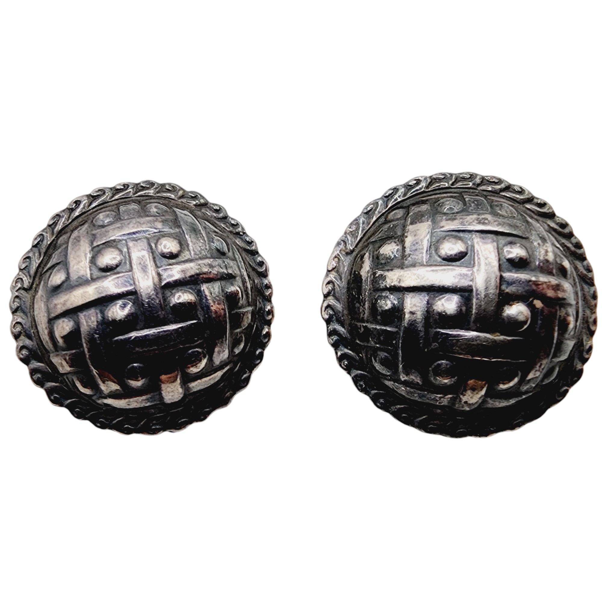Designer Signed Lattice Pie Vintage Sterling Earrings