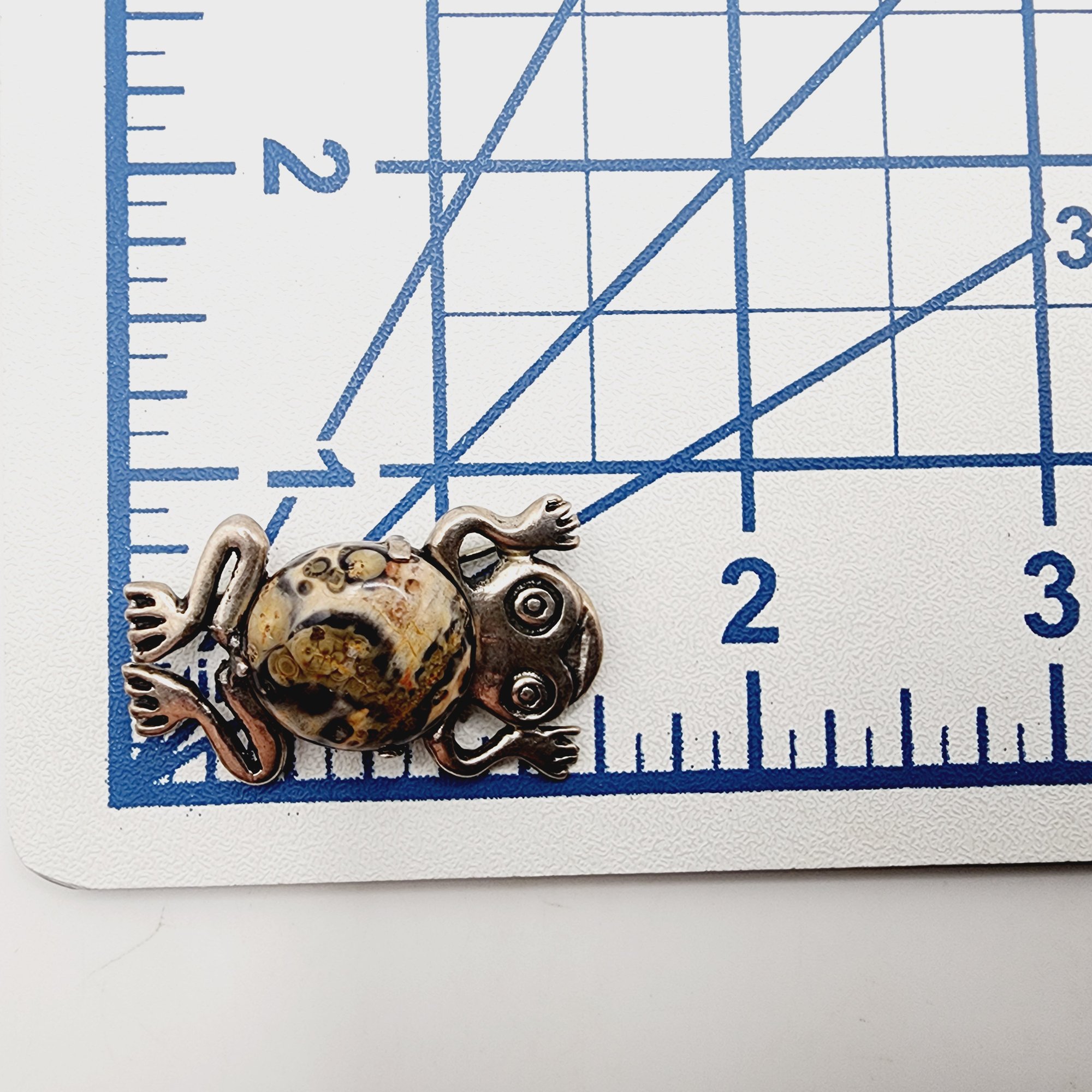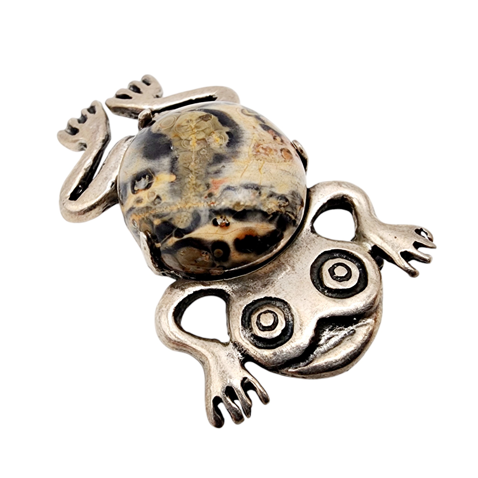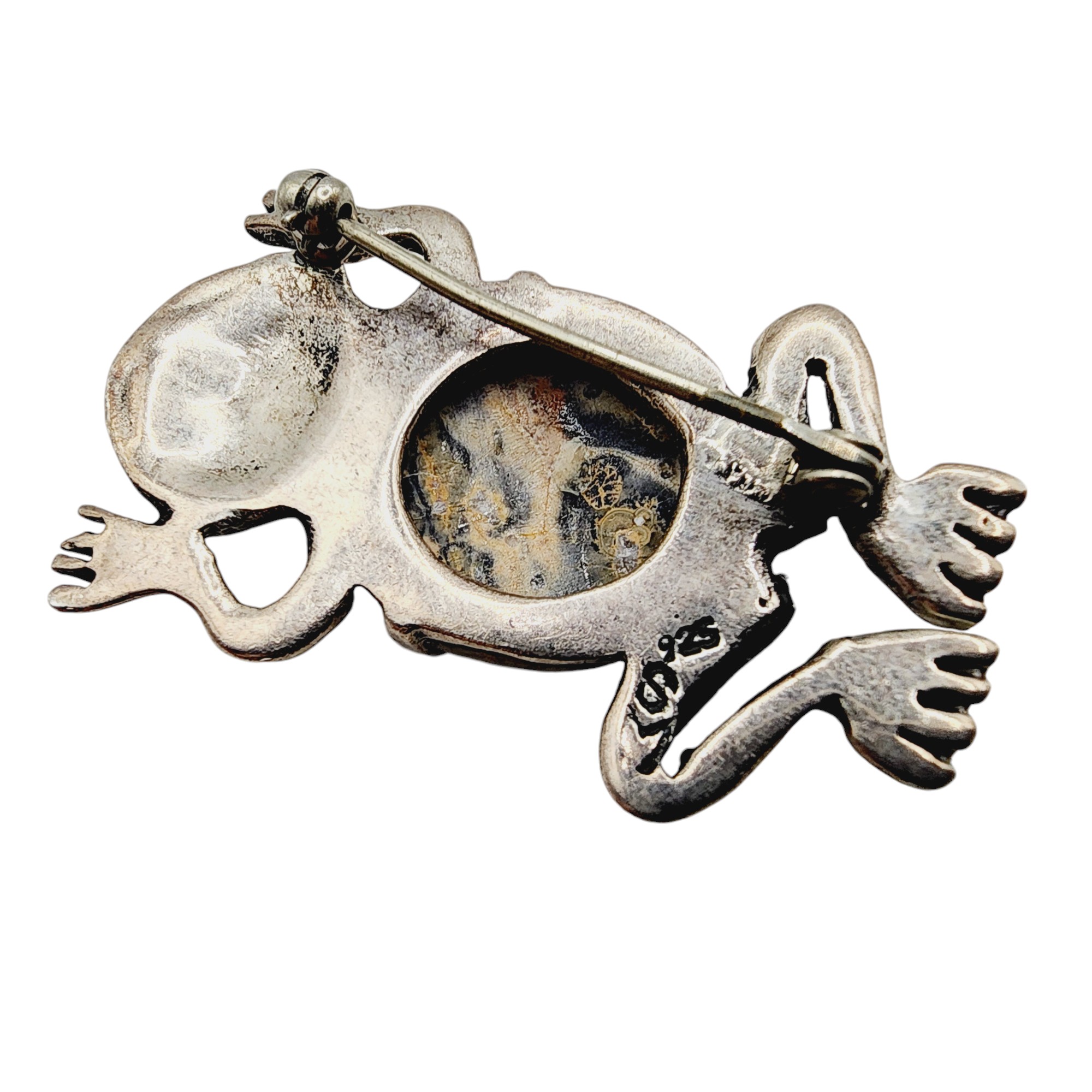 Signed Southwest Vintage Sterling Jasper Frog Brooch 10.4g