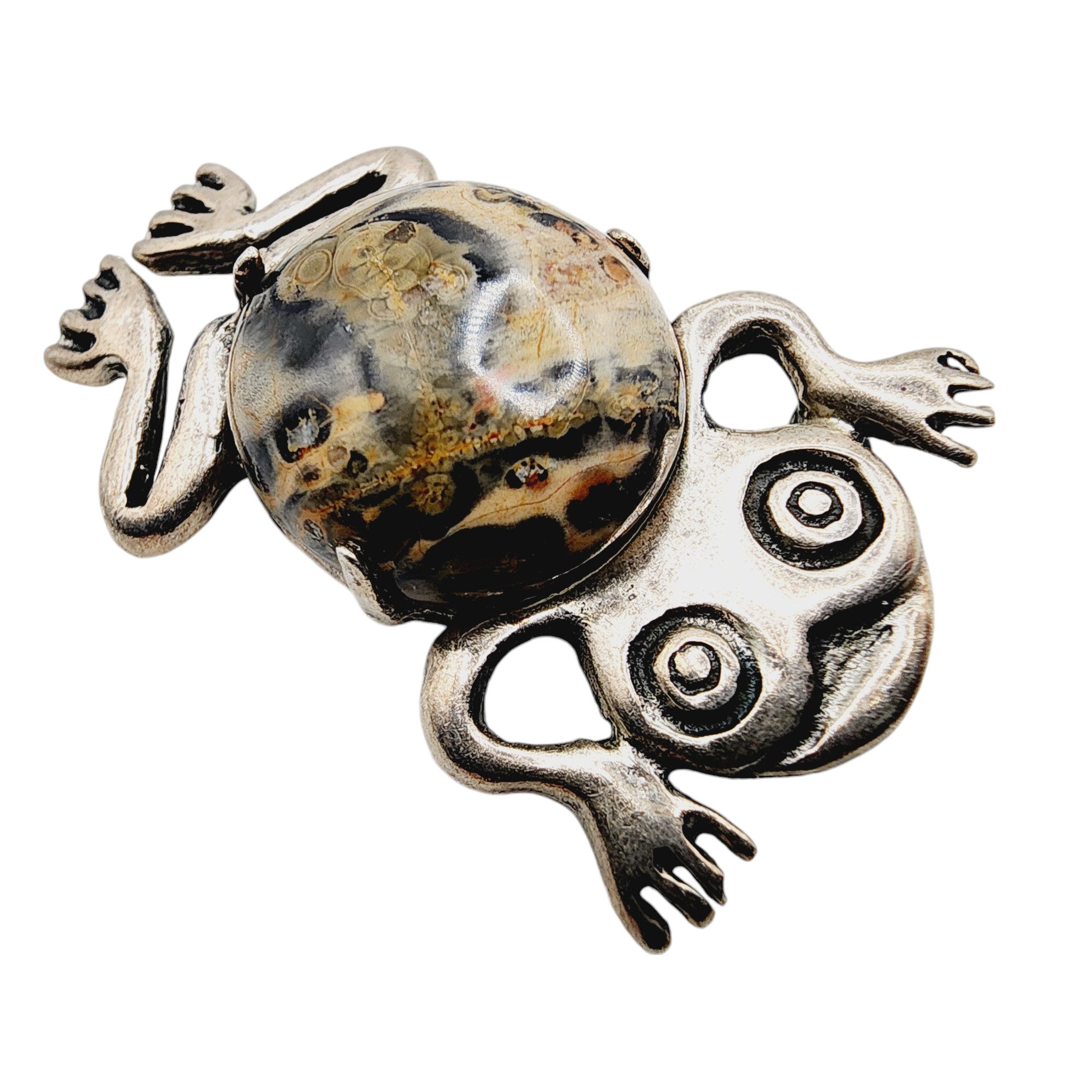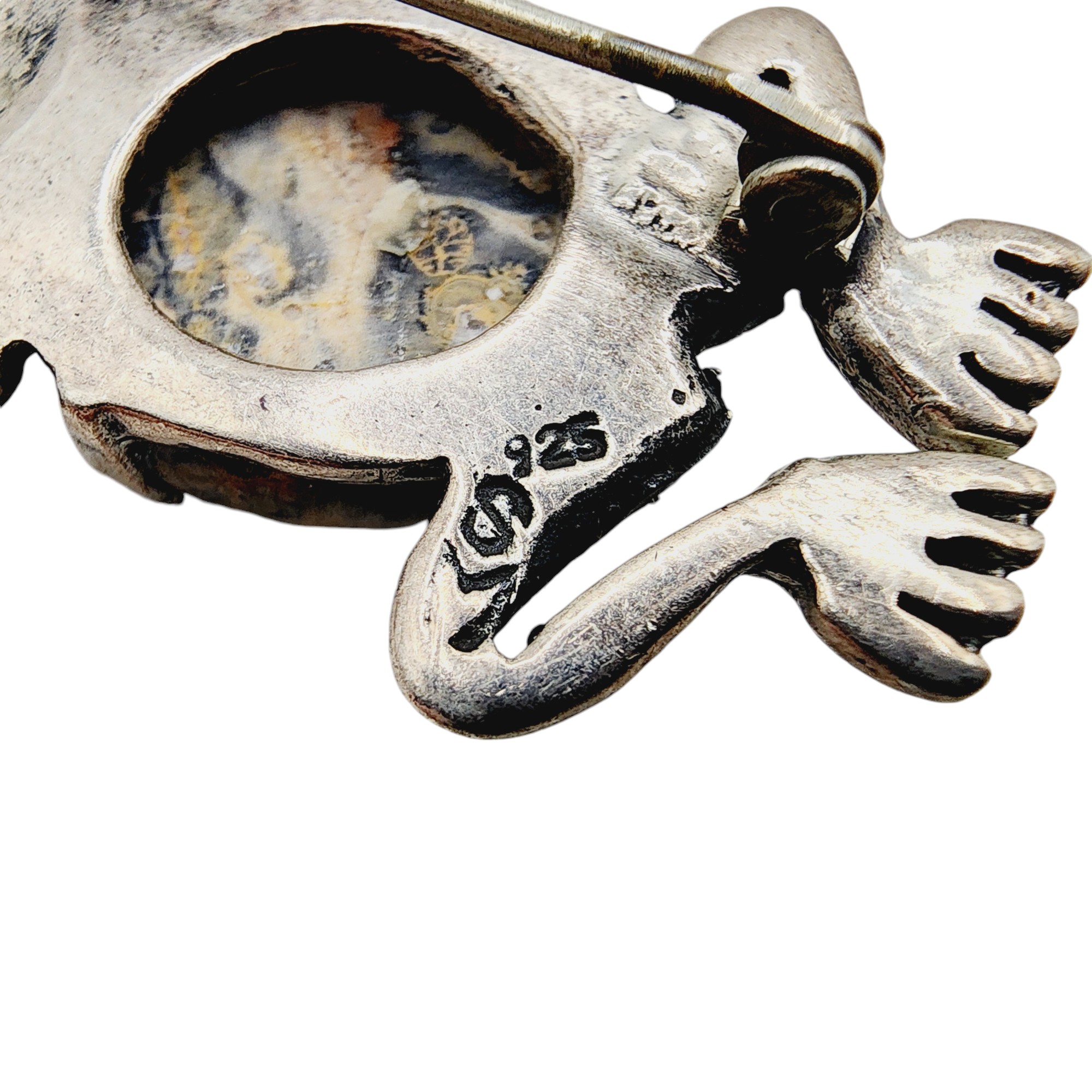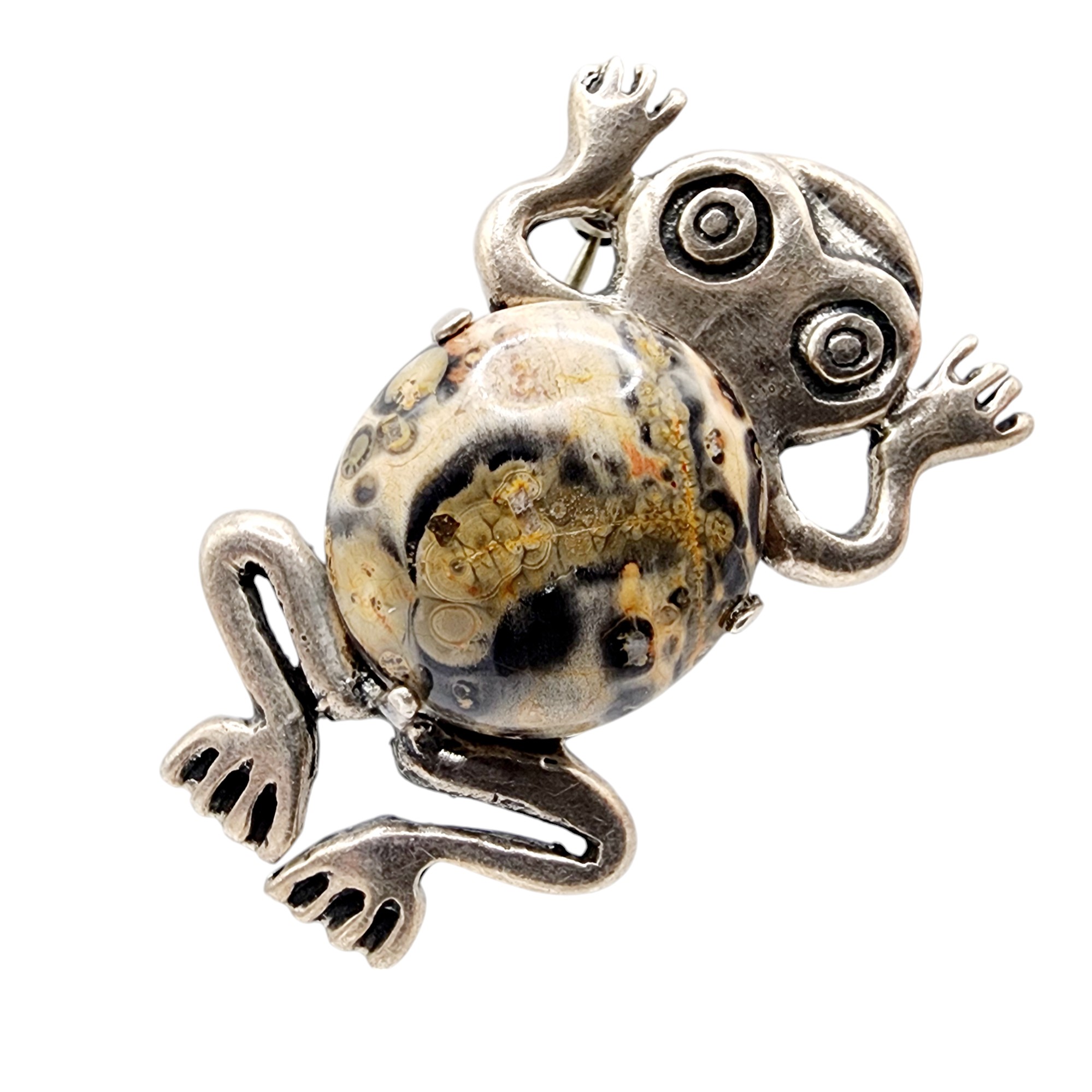 Signed Southwest Vintage Sterling Jasper Frog Brooch 10.4g