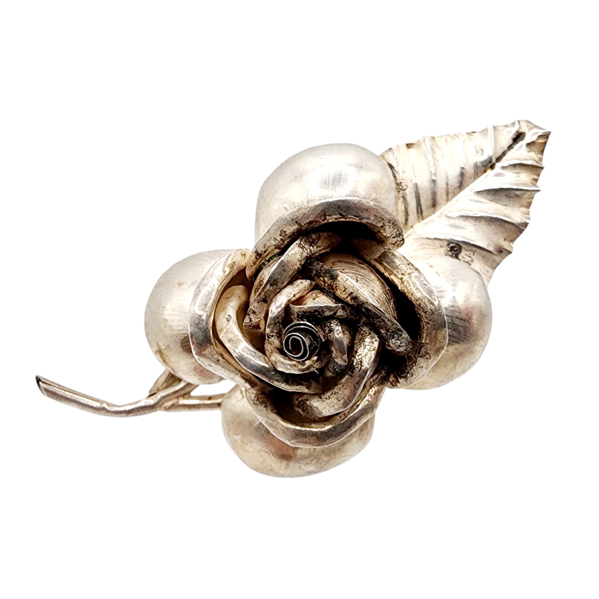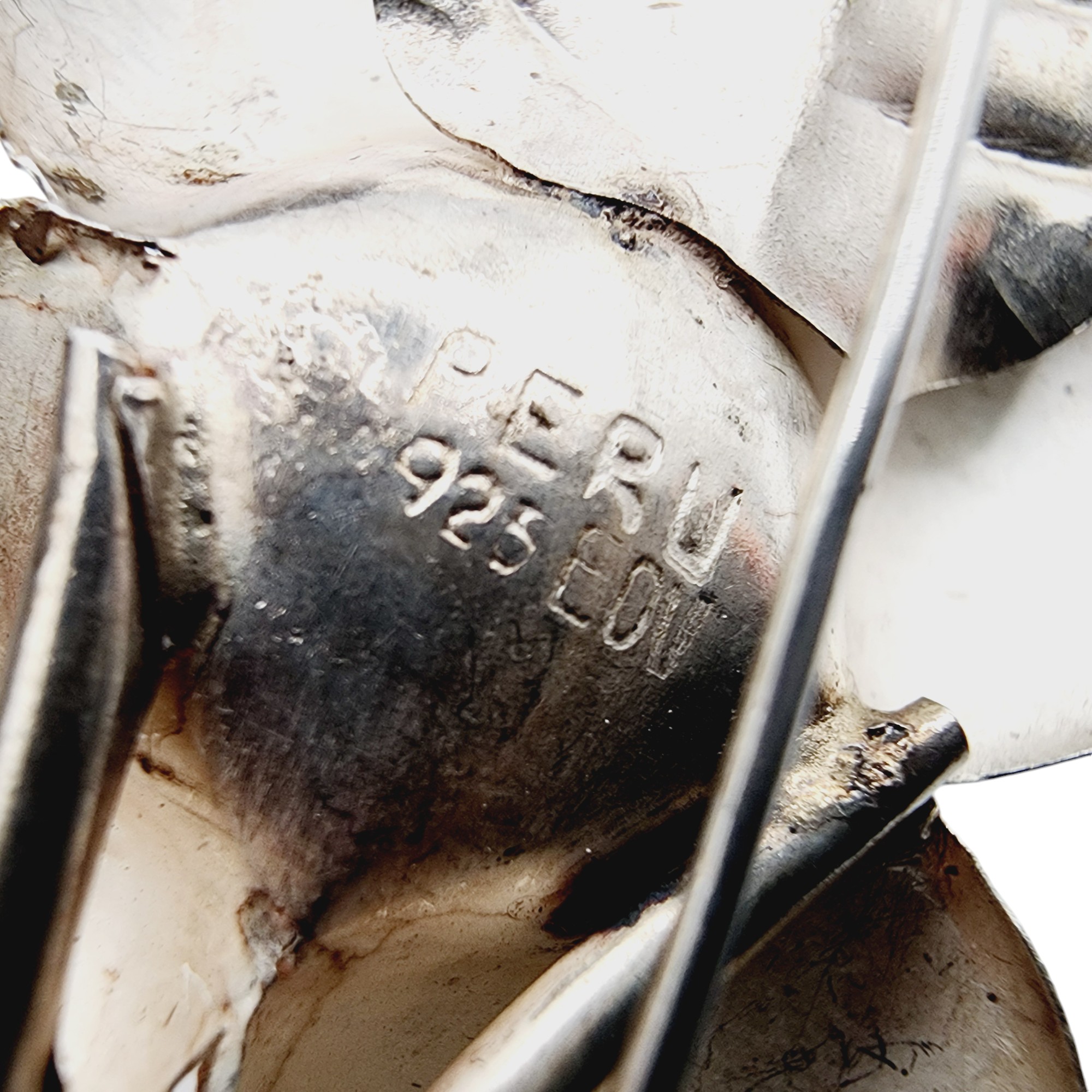 Vintage Signed ‘EOV’ Peru Sterling Rose Brooch 12.5g