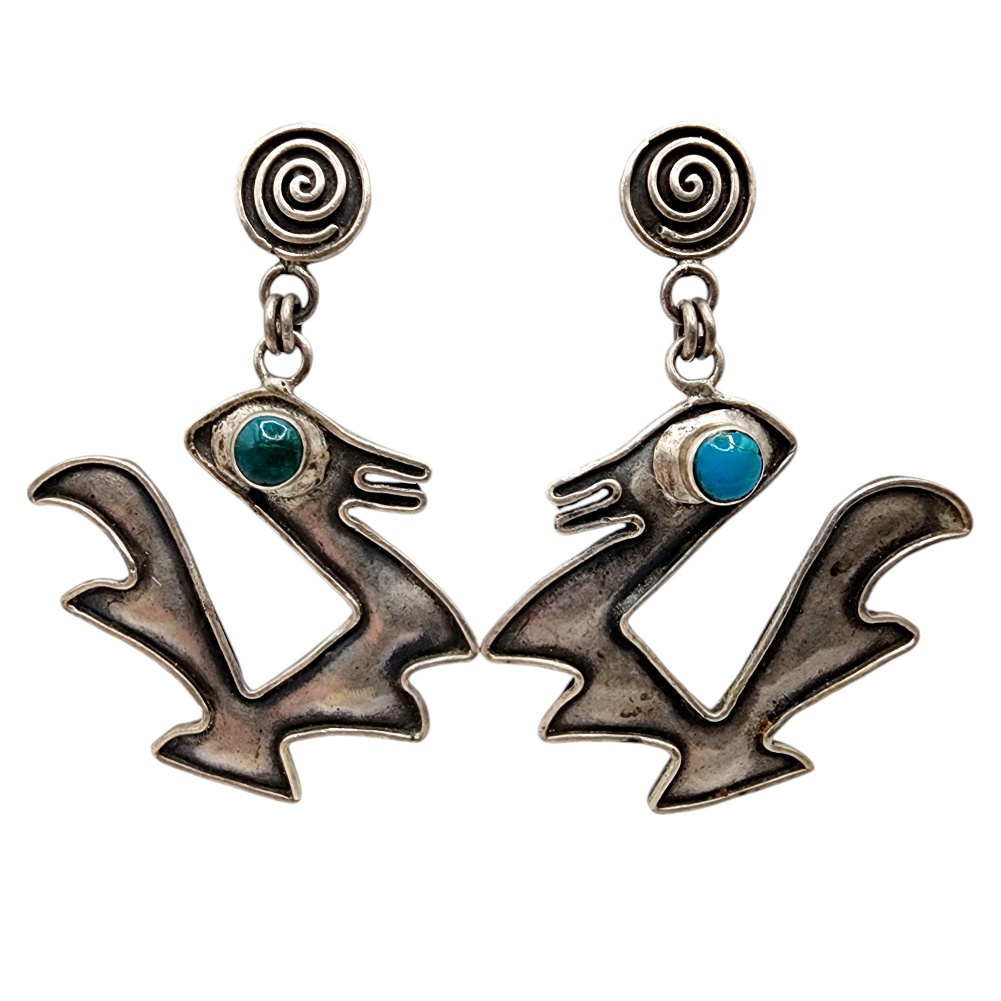 Vintage South American? Sterling Turquoise Bird Earrings 8g