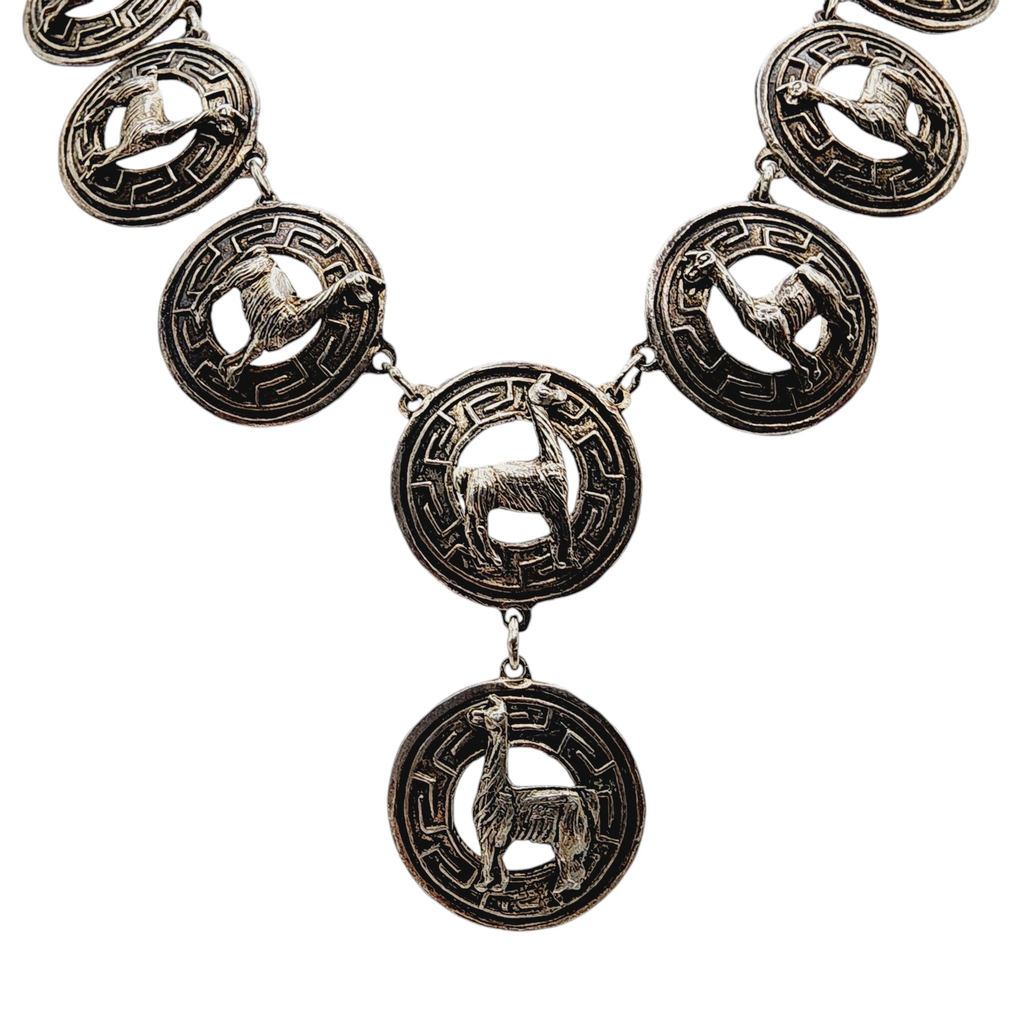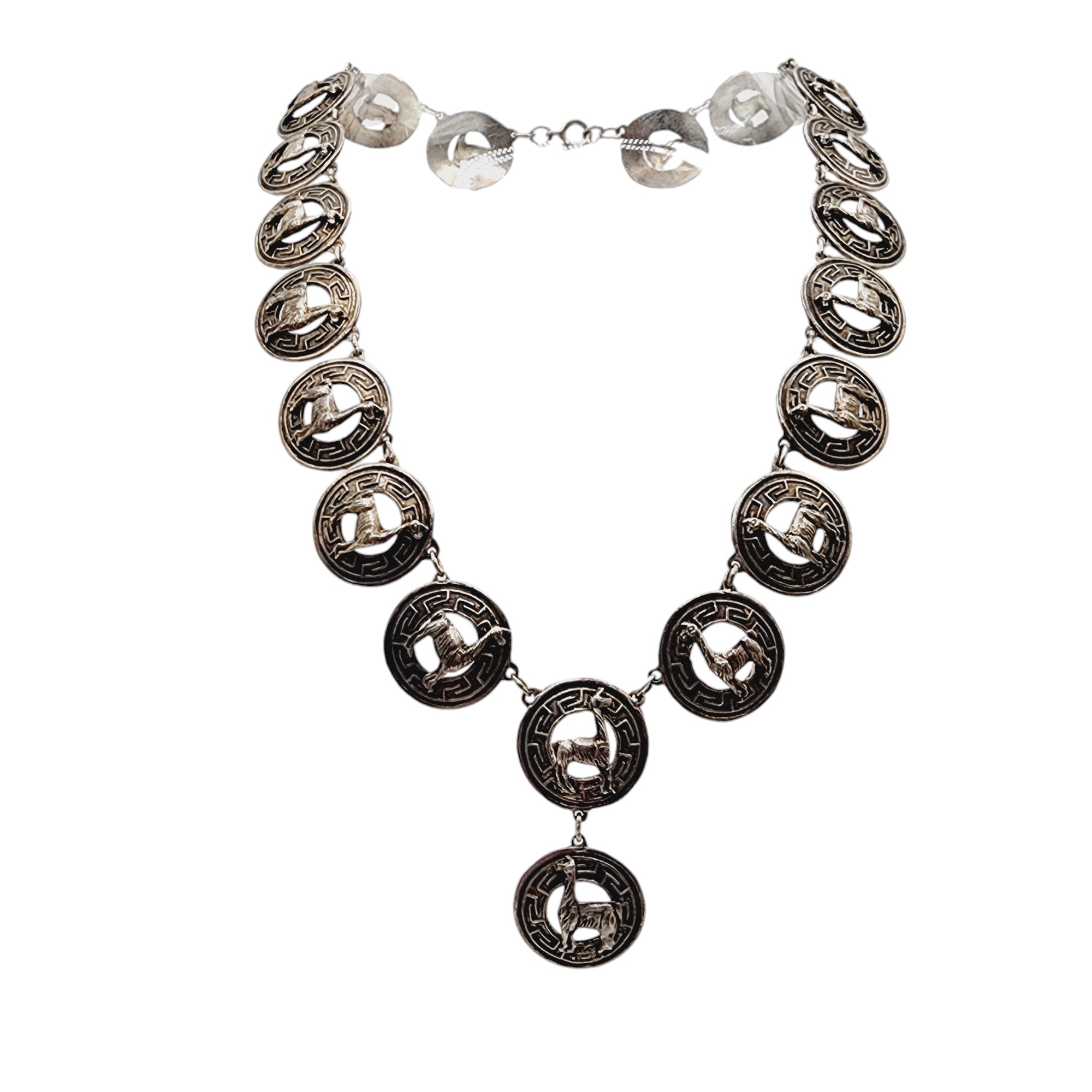Vintage Signed South American Llama Sterling Necklace 28.5g