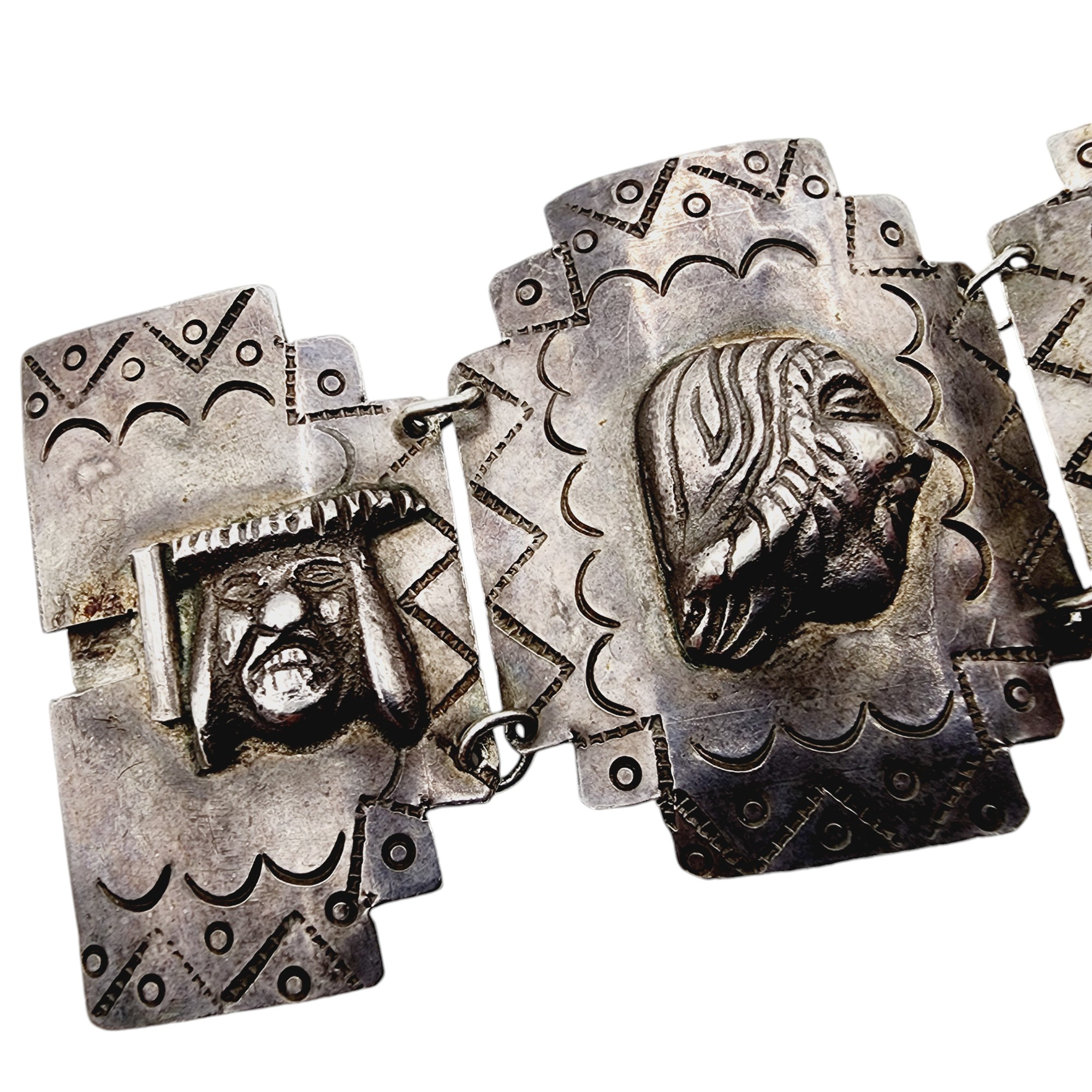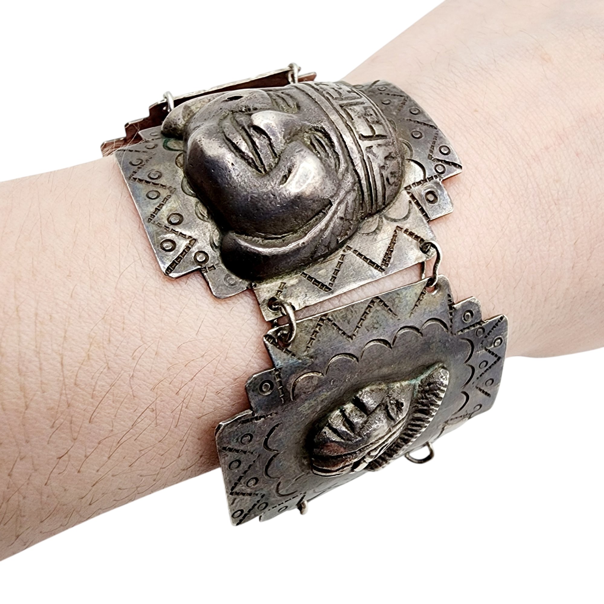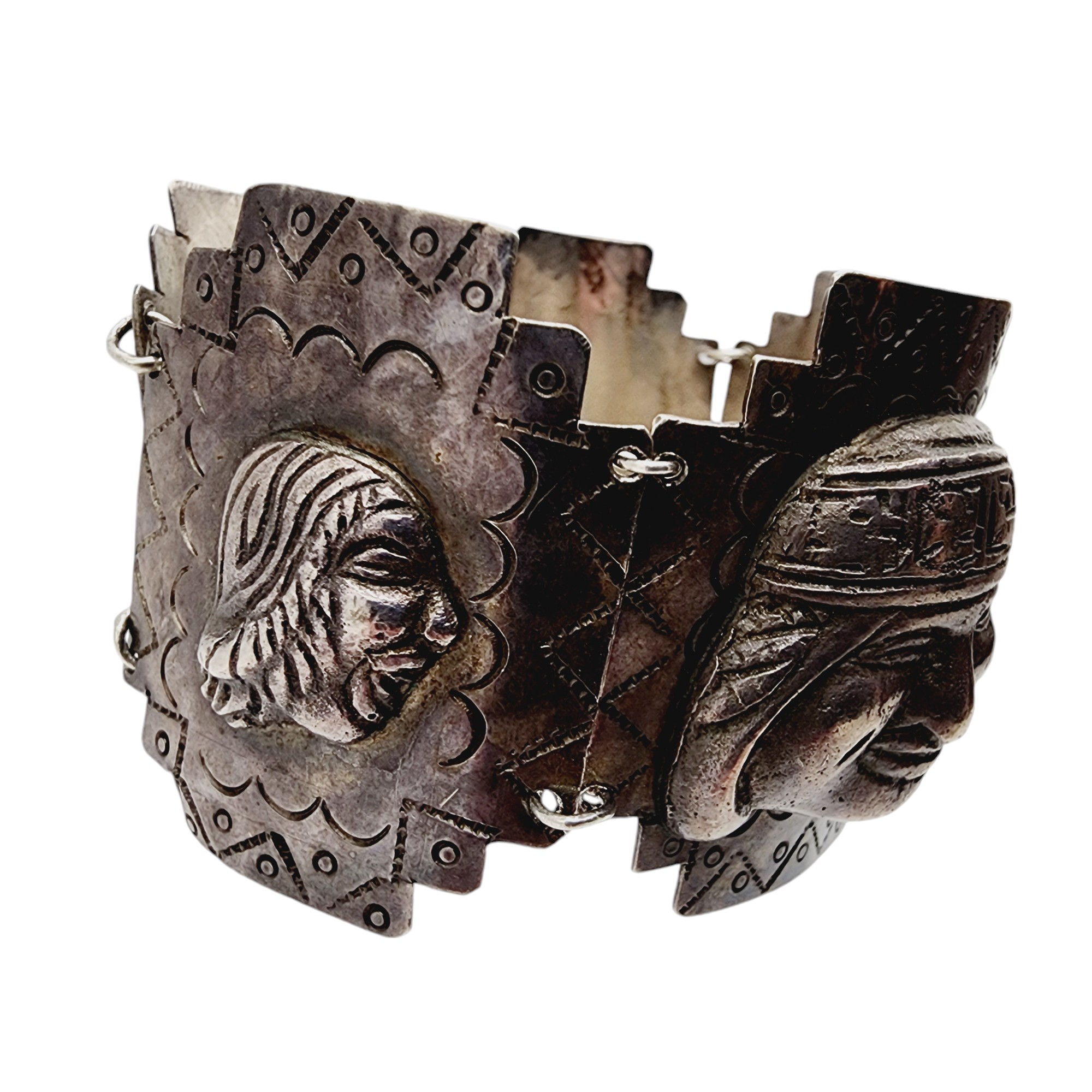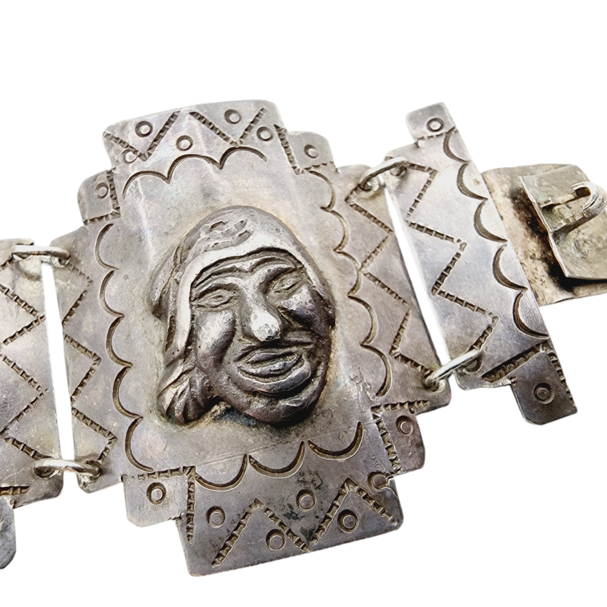 Amazing Signed 'JF' Peru Vintage Sterling Face Bracelet