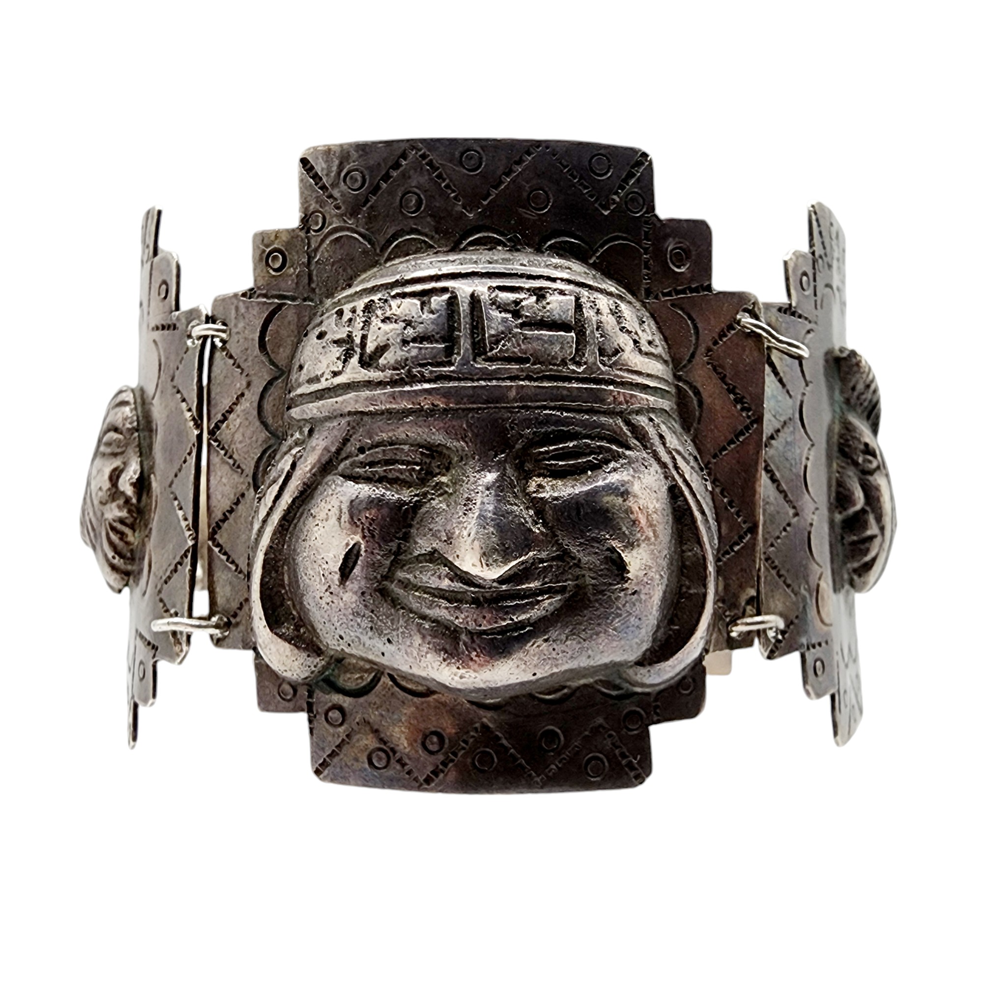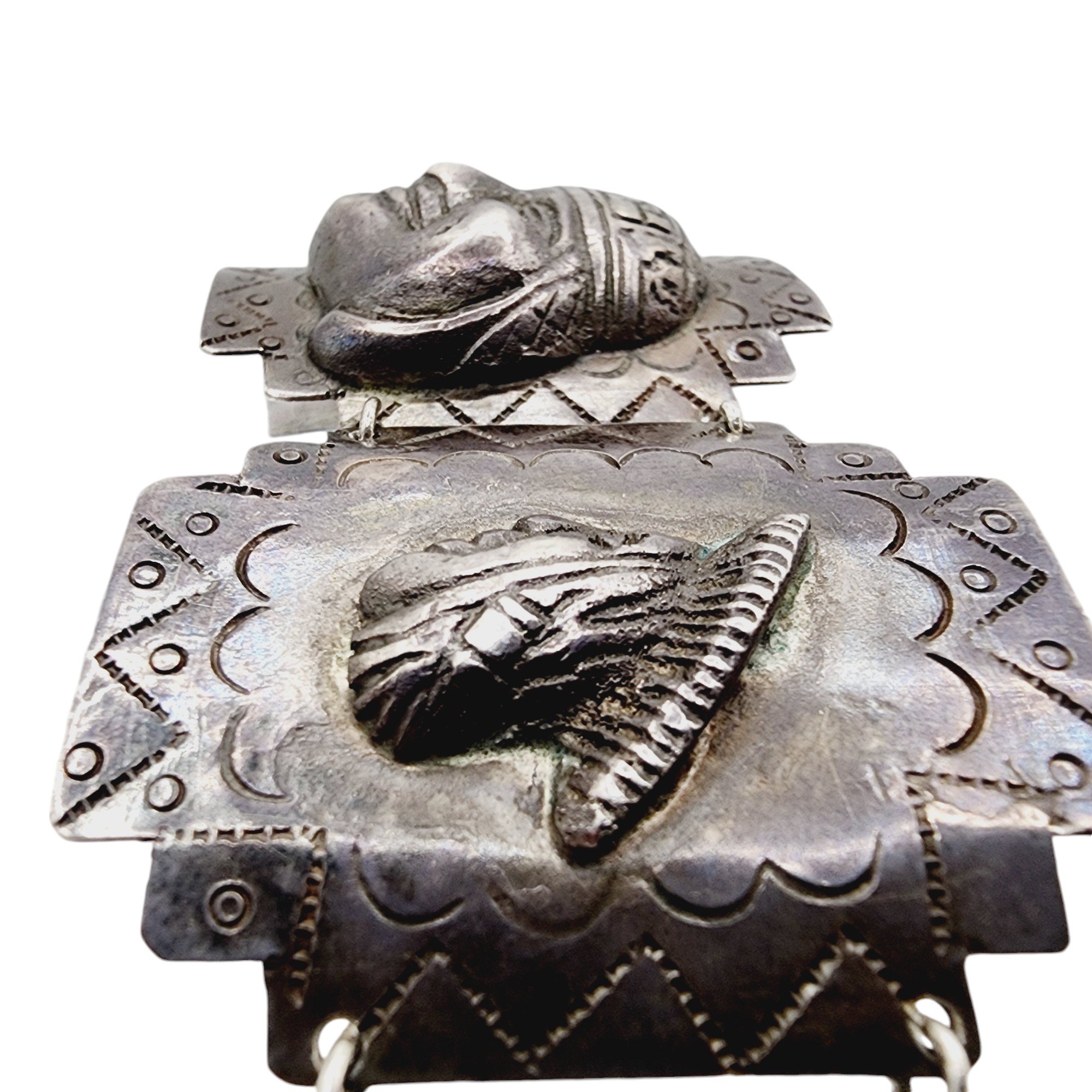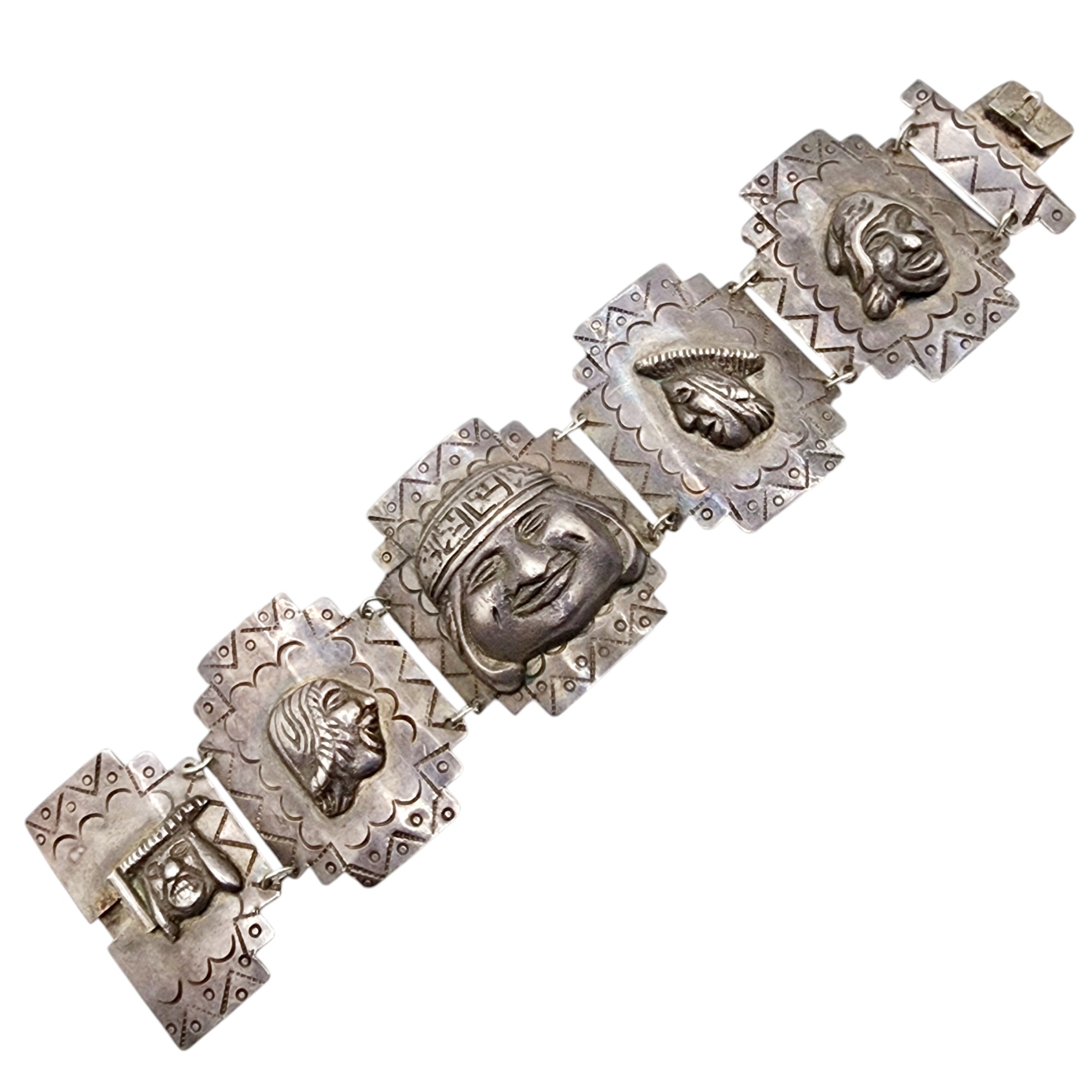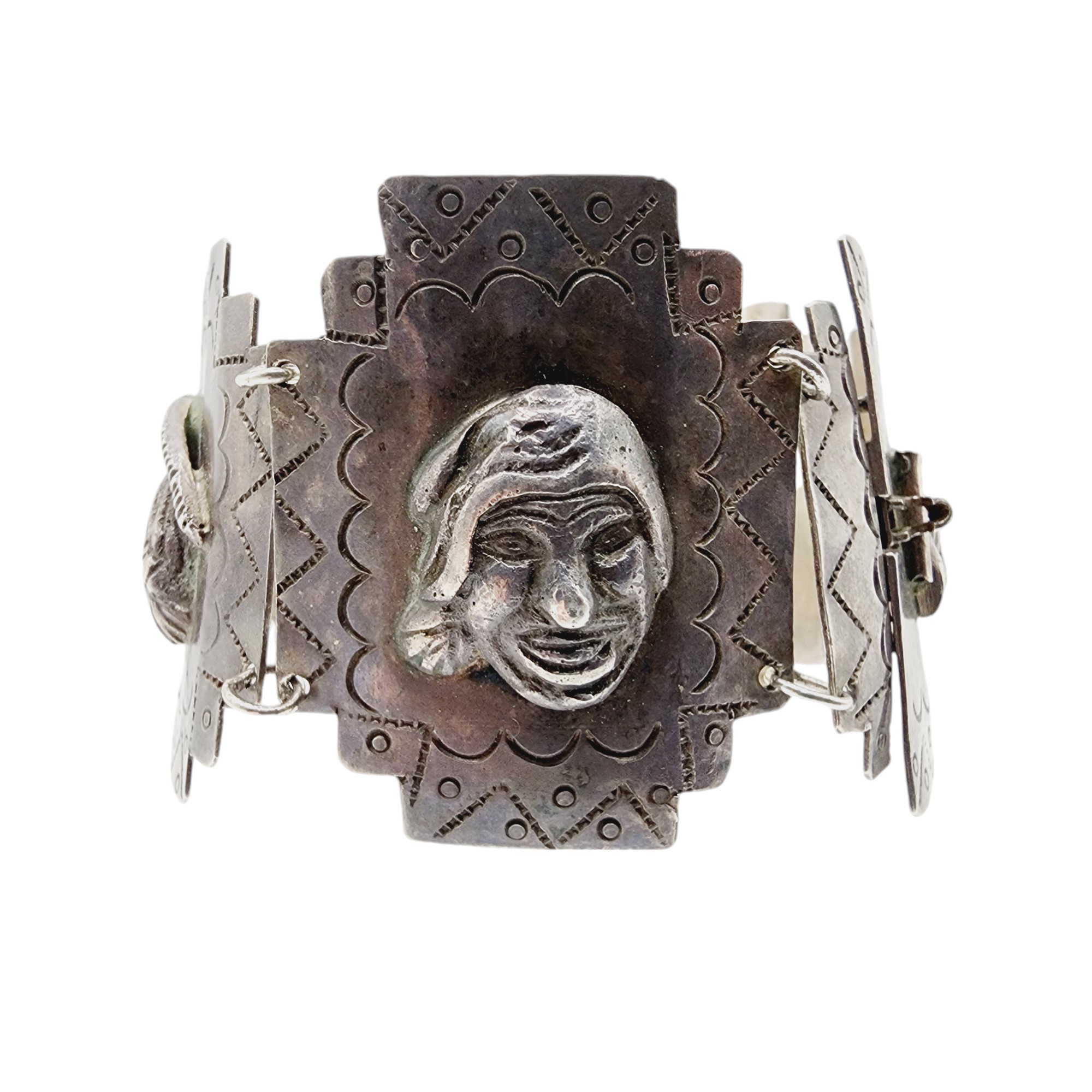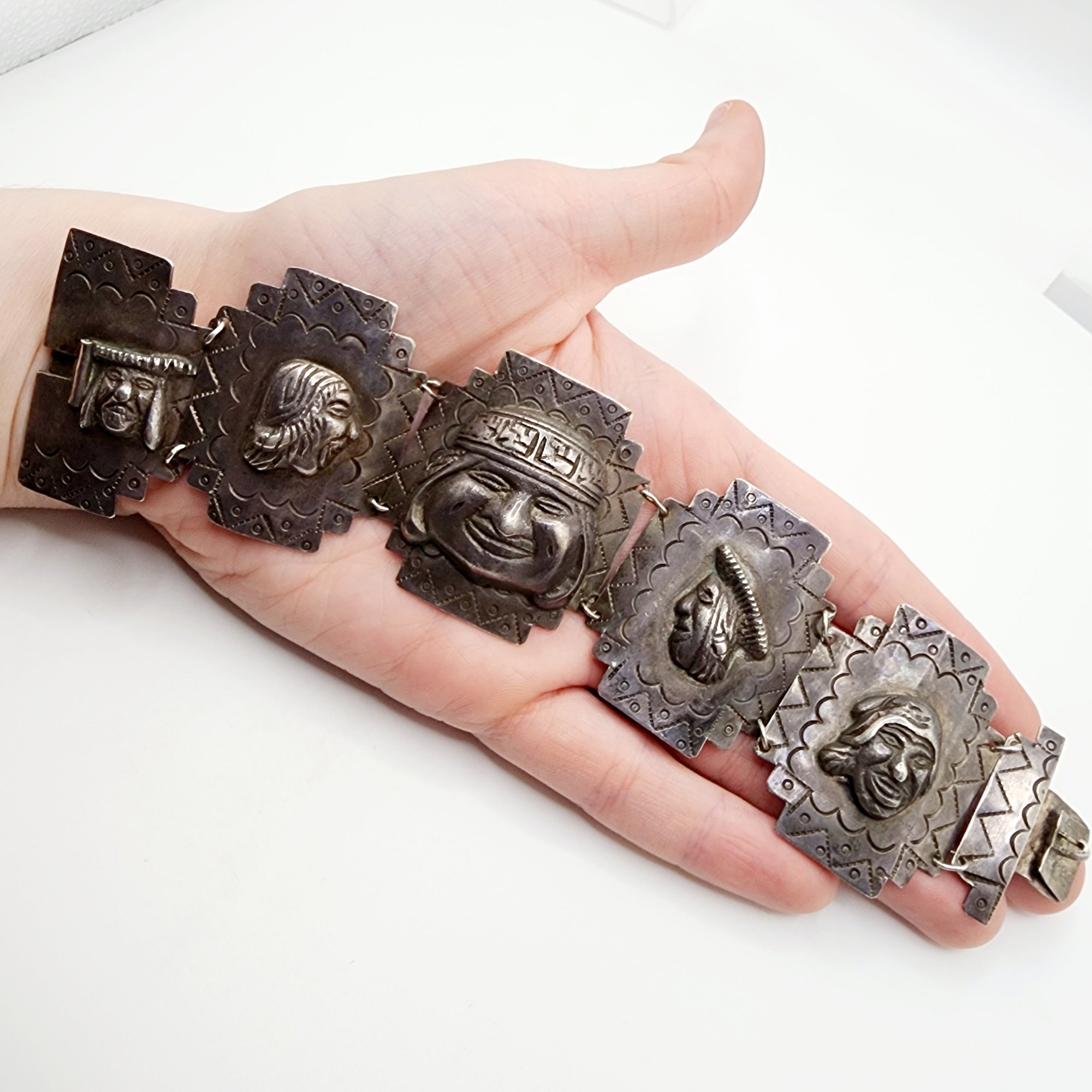 Amazing Signed 'JF' Peru Vintage Sterling Face Bracelet