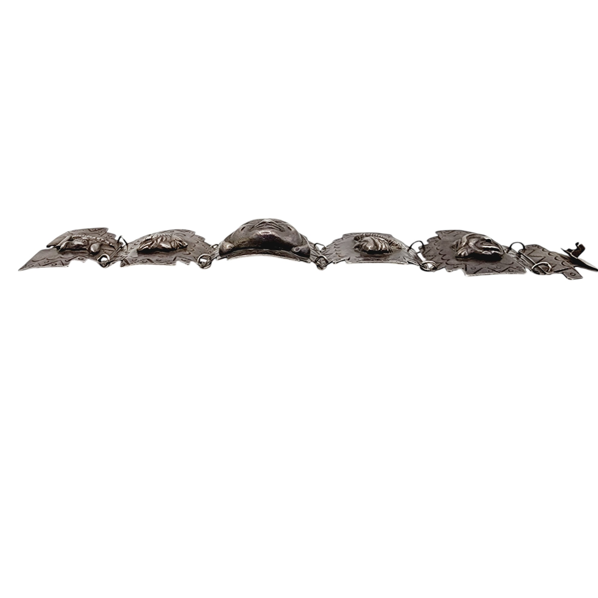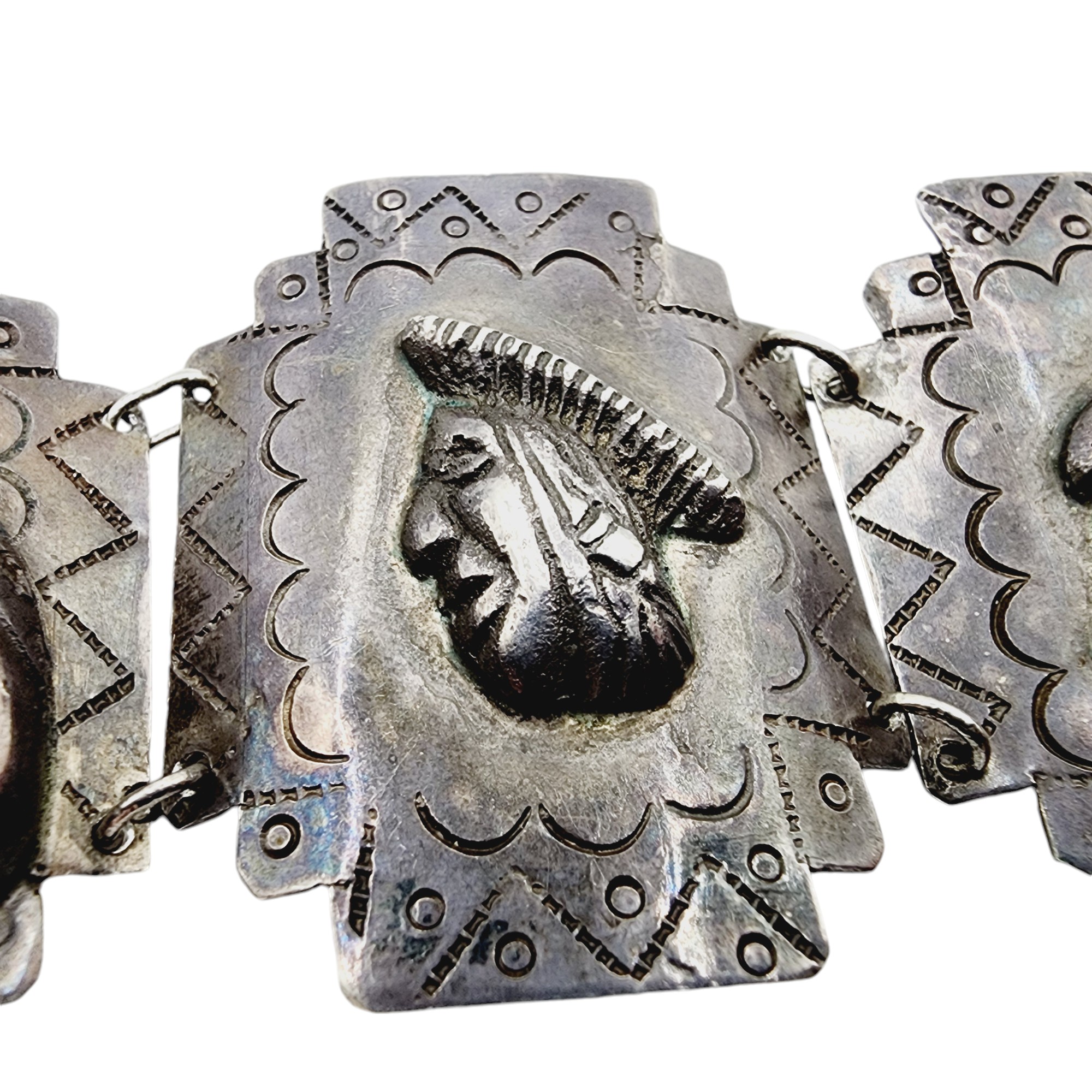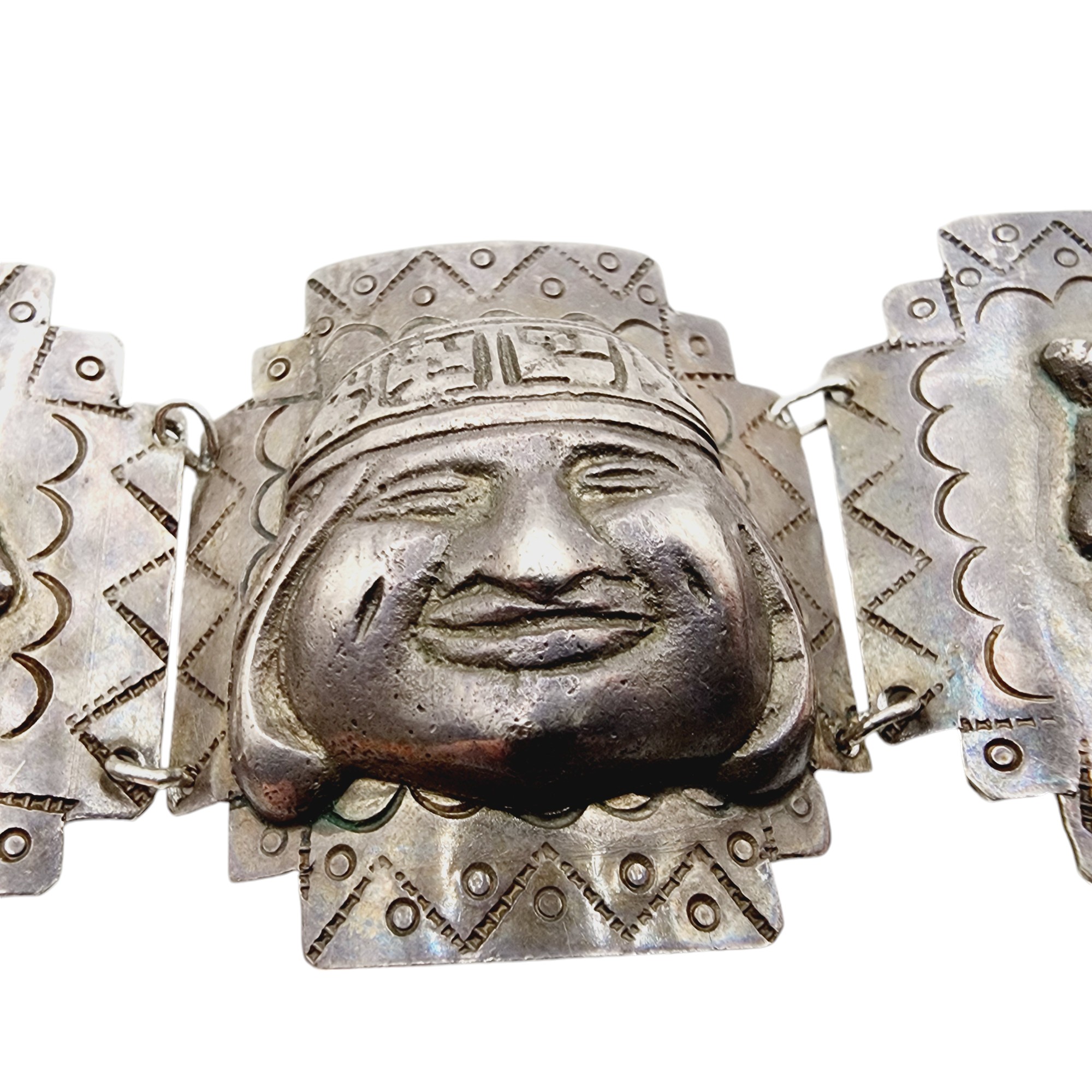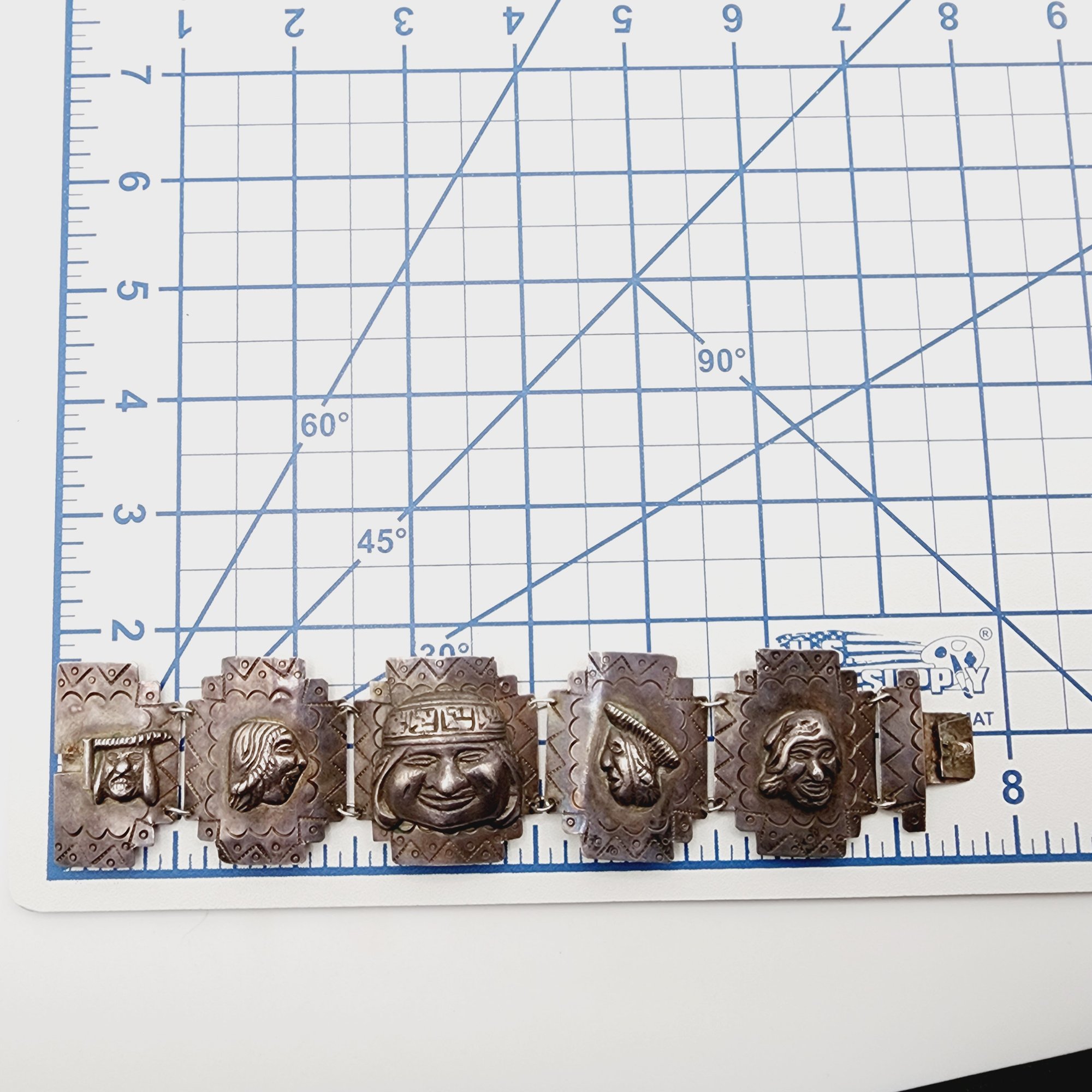 Amazing Signed 'JF' Peru Vintage Sterling Face Bracelet