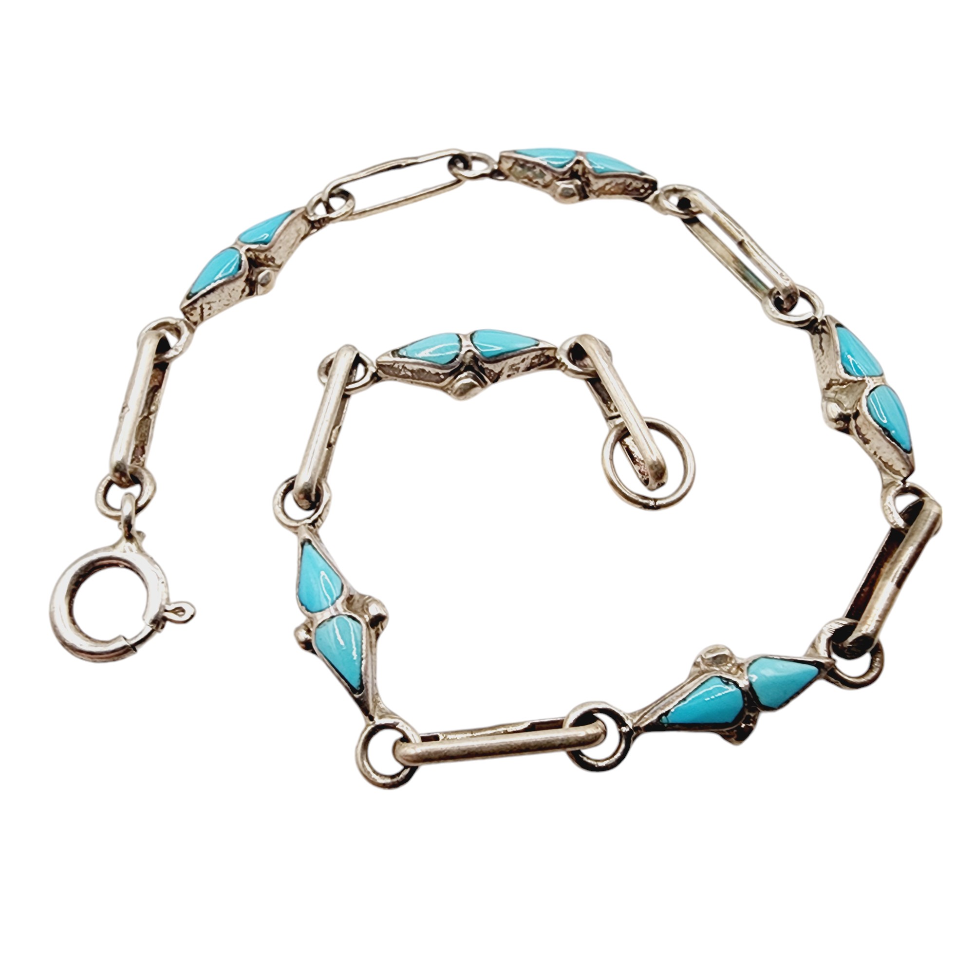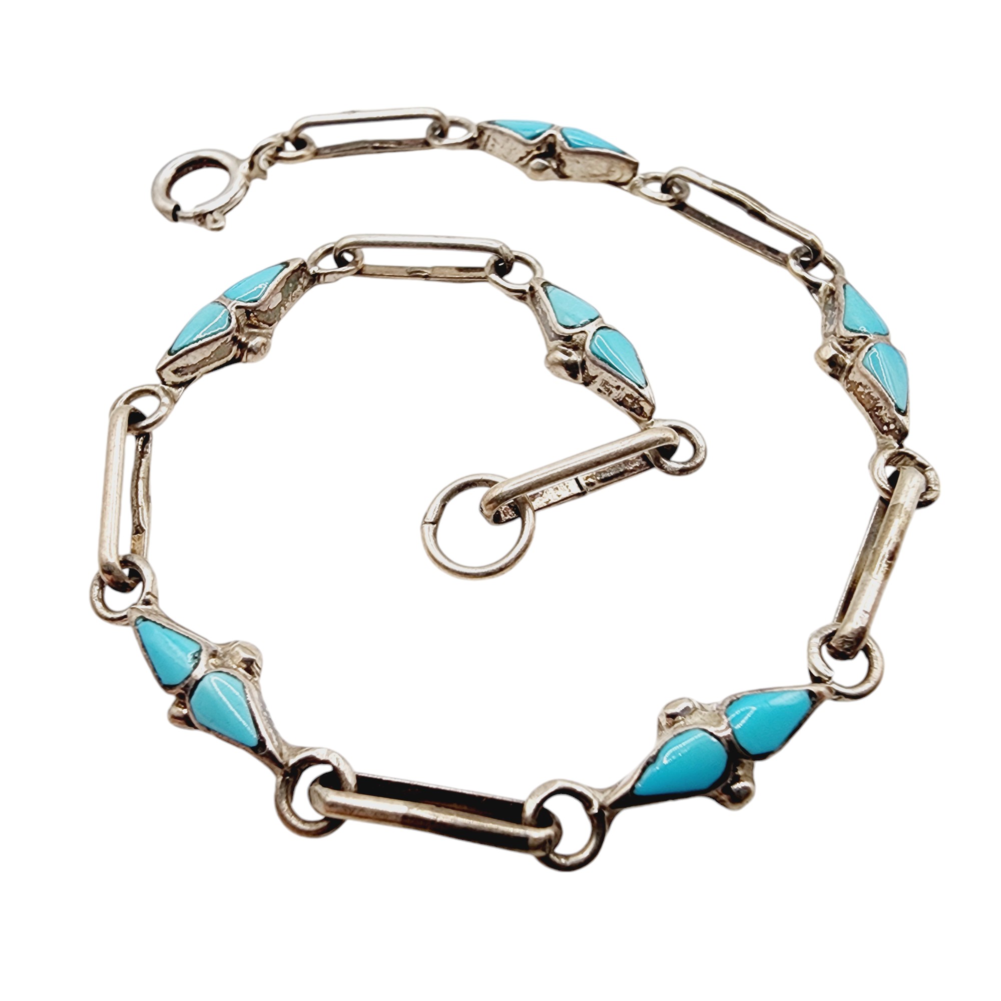 Vintage Sterling Turquoise Inlay Bracelet 4.5g