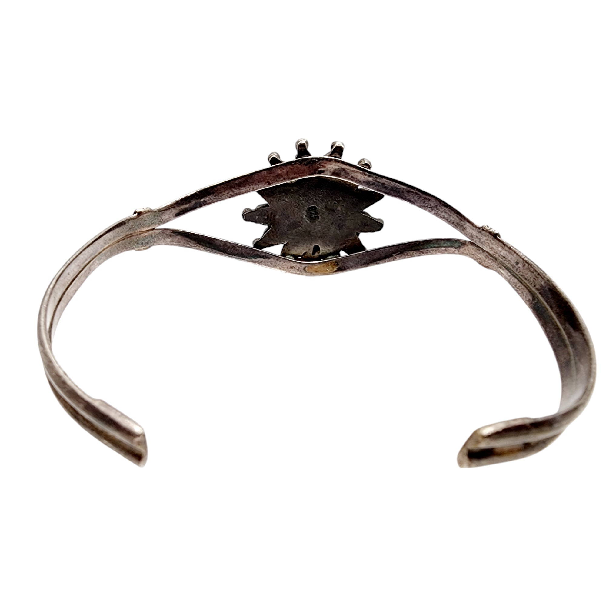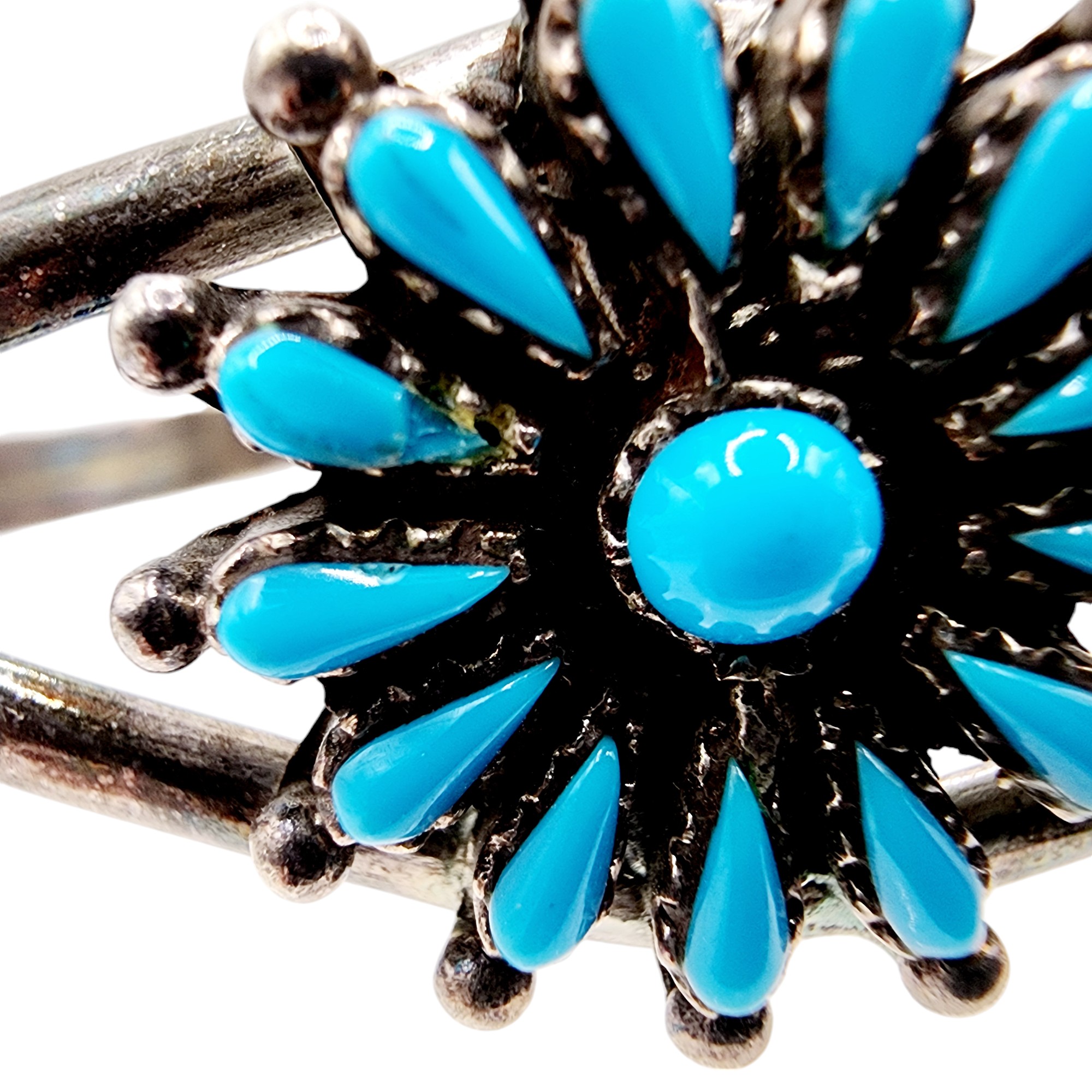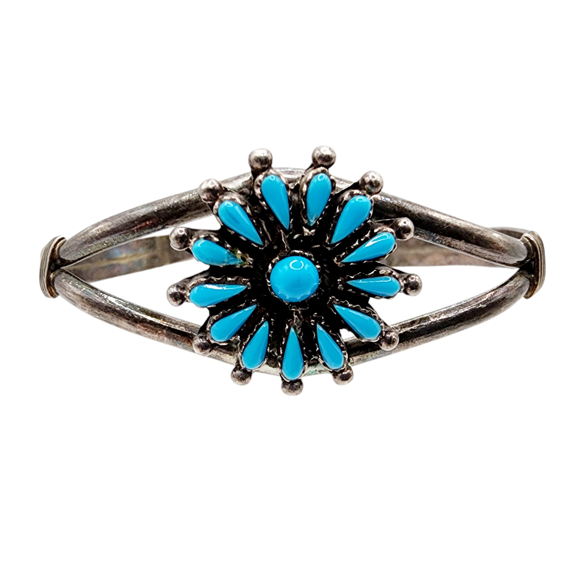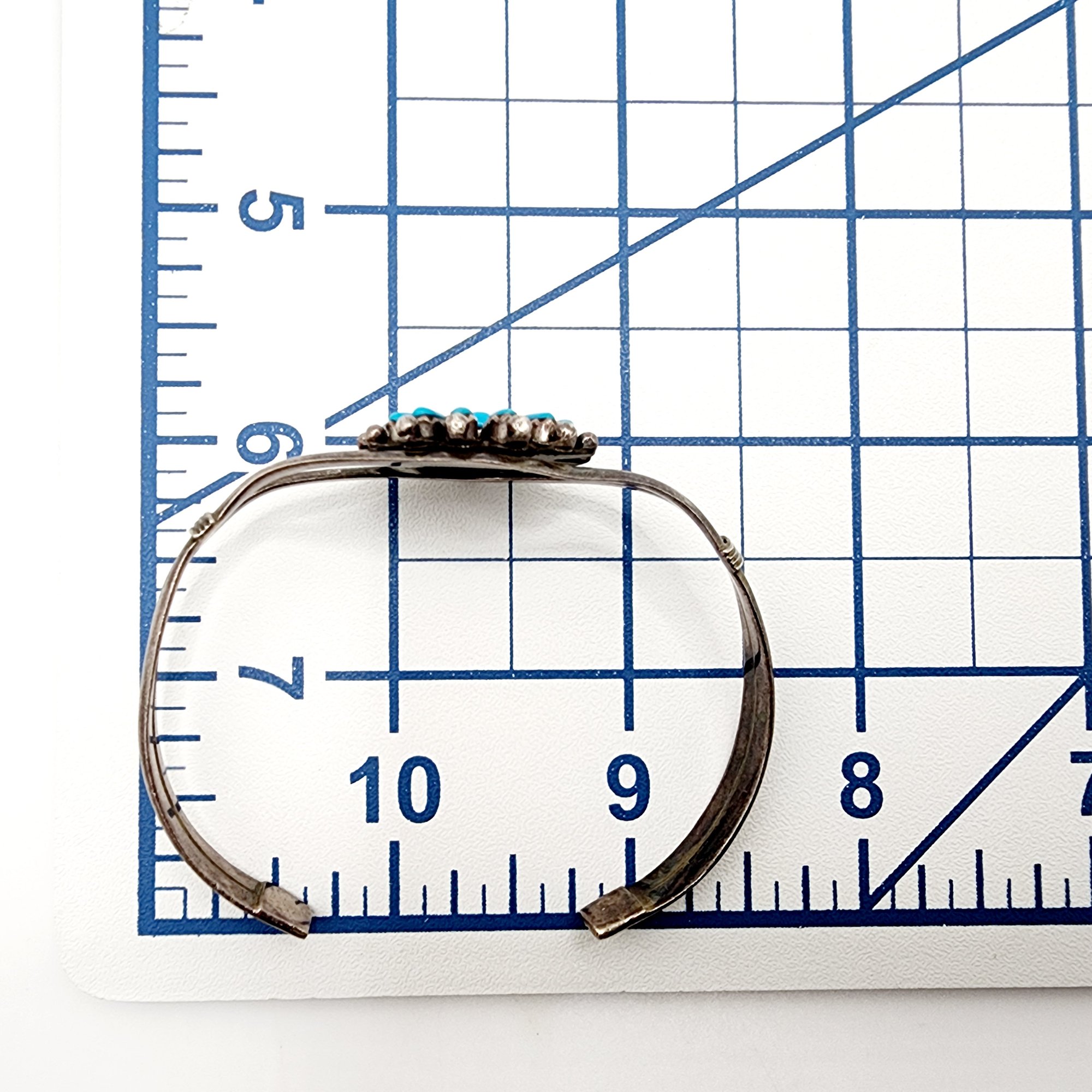 Southwest Signed Sterling Petit Point Turquoise Cuff Bracelet 15.2g, as is – slight chip in corner of turquoise
