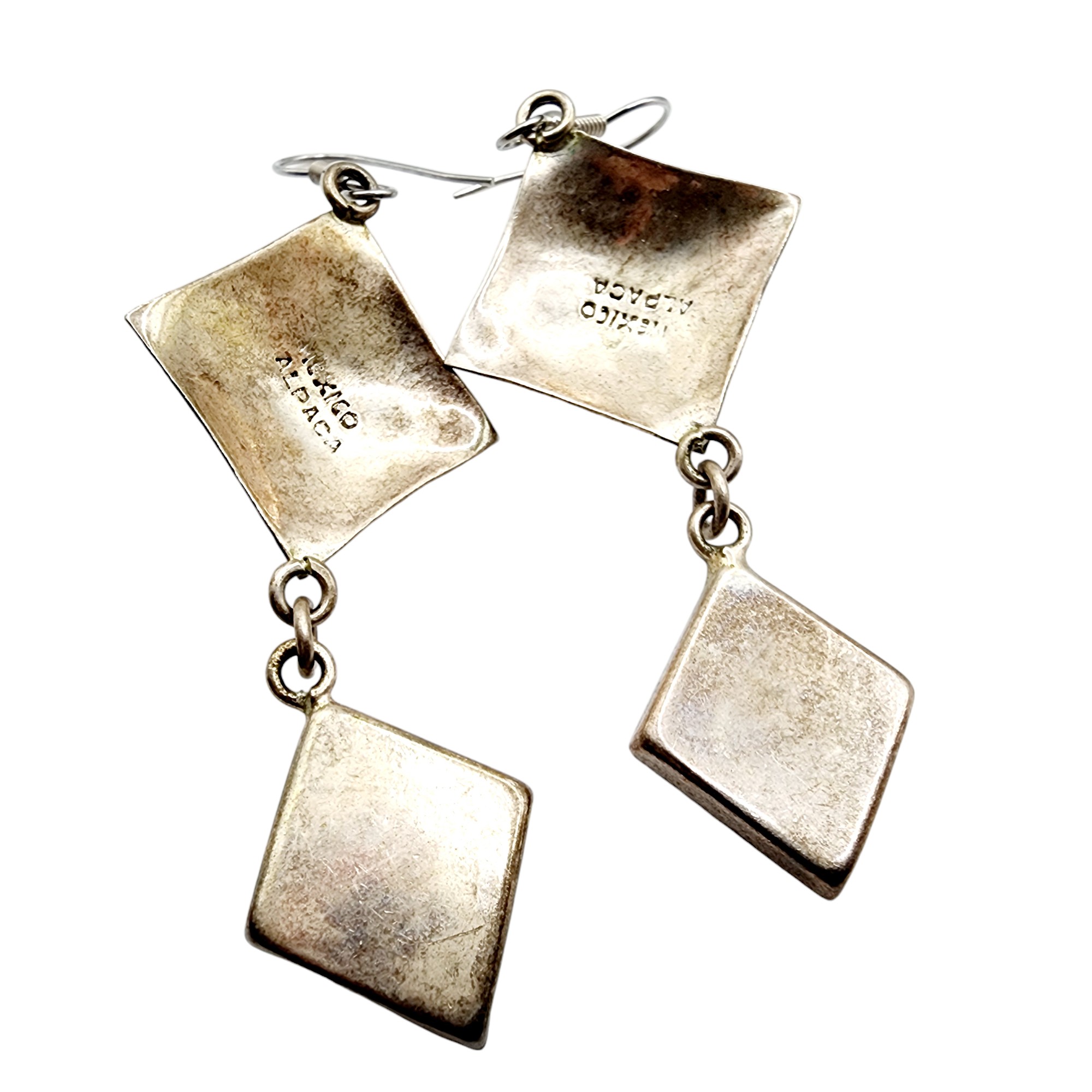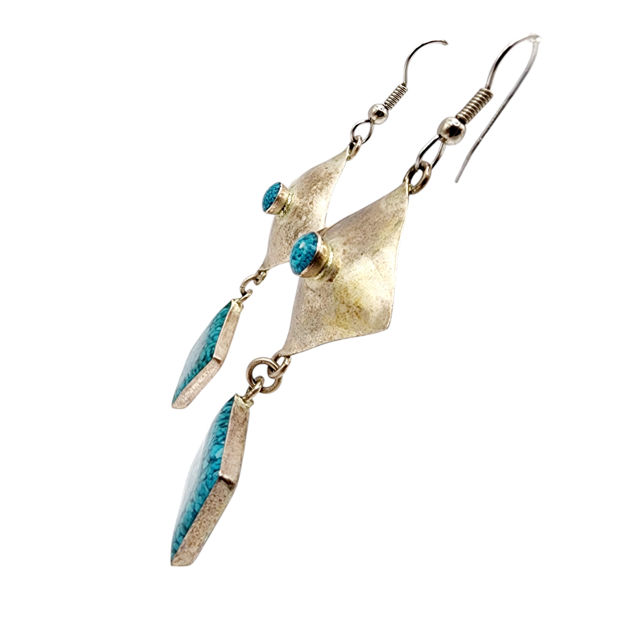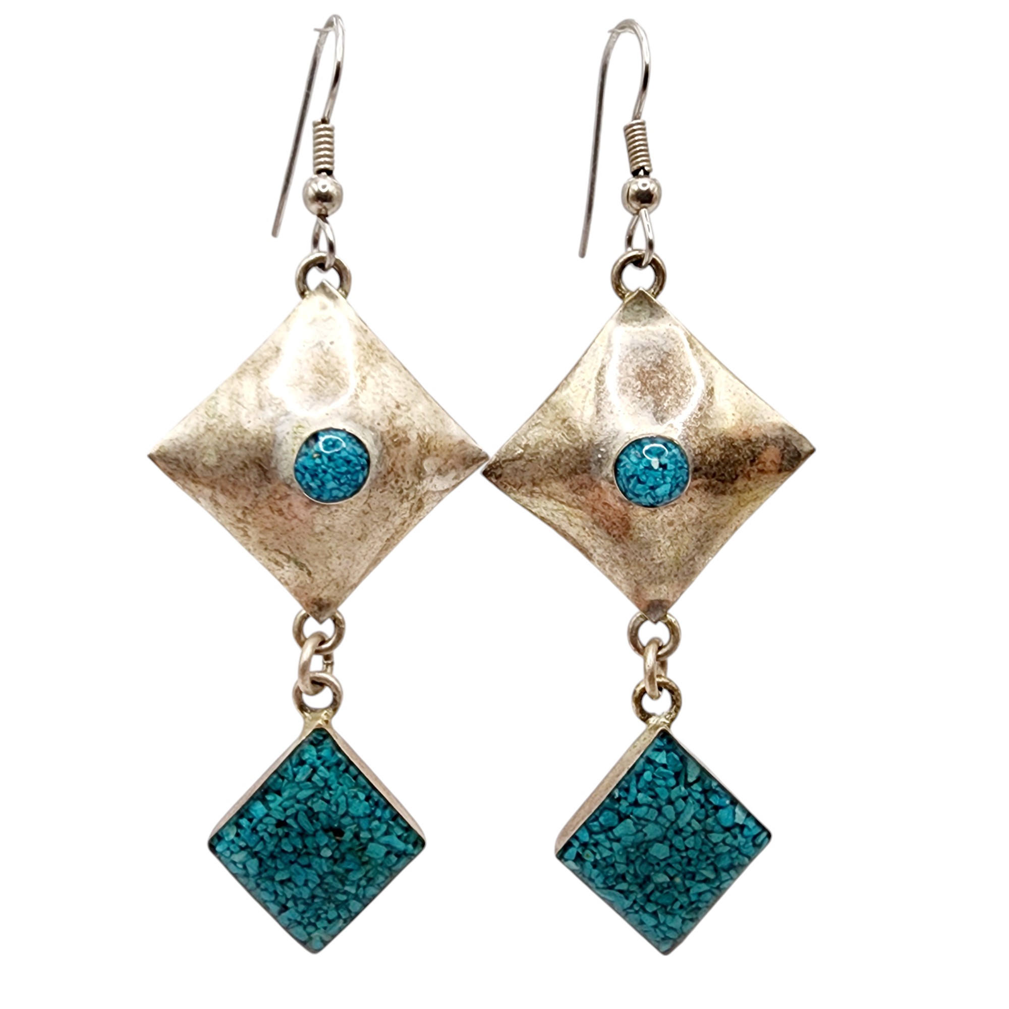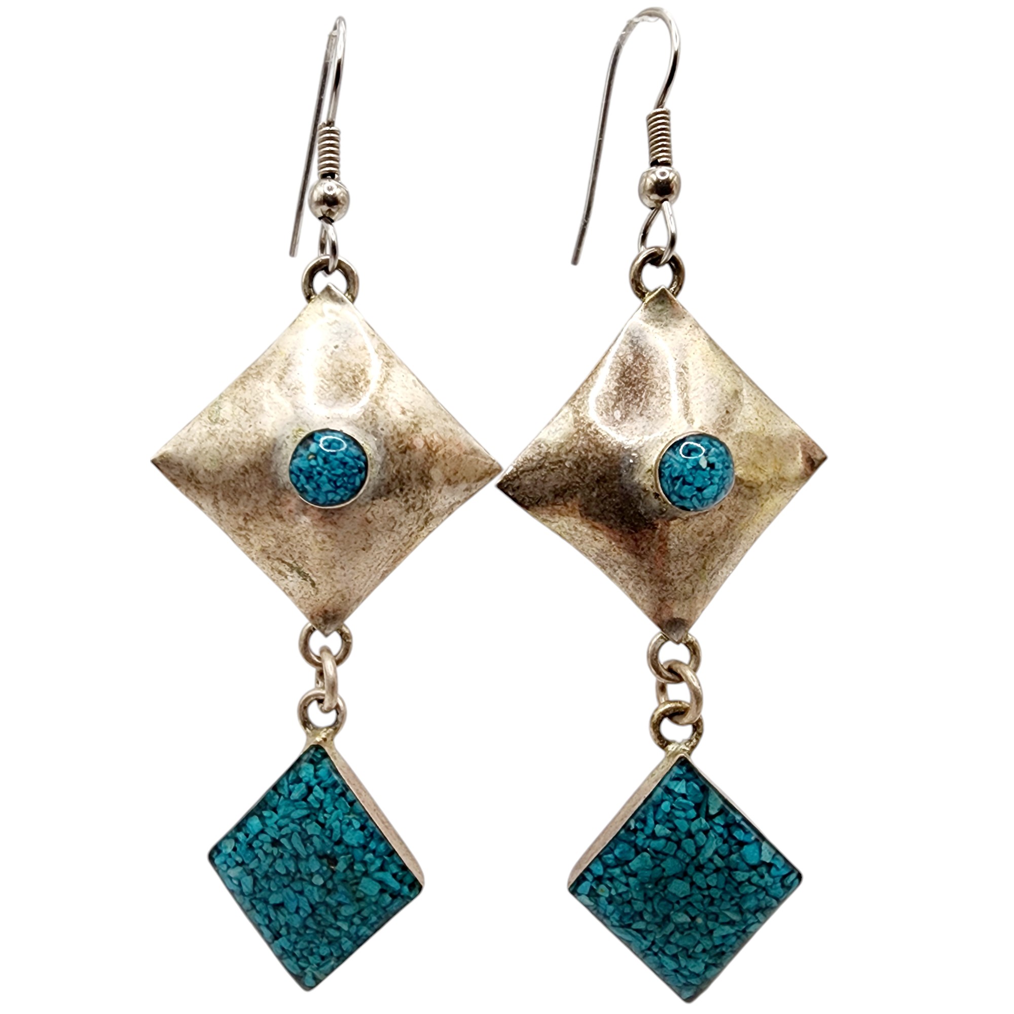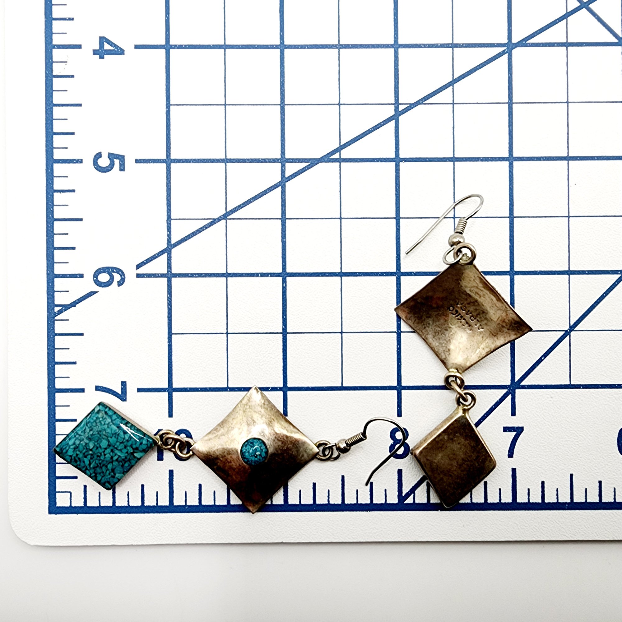 Vintage Alpaca Crushed Turquoise Dangle Earrings 9g