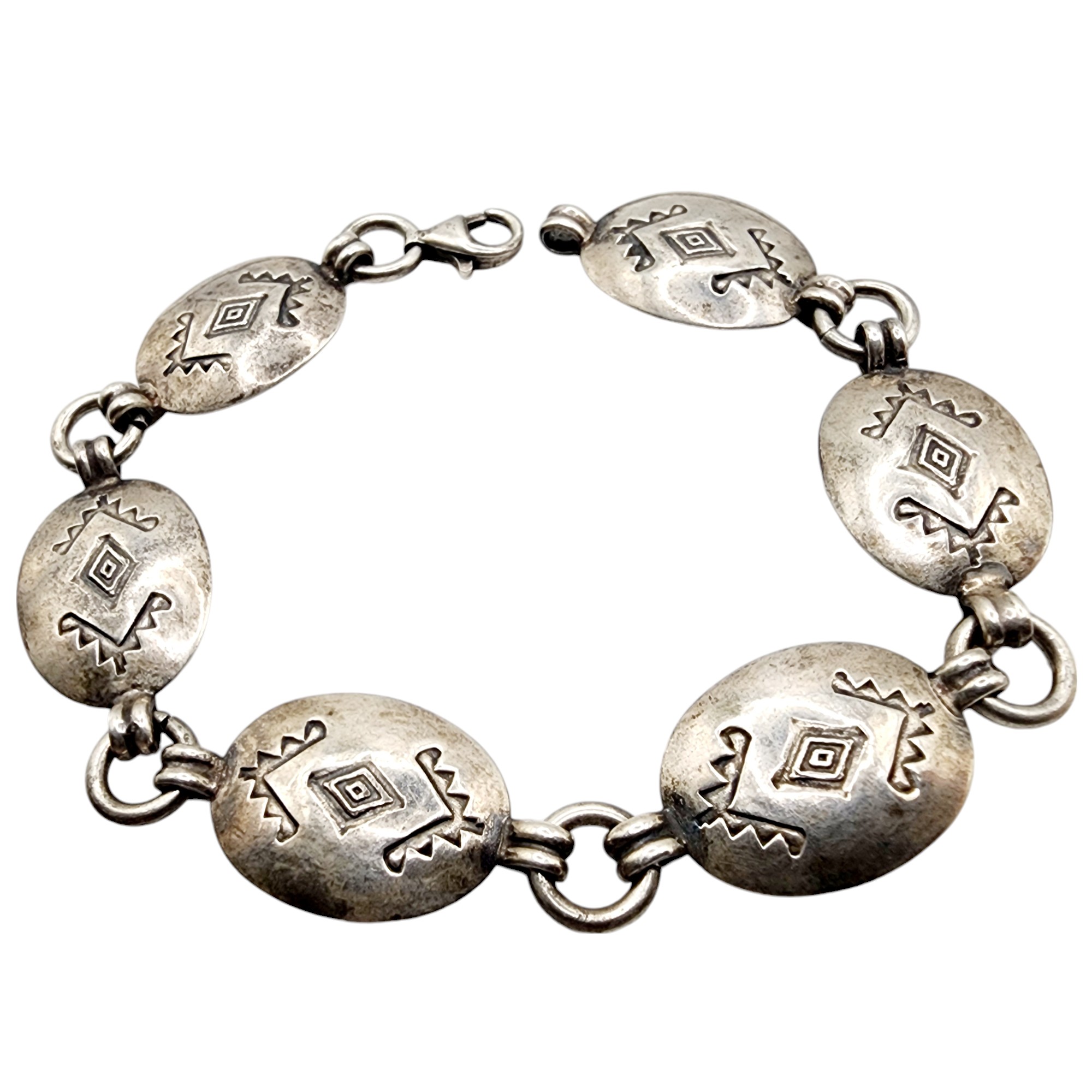 Vintage Navajo Sterling Concho Stamped Link Bracelet 14.2g