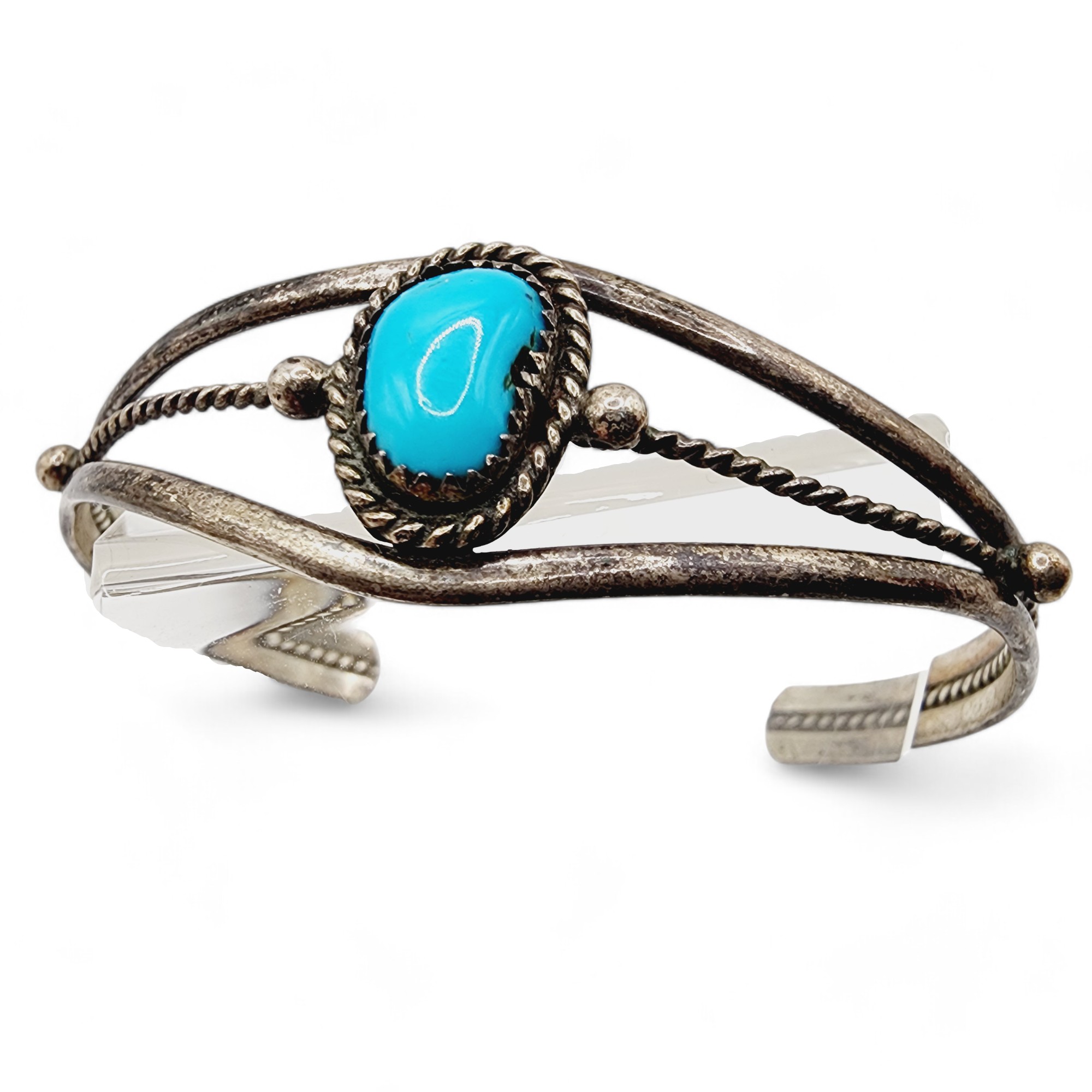 Signed ‘LT’ Sterling Turquoise Cuff Bracelet 12.6g
