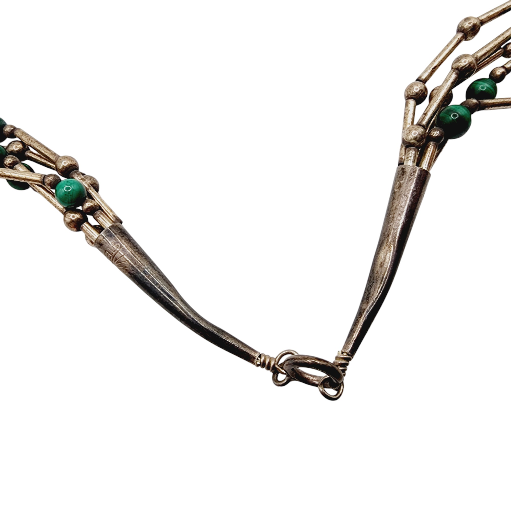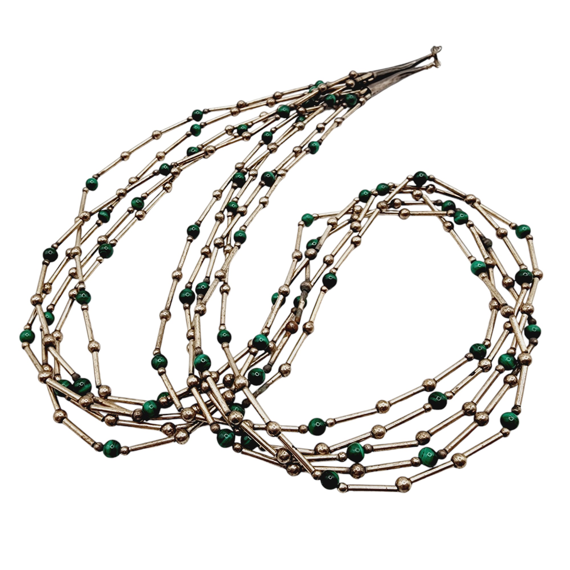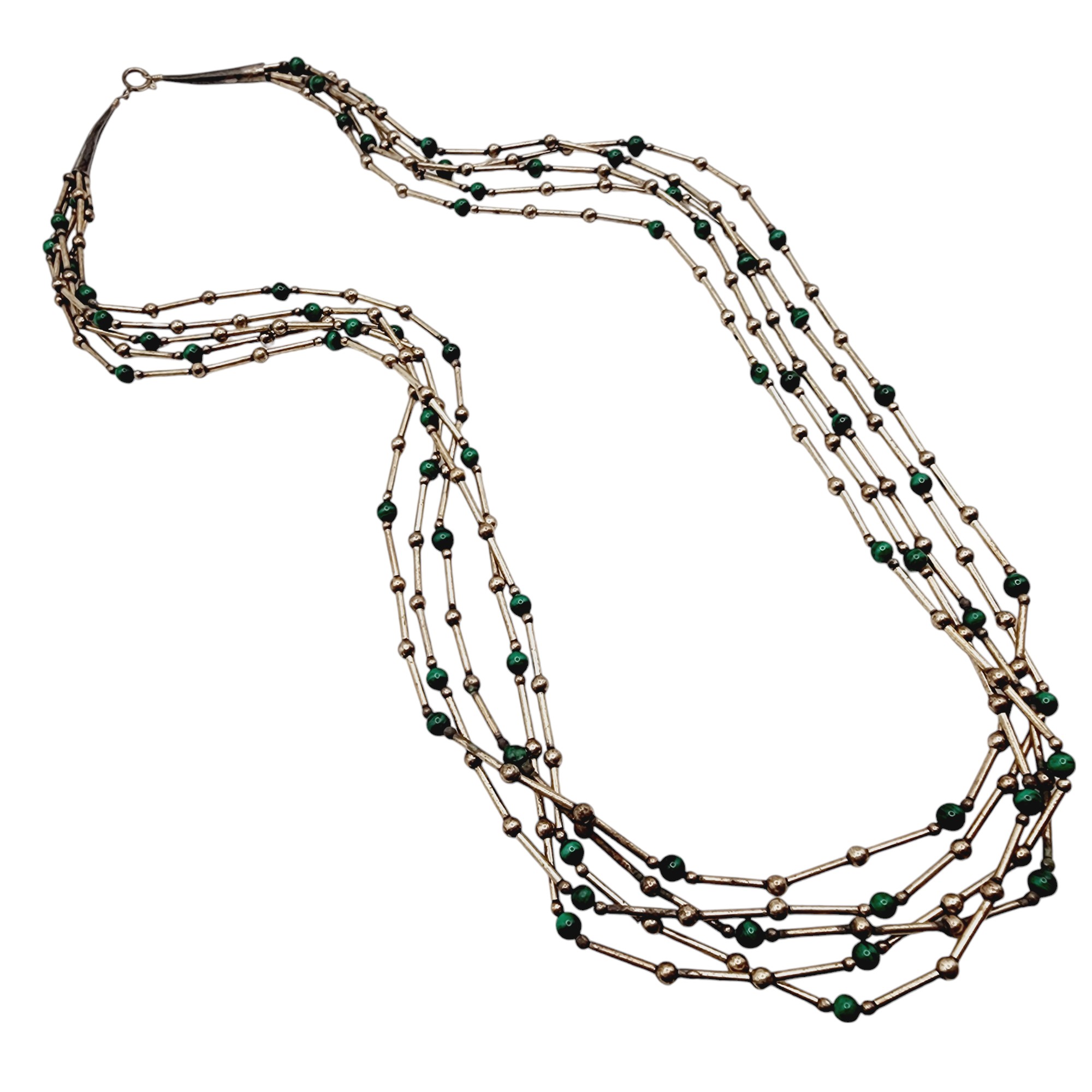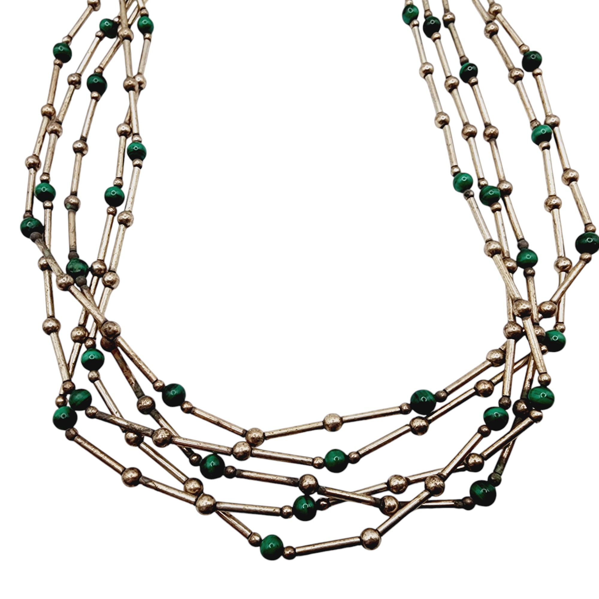 Southwest Sterling Multistrand Liquid Silver Malachite Necklace 36.3g