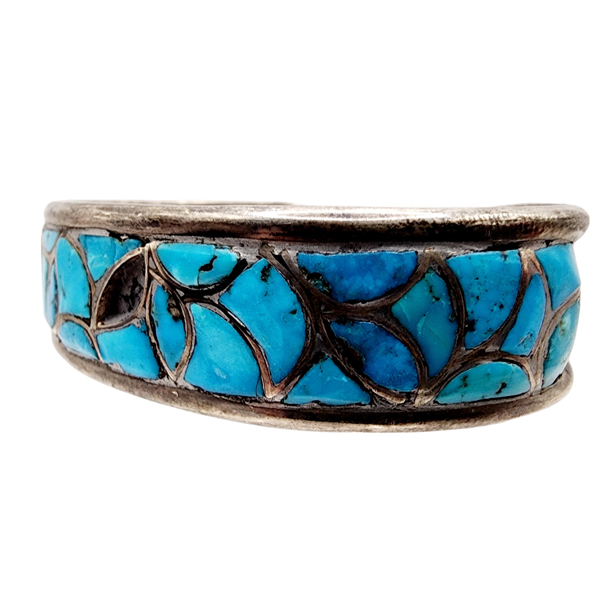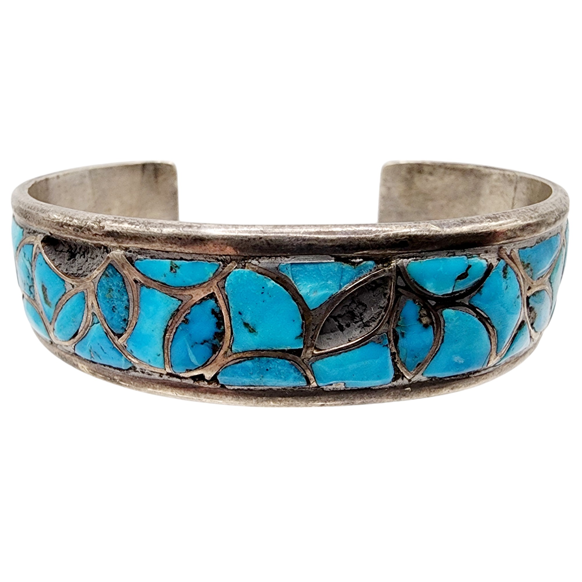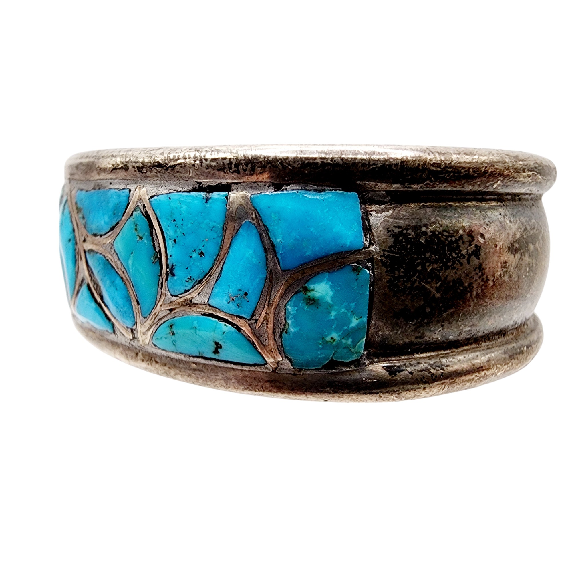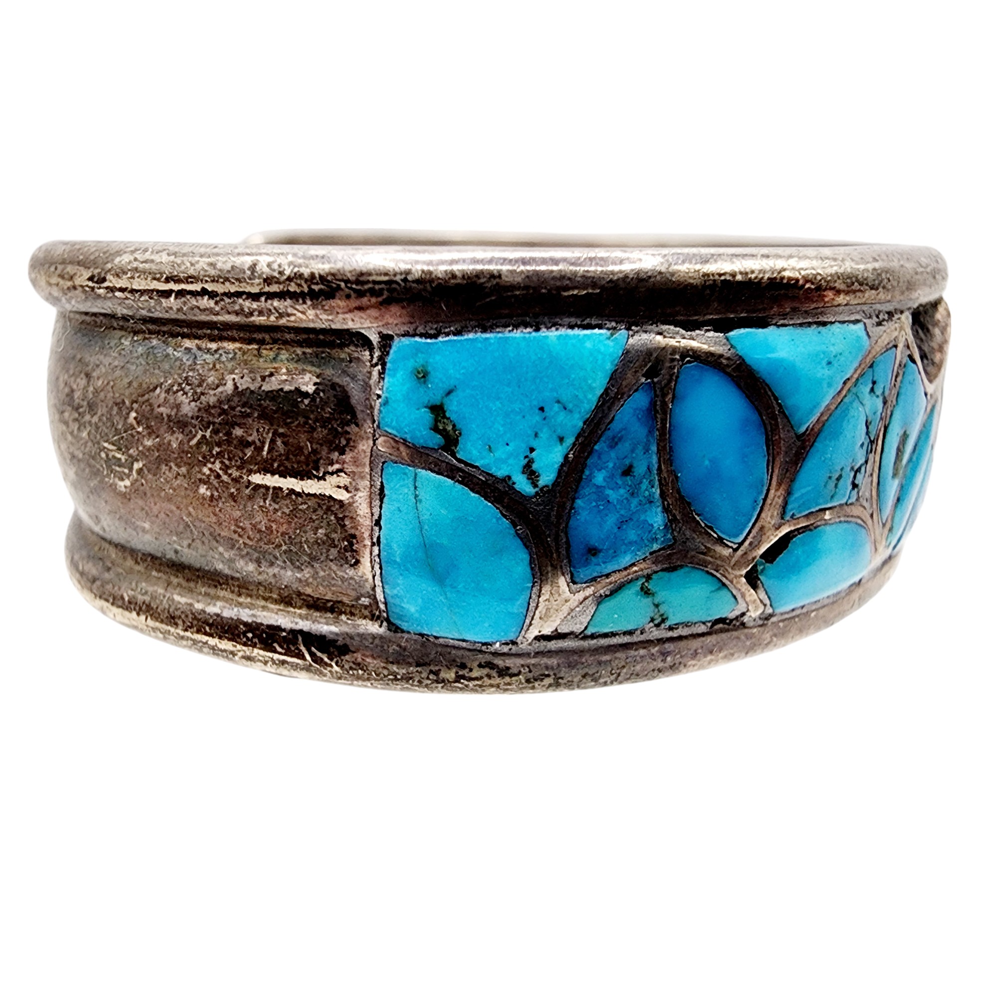 Vintage Zuni Sterling Turquoise Inlay Cuff Bracelet 33.9g as is