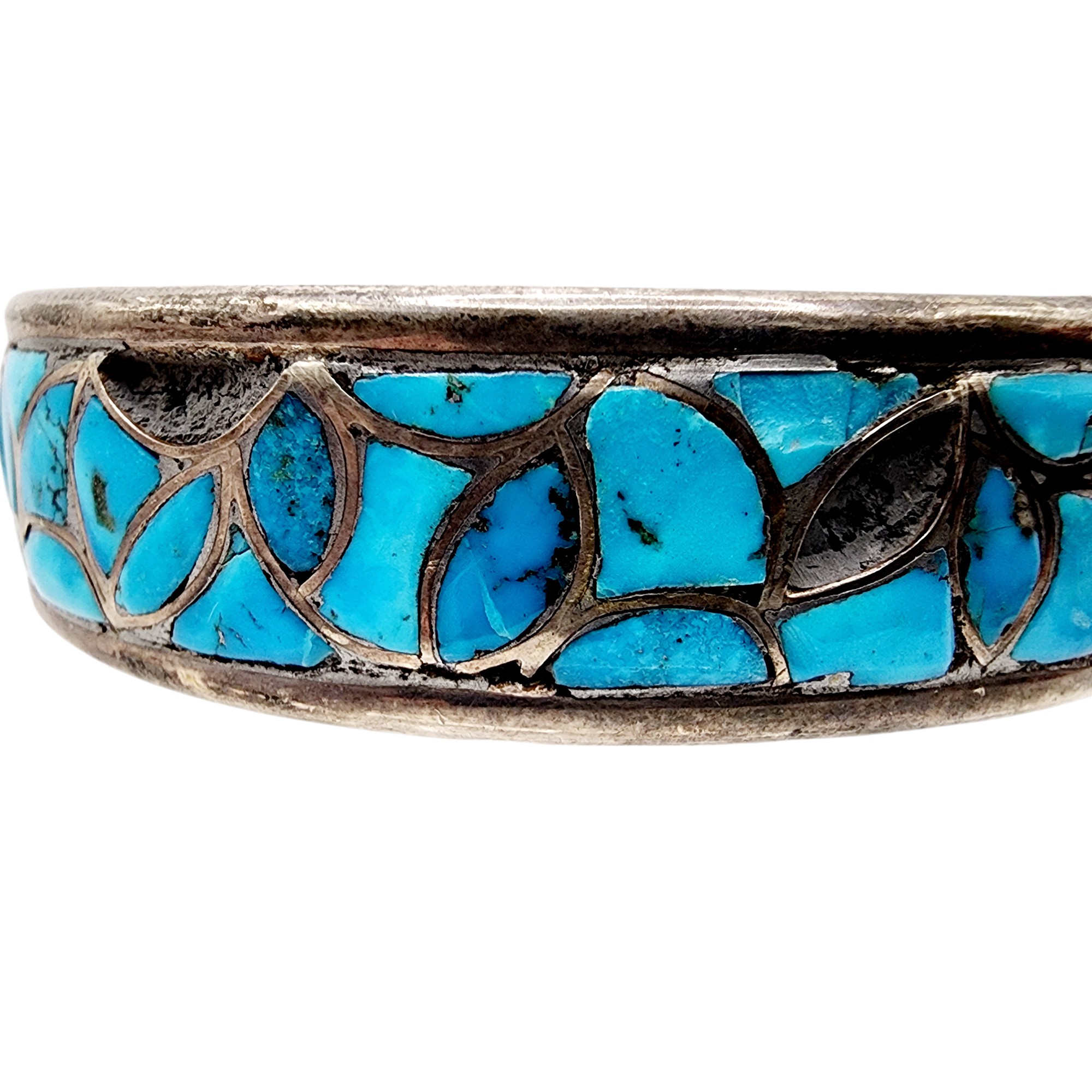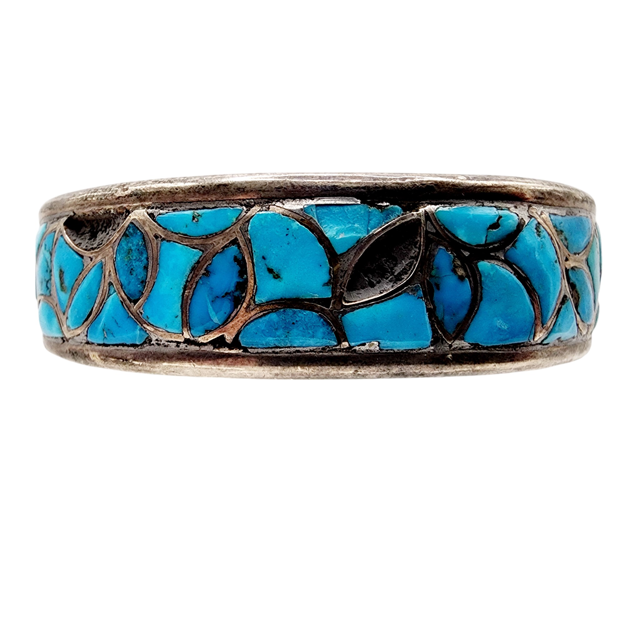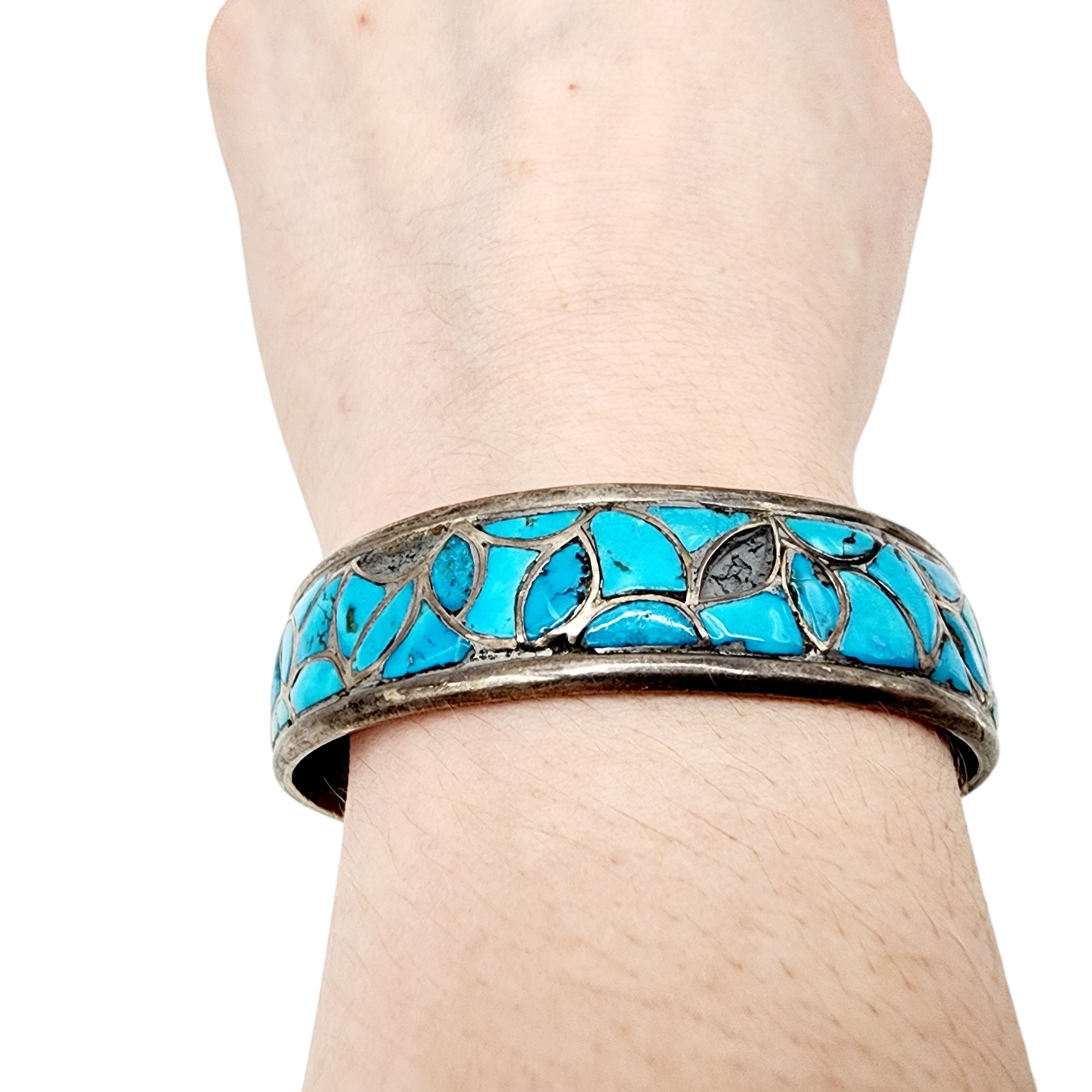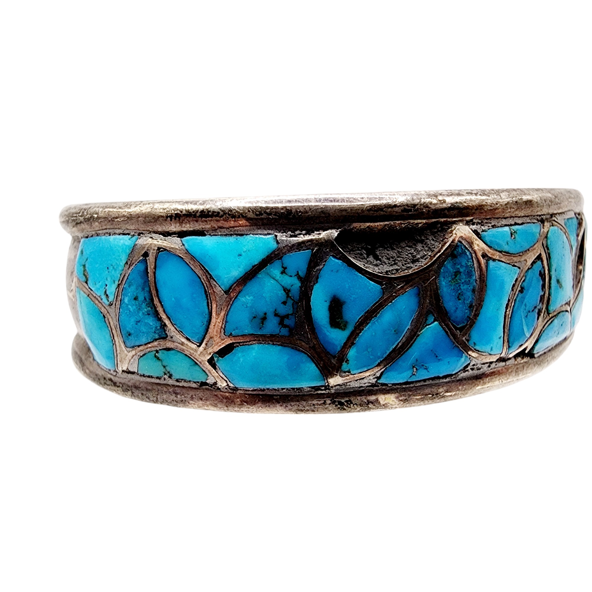Vintage Zuni Sterling Turquoise Inlay Cuff Bracelet 33.9g as is